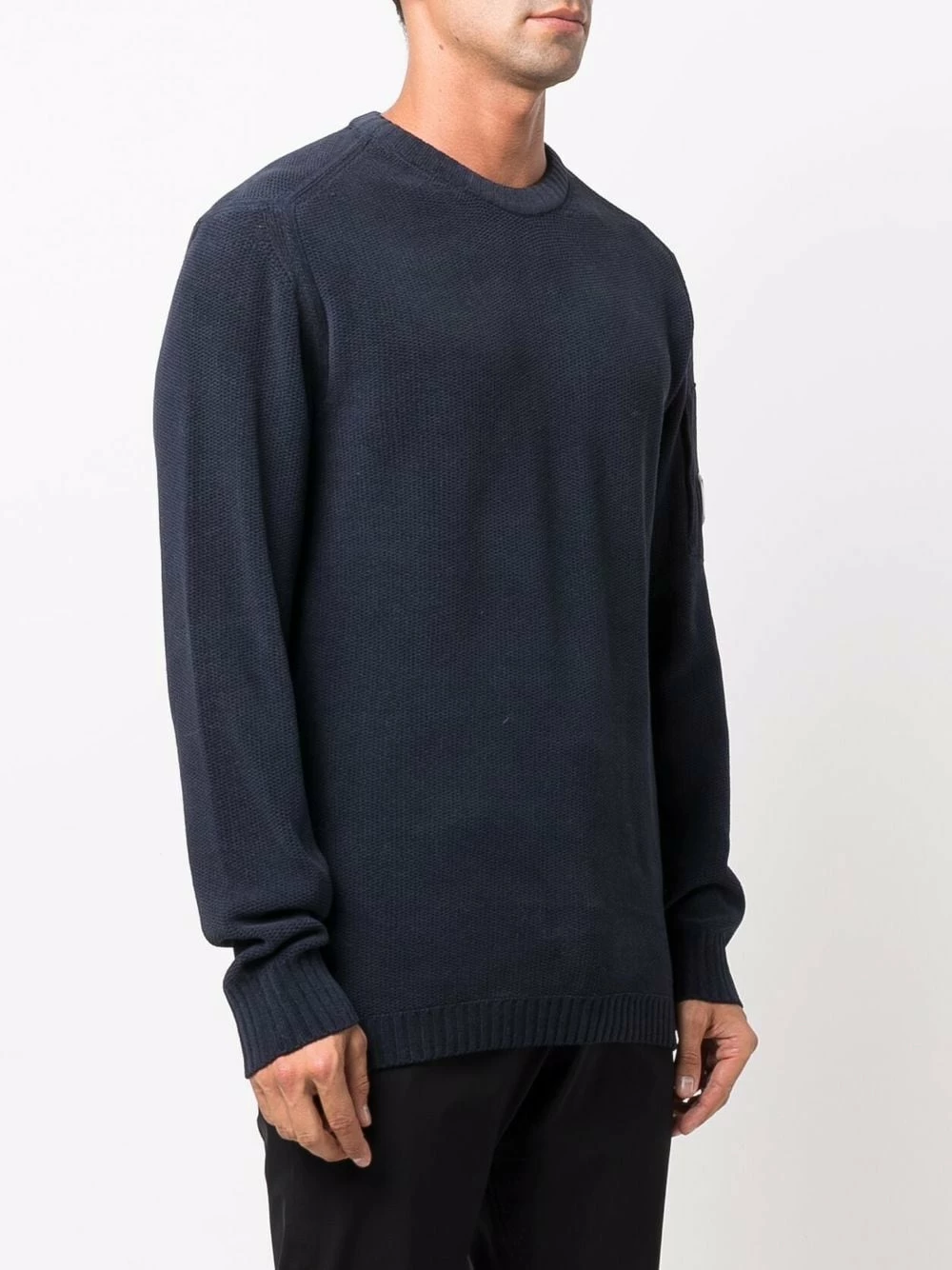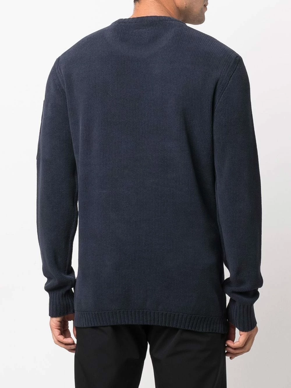 Bleu, coton, patch logo sur la manche, encolure ronde, manches longues.