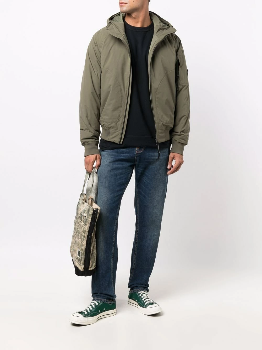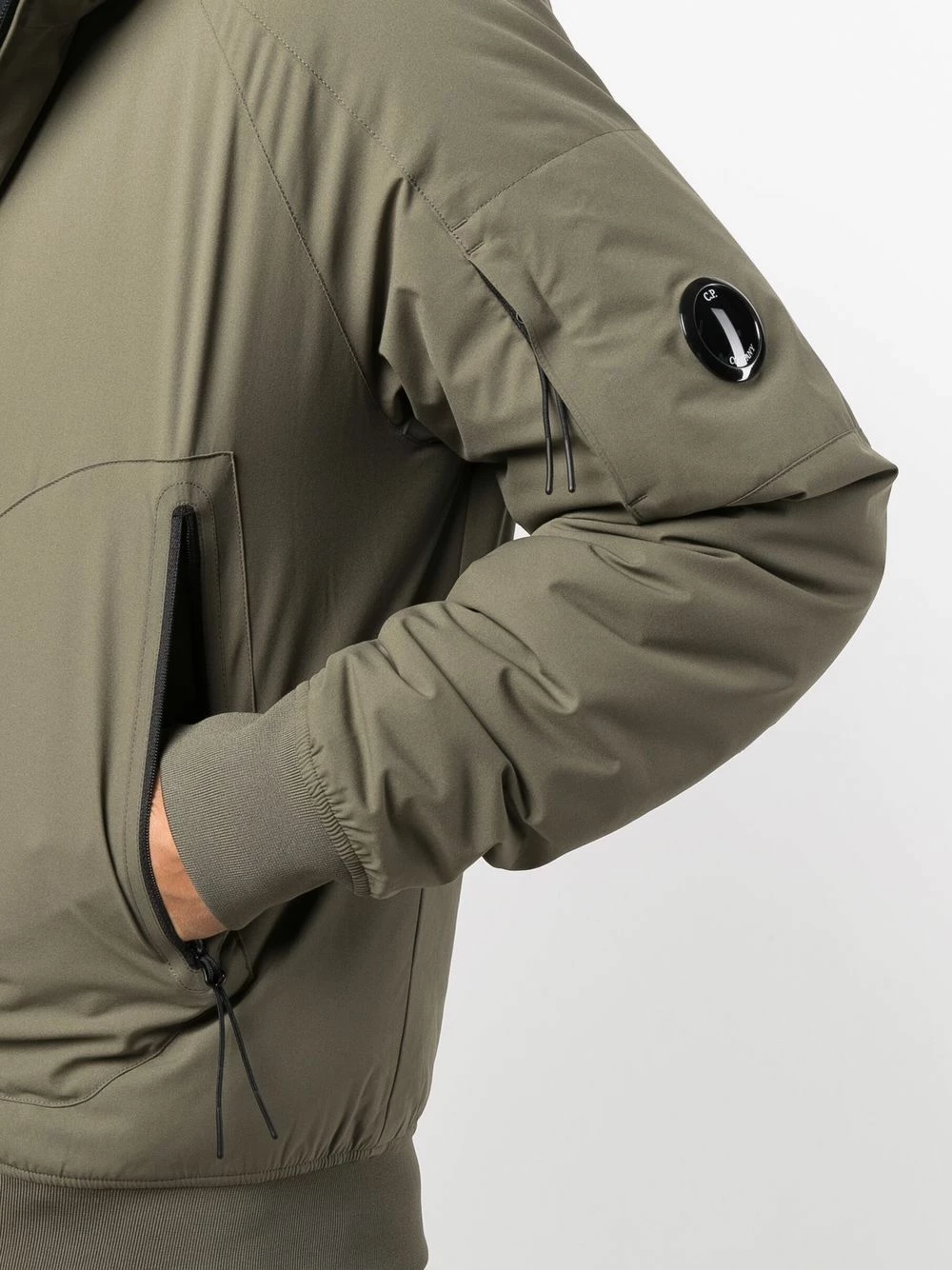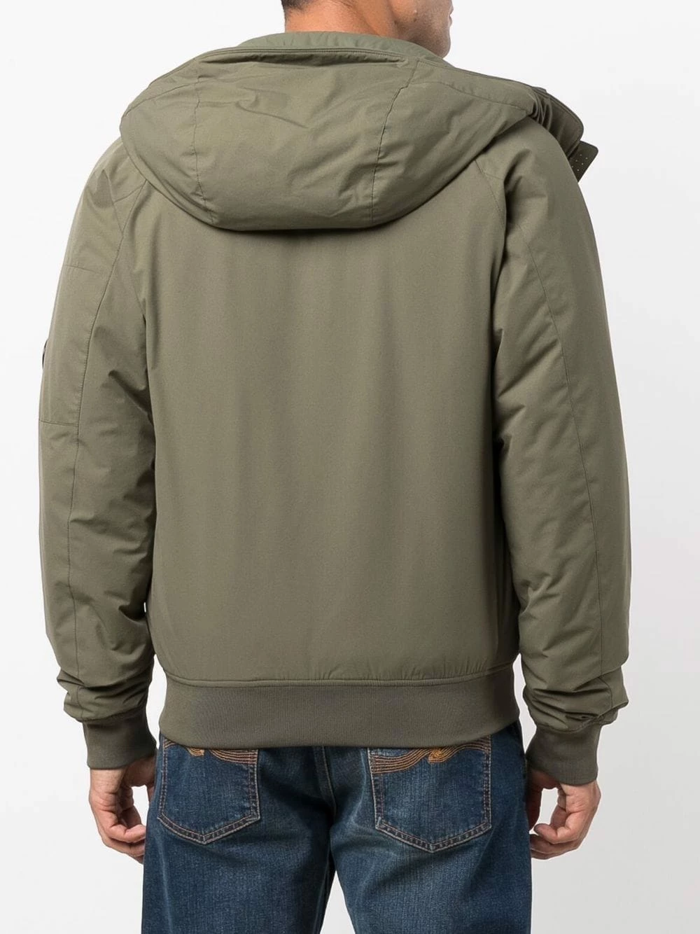 Capuche classique, fermeture zippée à double sens sur le devant, deux poches latérales zippées, manches longues, ourlet droit. Couleur : vert.
