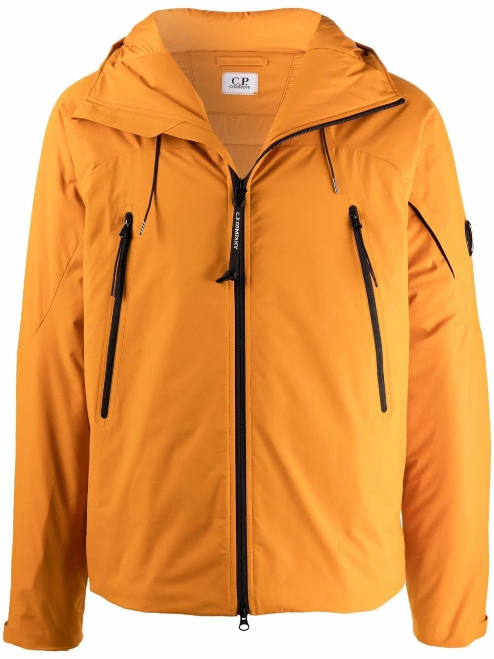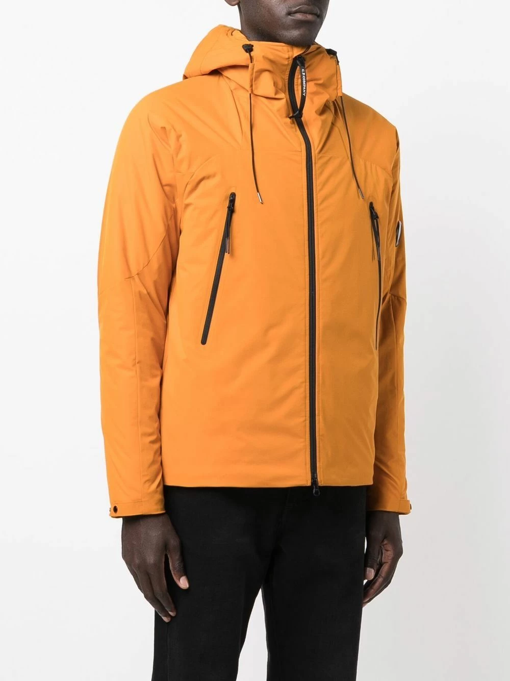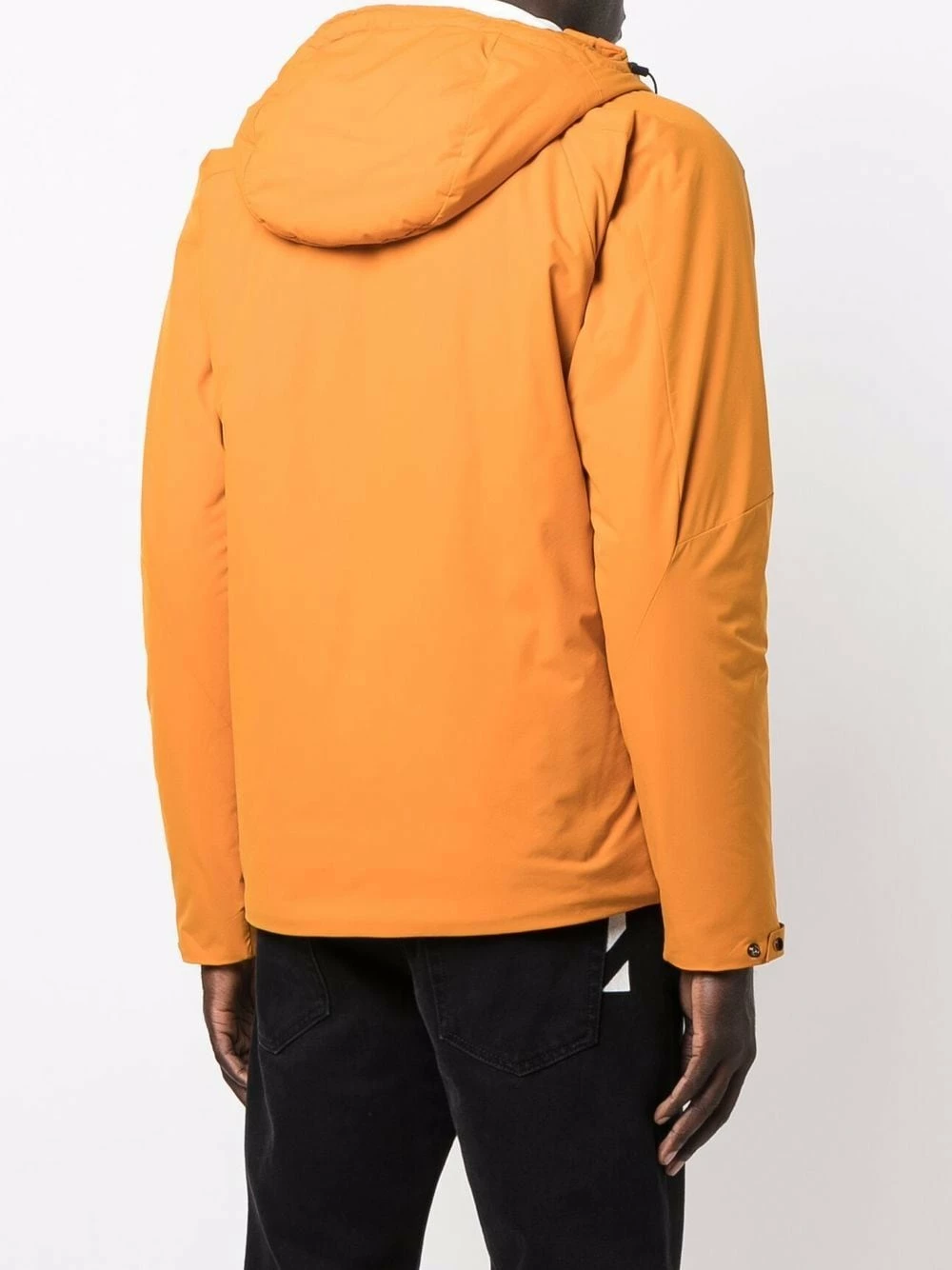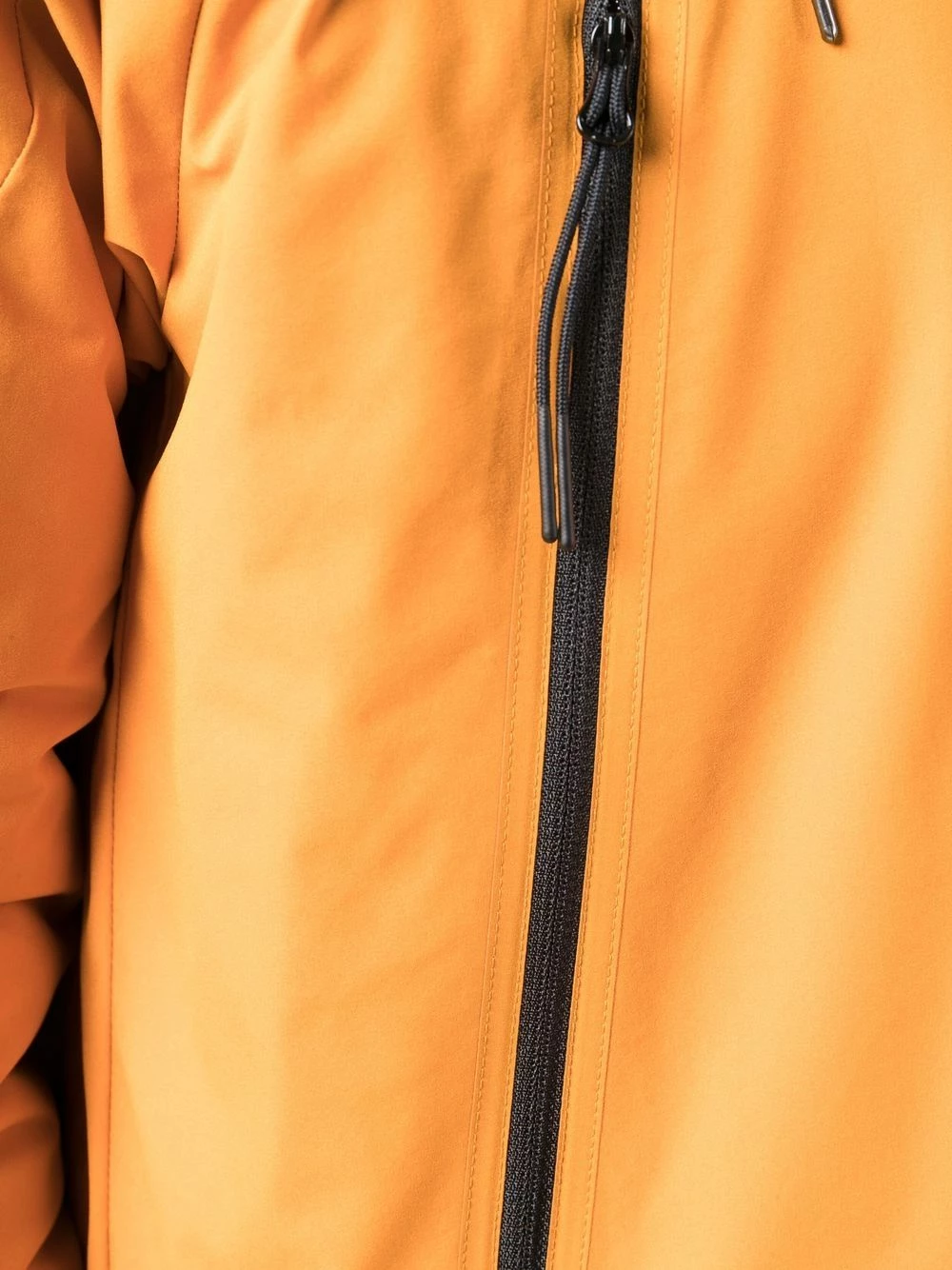 Fermeture zippée devant, manches longues, imperméable, capuche à lien de resserrage. Couleur : orange.