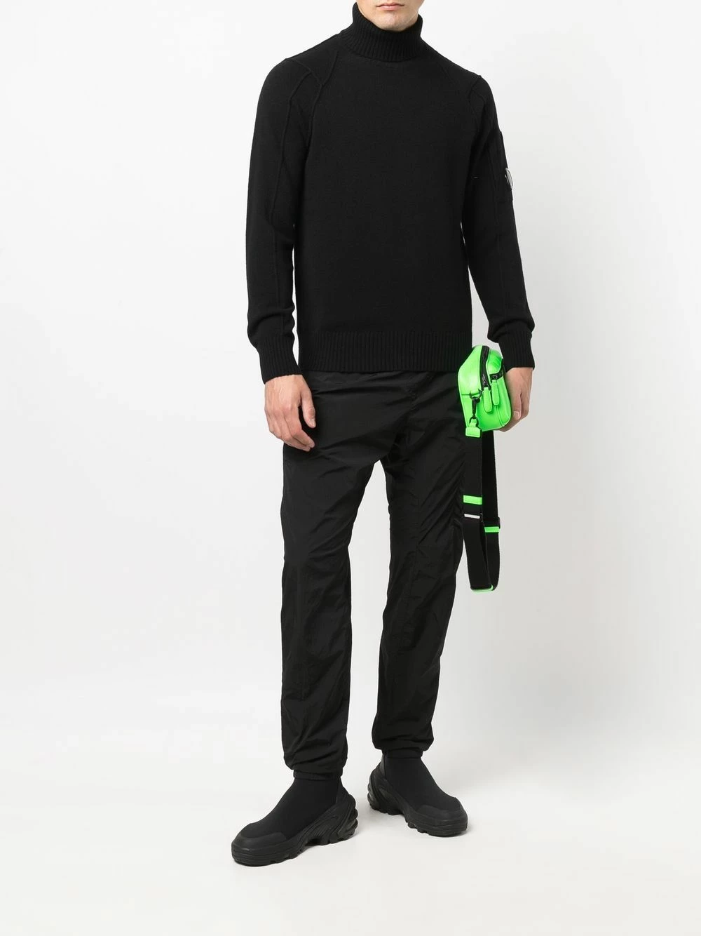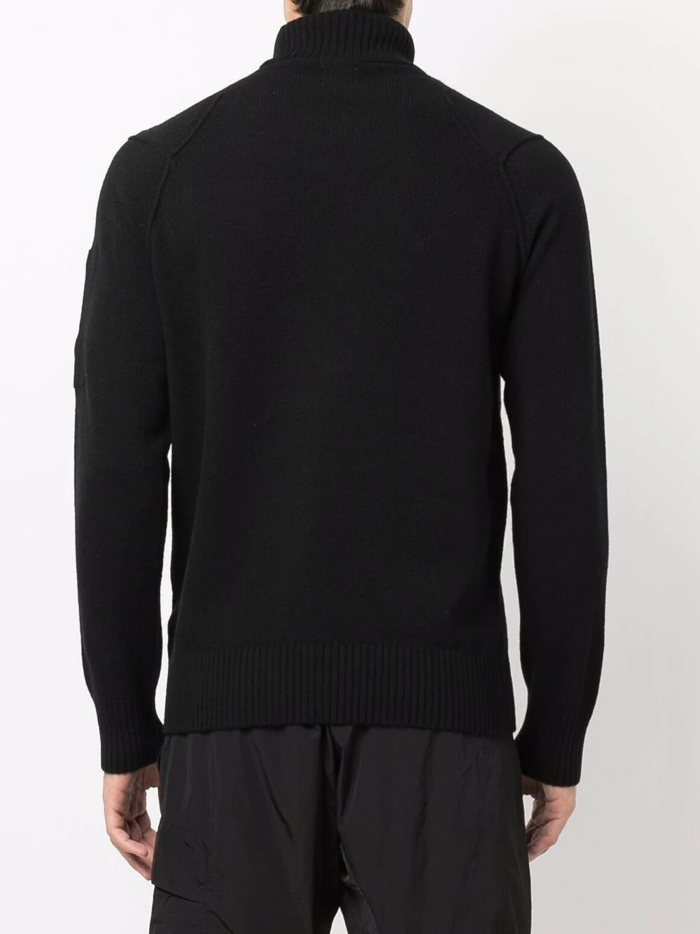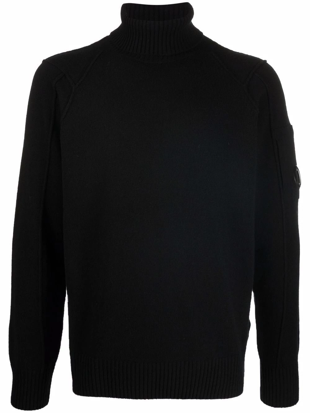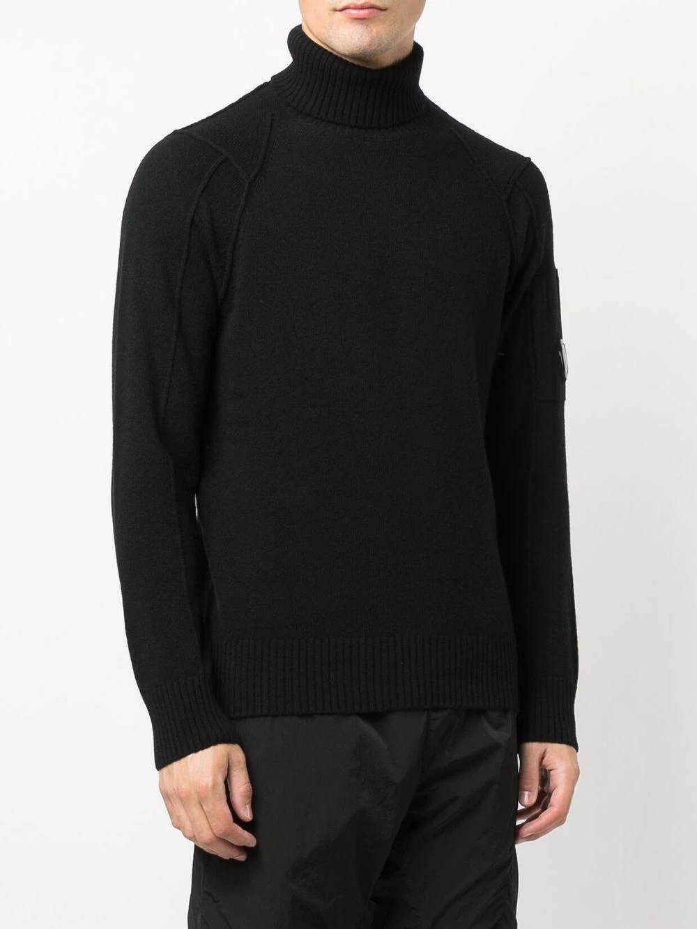 Patch logo sur la manche, col roulé, manches longues, ourlet droit. Couleur : noir.