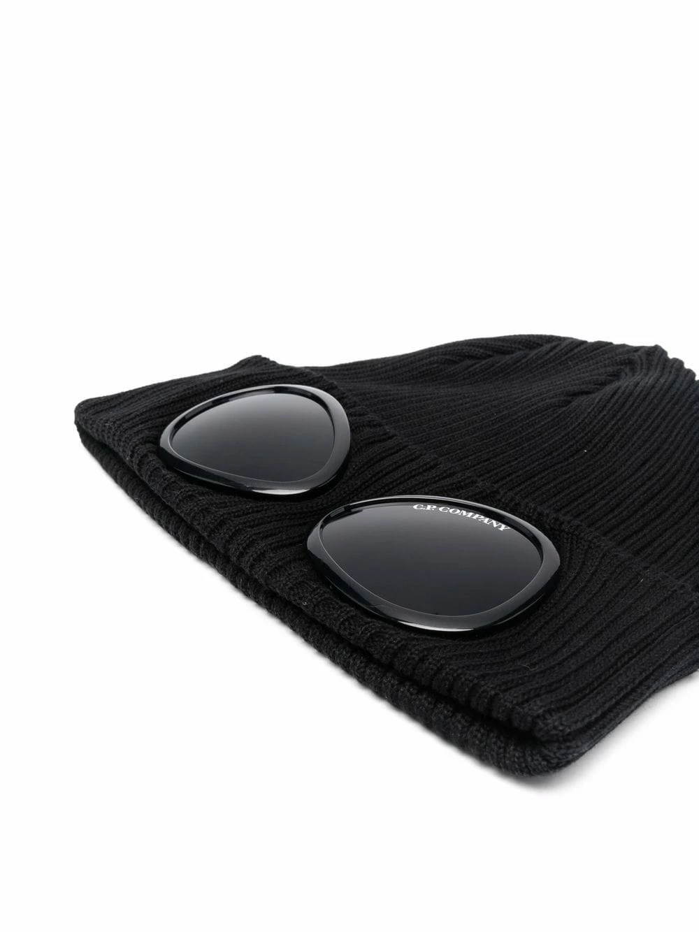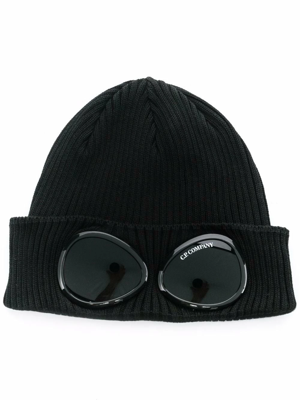 Black cotton Goggles-embellished ribbed-knit beanie from C.P. Company featuring ribbed knit, signature Goggles detail and turn-up brim.
