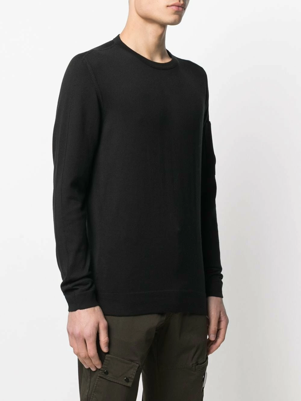 Encolure ronde, manches longues, poche plaquée latérale, patch logo sur la manche, coutures ton sur ton, ourlet droit. Couleur : noir. Matière : coton.