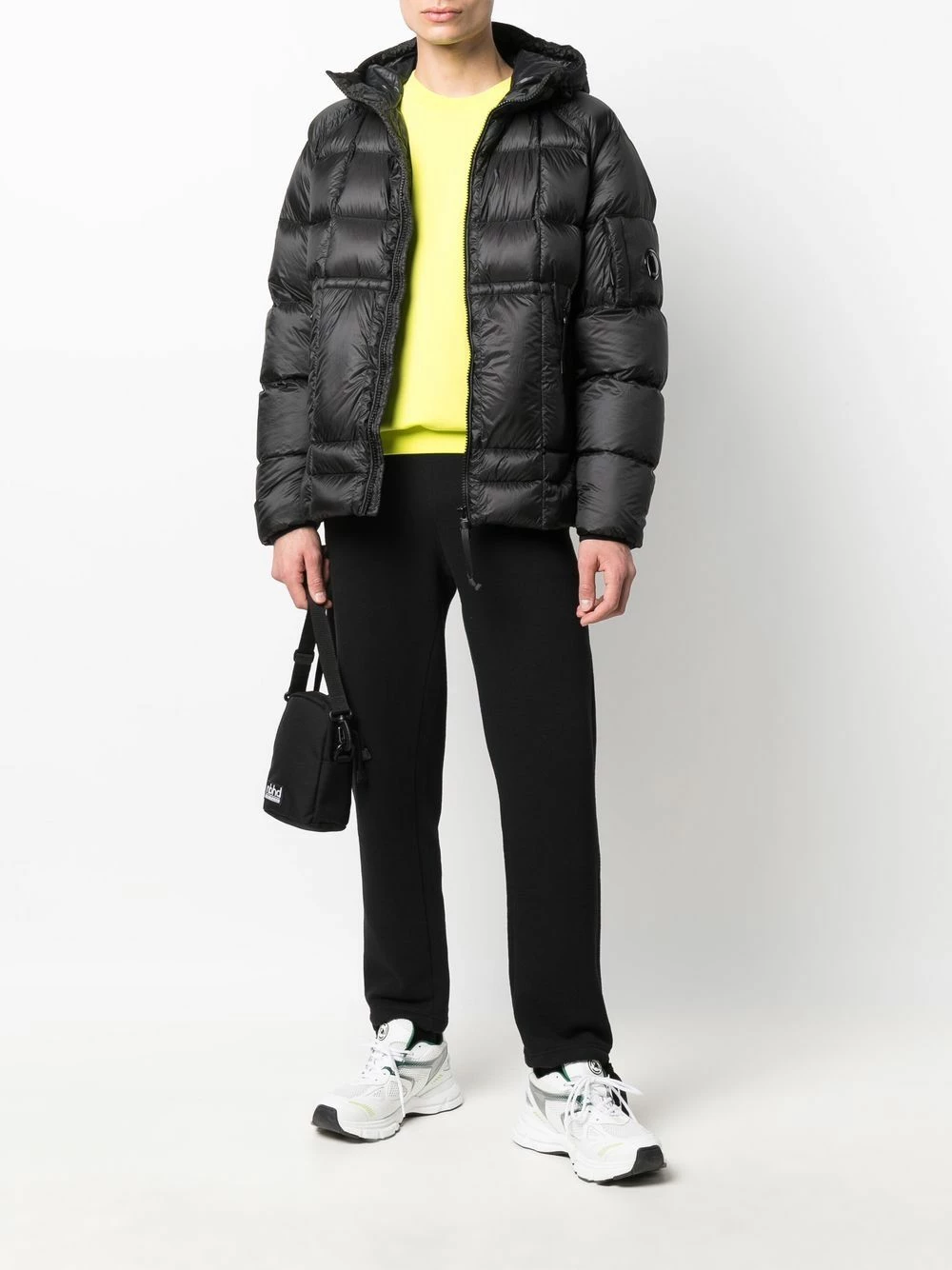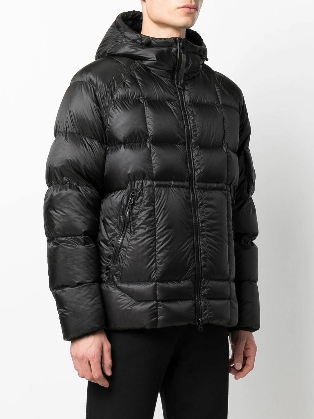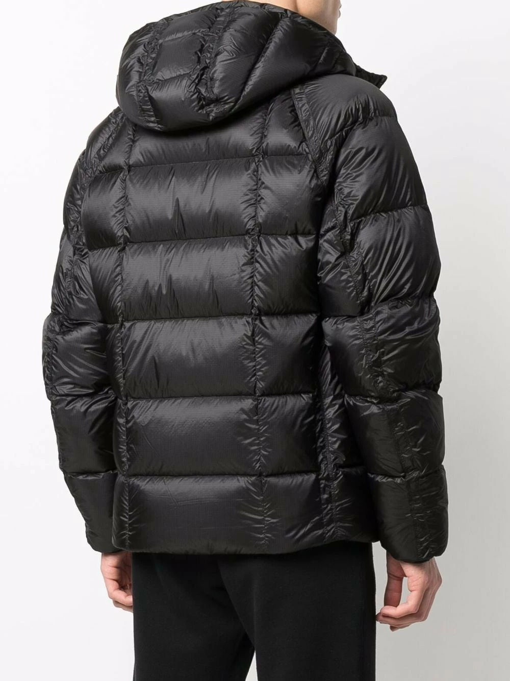 Garnissage en duvet, design matelassé, capuche classique, fermeture zippée devant, manches longues, deux poches latérales zippées. Couleur : noir.