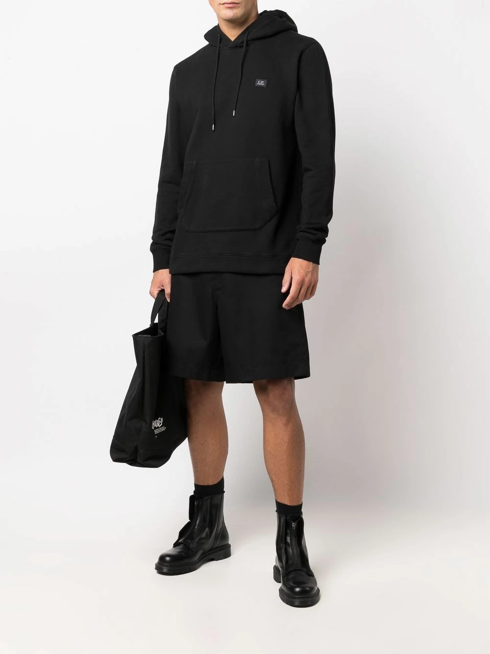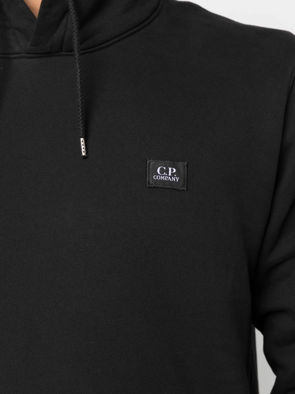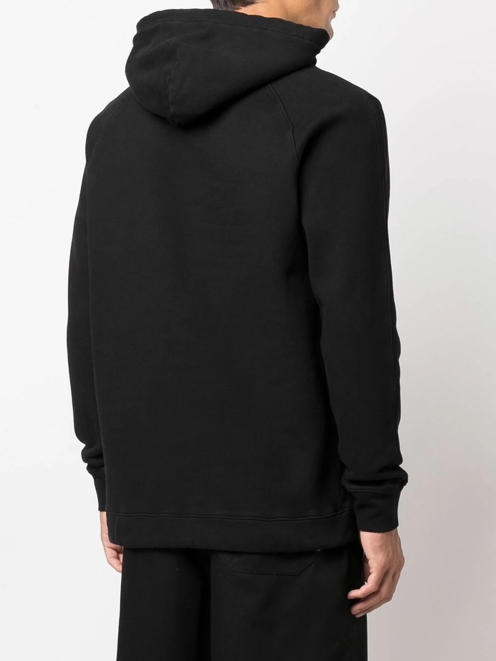 Polaire, manches longues, manches à poignets resserrés, capuche à lien de resserrage, poche plaquée sur le devant, ourlet droit. Couleur : noir. Matière : coton.