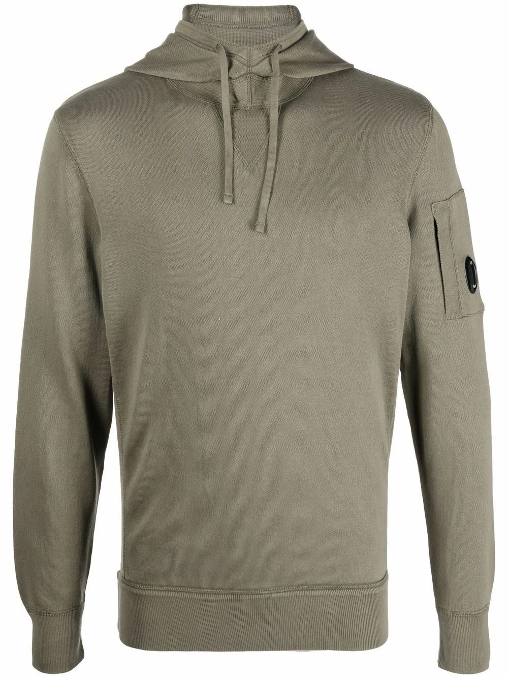 Détail nervuré, patch logo sur la manche, capuche à lien de resserrage, manches longues, ourlet droit. Matière : coton.