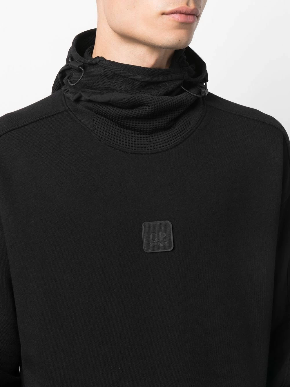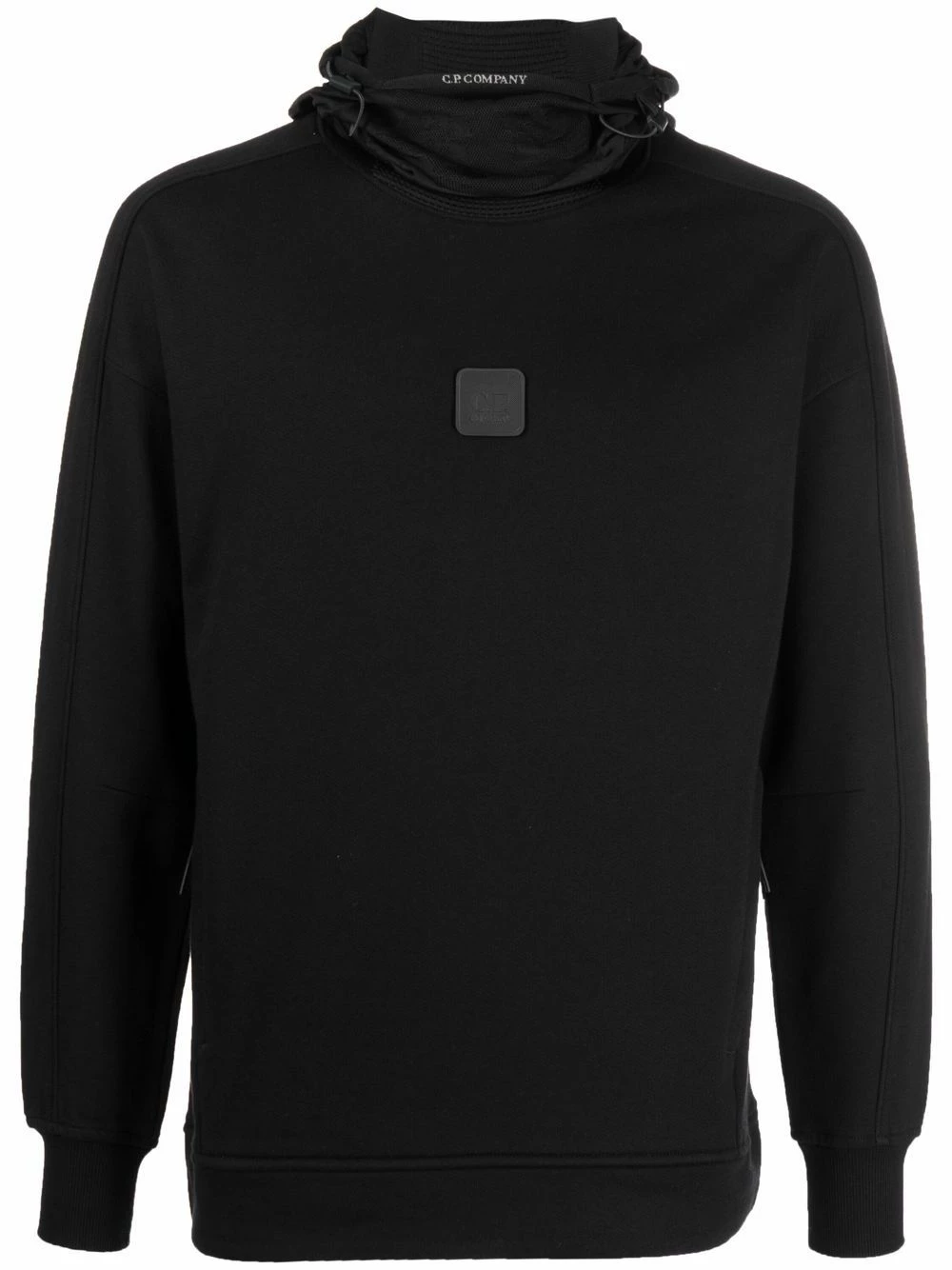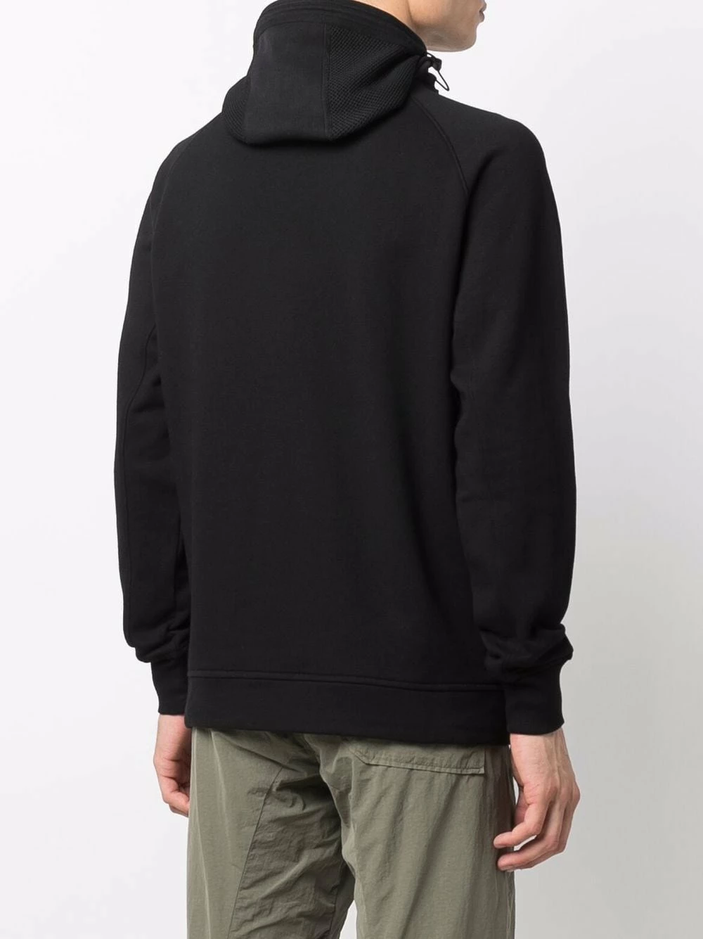 Patch logo sur le devant, capuche à lien de resserrage, manches longues, ourlet droit. Couleur : noir. Matière : coton.