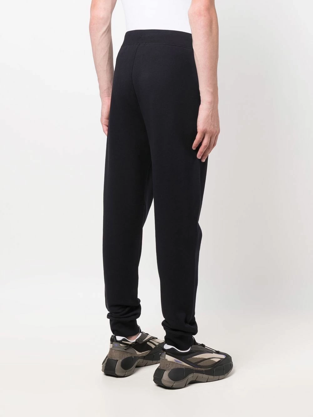 Polaire, détail verre de lunette signature, ceinture élastique, design à enfiler, coupe slim, poche devant à rabat, chevilles élastiques.