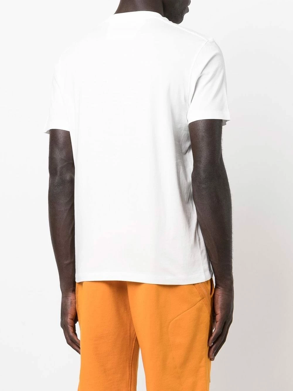Tricot point jersey, logo imprimé sur le devant, encolure ronde, manches courtes, ourlet droit. Matière : coton.