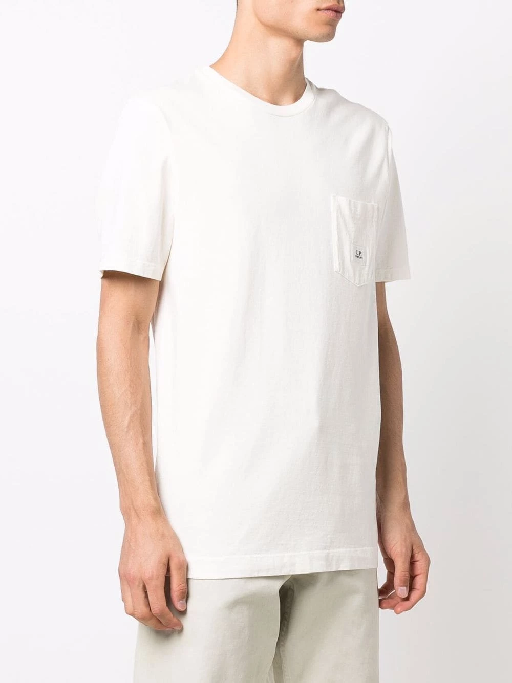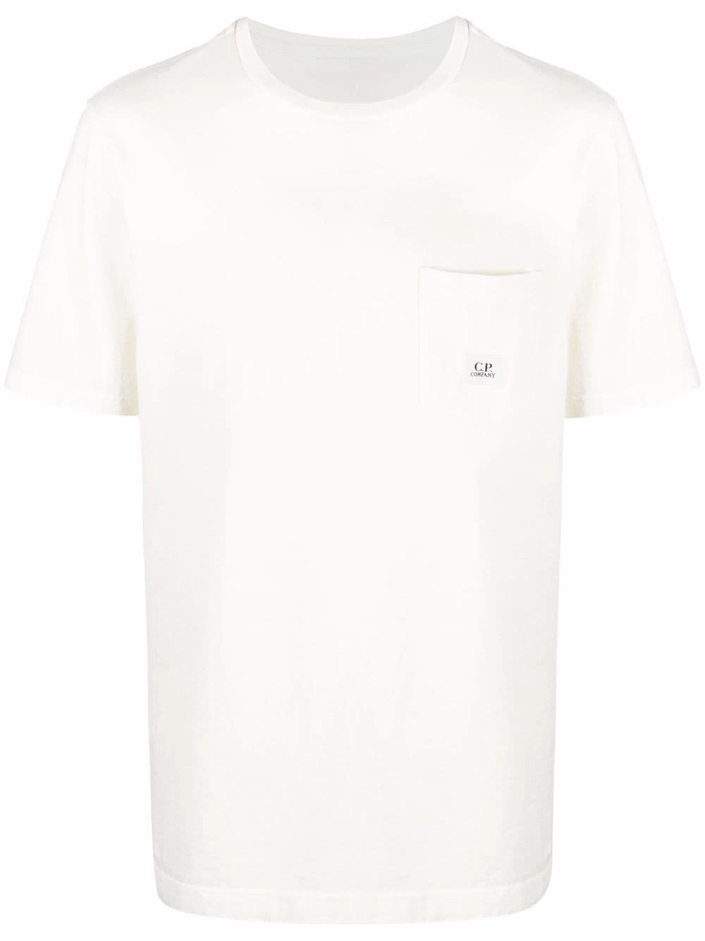 Ivoire, coton, patch poitrine à logo, encolure ronde, manches courtes, poche poitrine plaquée, ourlet droit.