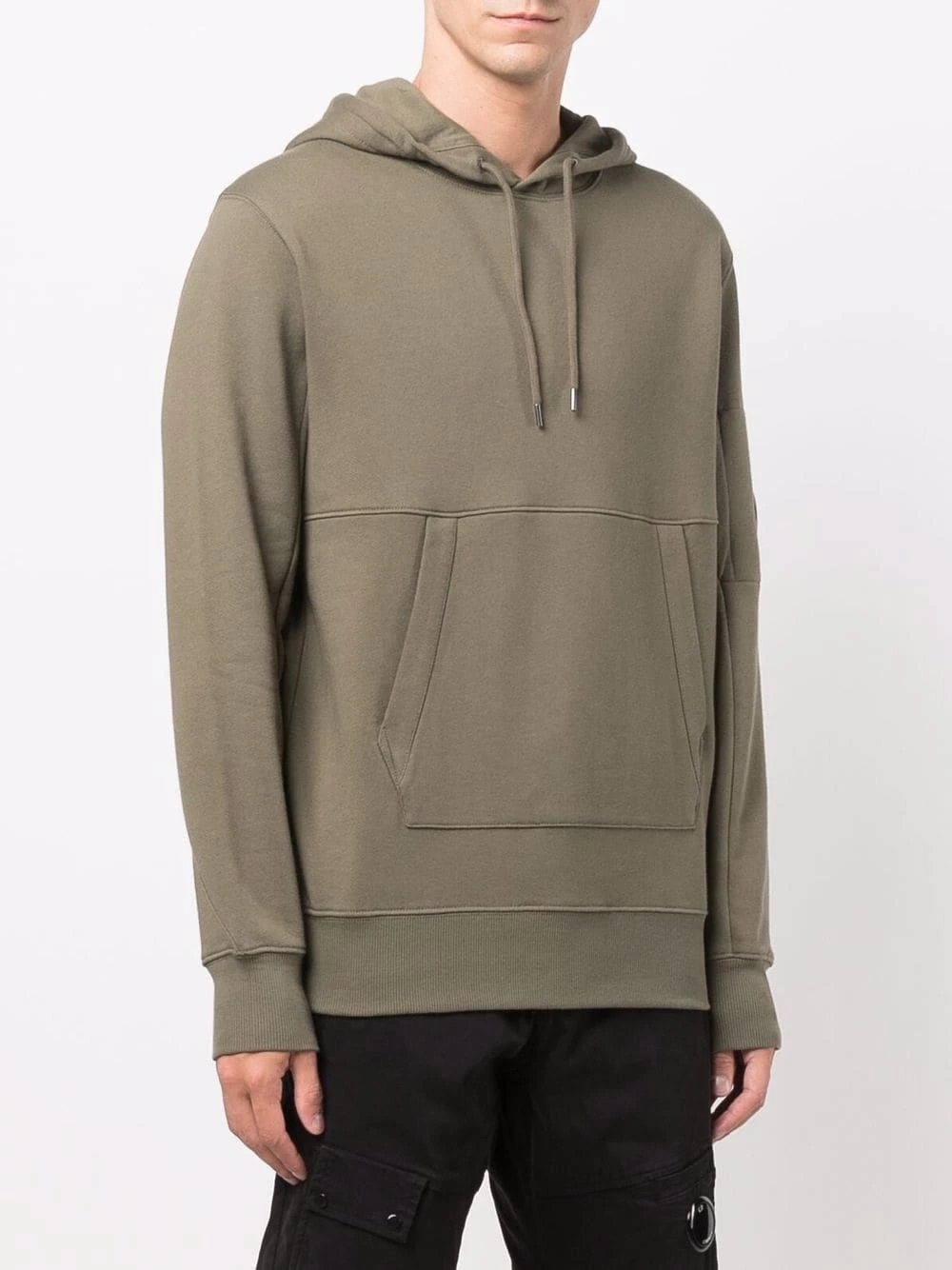 Poche plaquée sur le devant, capuche à lien de resserrage, manches longues, poignets élastiqués, ourlet élastiqué, ourlet droit. Couleur : vert. Matière : coton.