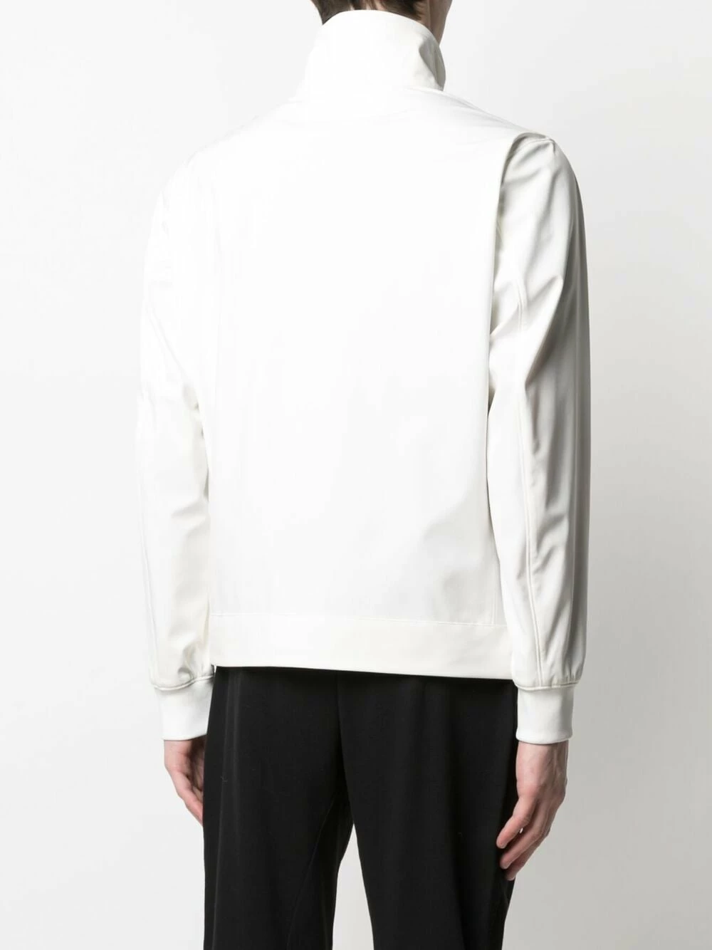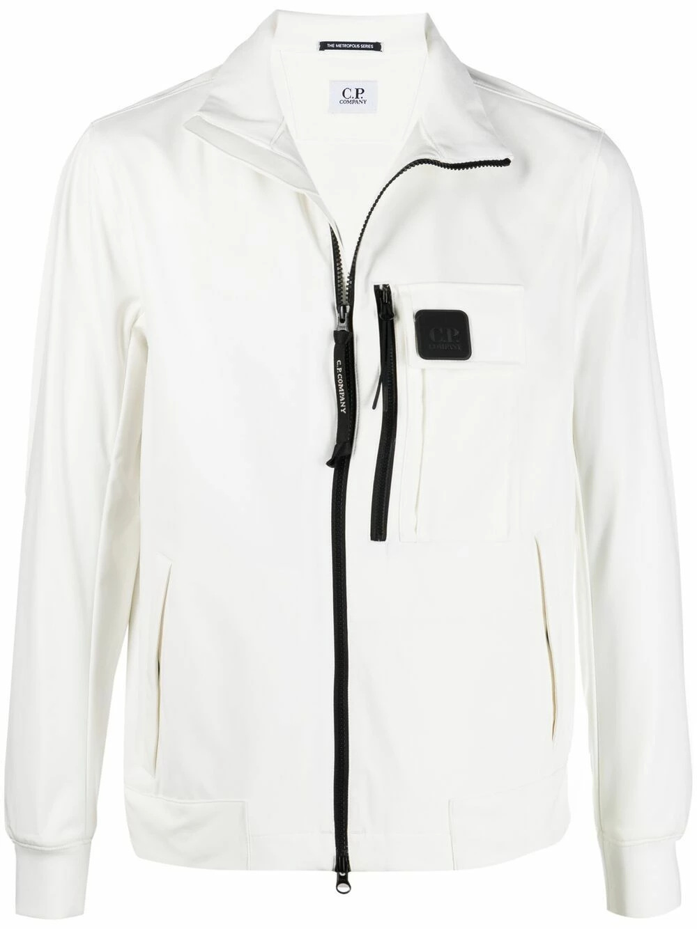 Logo brodée sur la poitrine, col montant, fermeture zippée devant, manches longues, poche poitrine zippée, deux poches latérales boutonnées, poignets nervurés, ourlet droit.