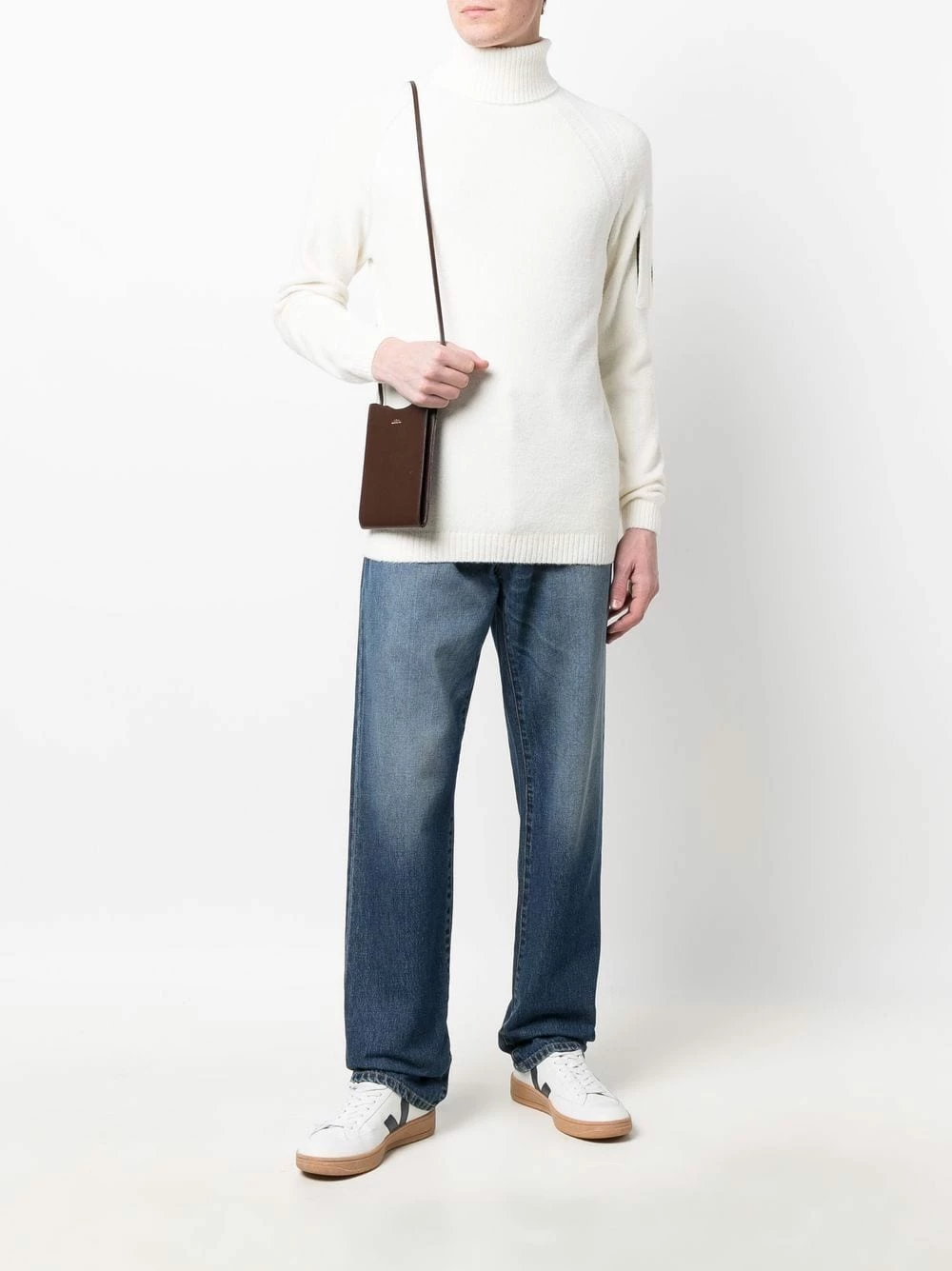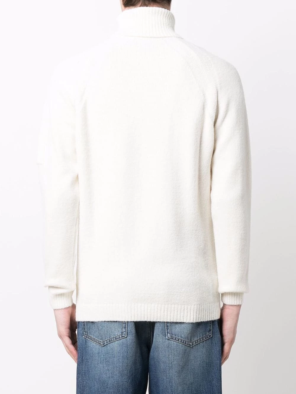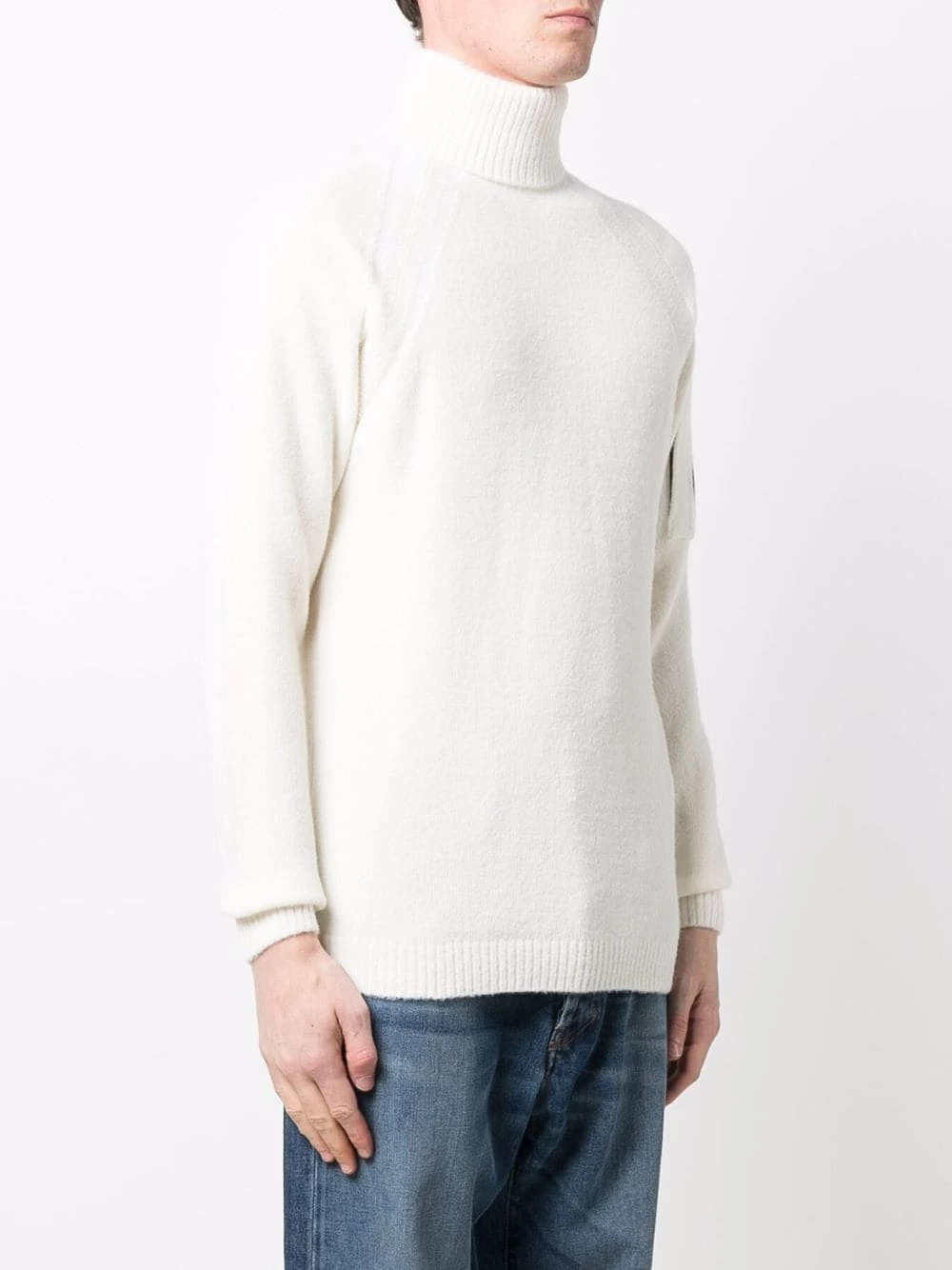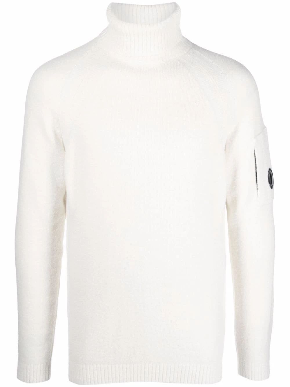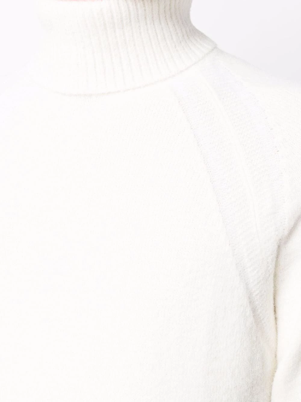 Design en maille, finitions nervurées, verre à détail de décalque, col roulé, manches longues, ourlet droit. Couleur : blanc.
