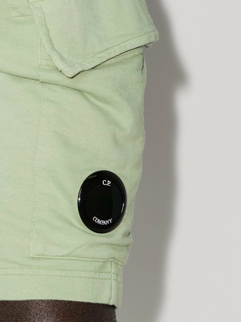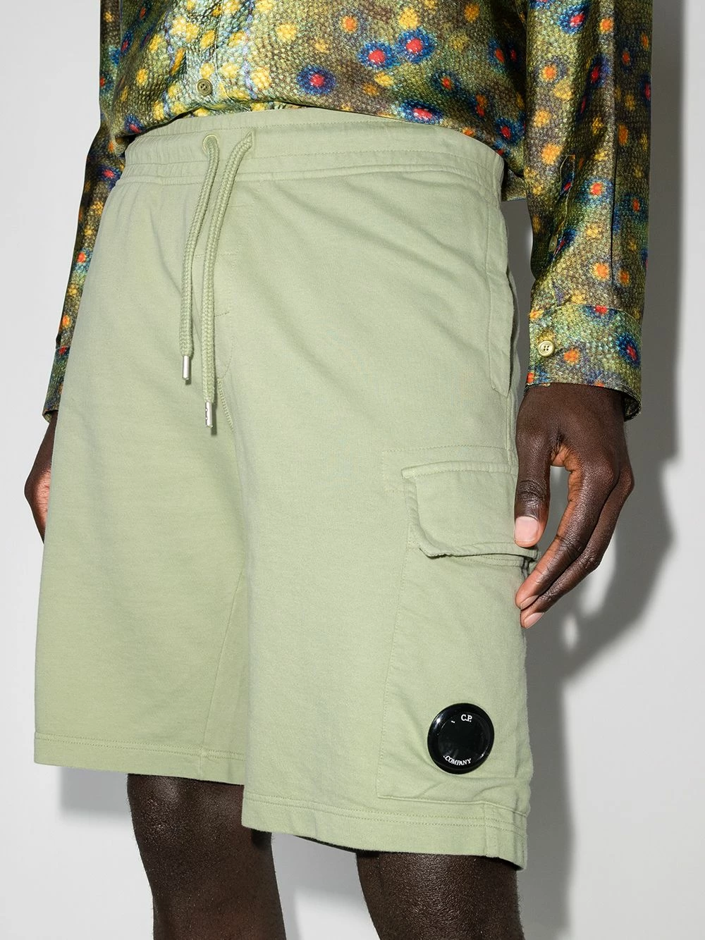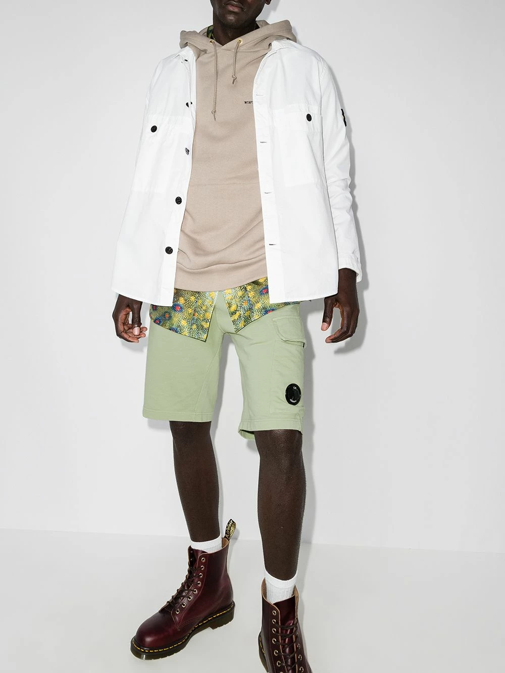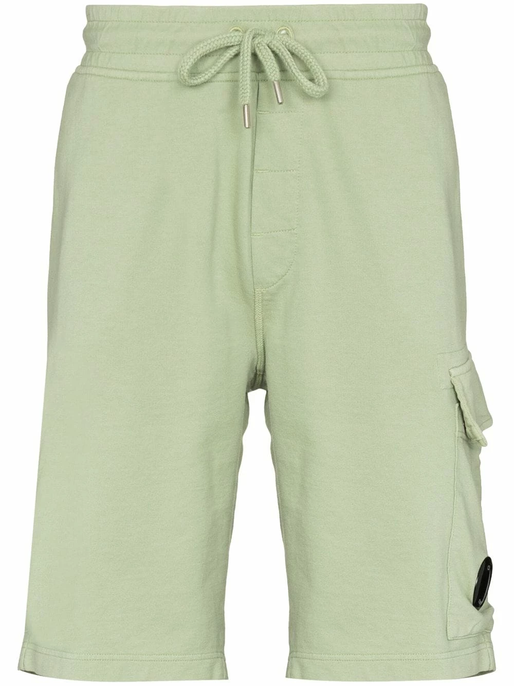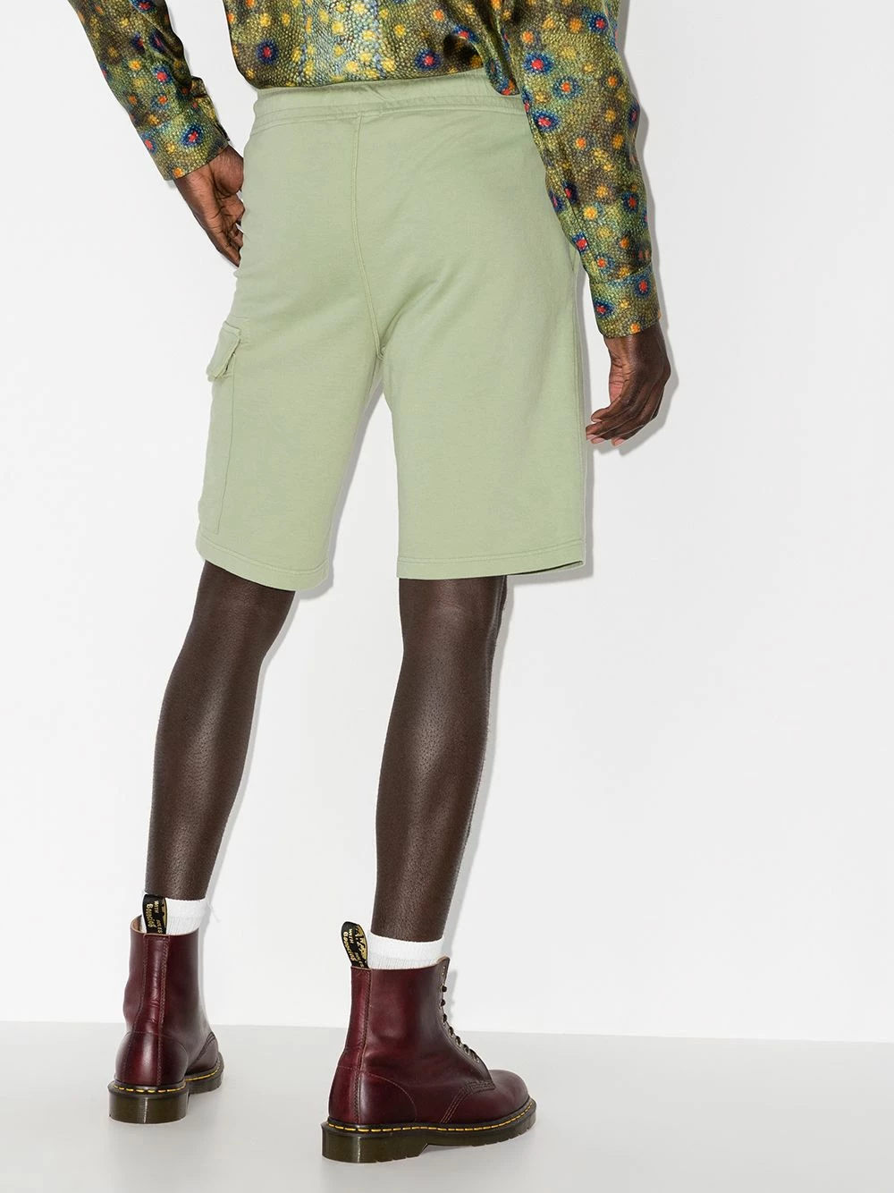 Patch logo sur le côté, taille élastique à lien de resserrage, poche latérale à rabat, deux poches latérales fendues, hauteur genou. Matière : coton.