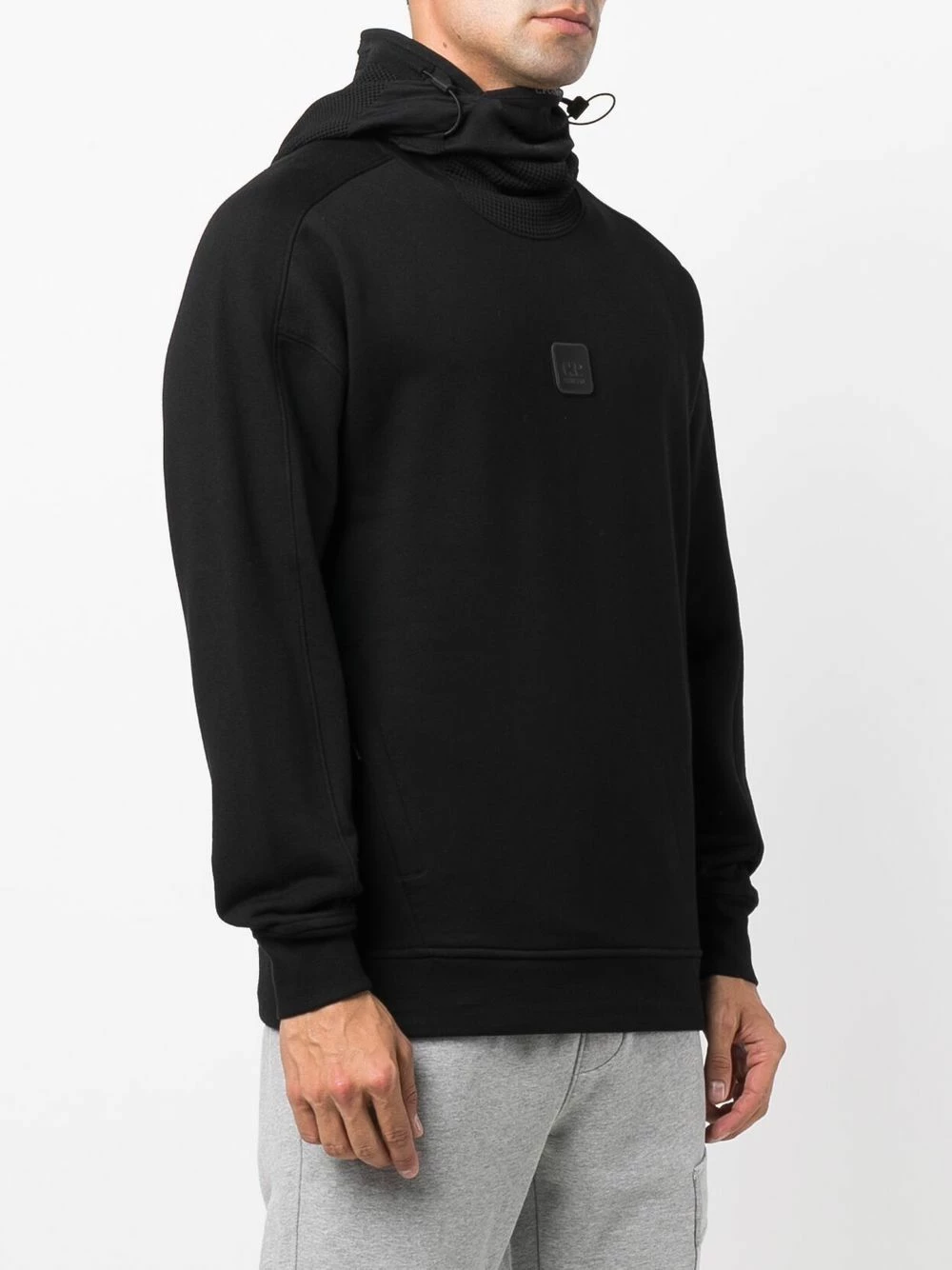 Construction stretch, patch poitrine à logo, détail nervuré, col montant, capuche classique, fermeture duffle-coat, manches longues. Couleur : noir. Matière : coton.