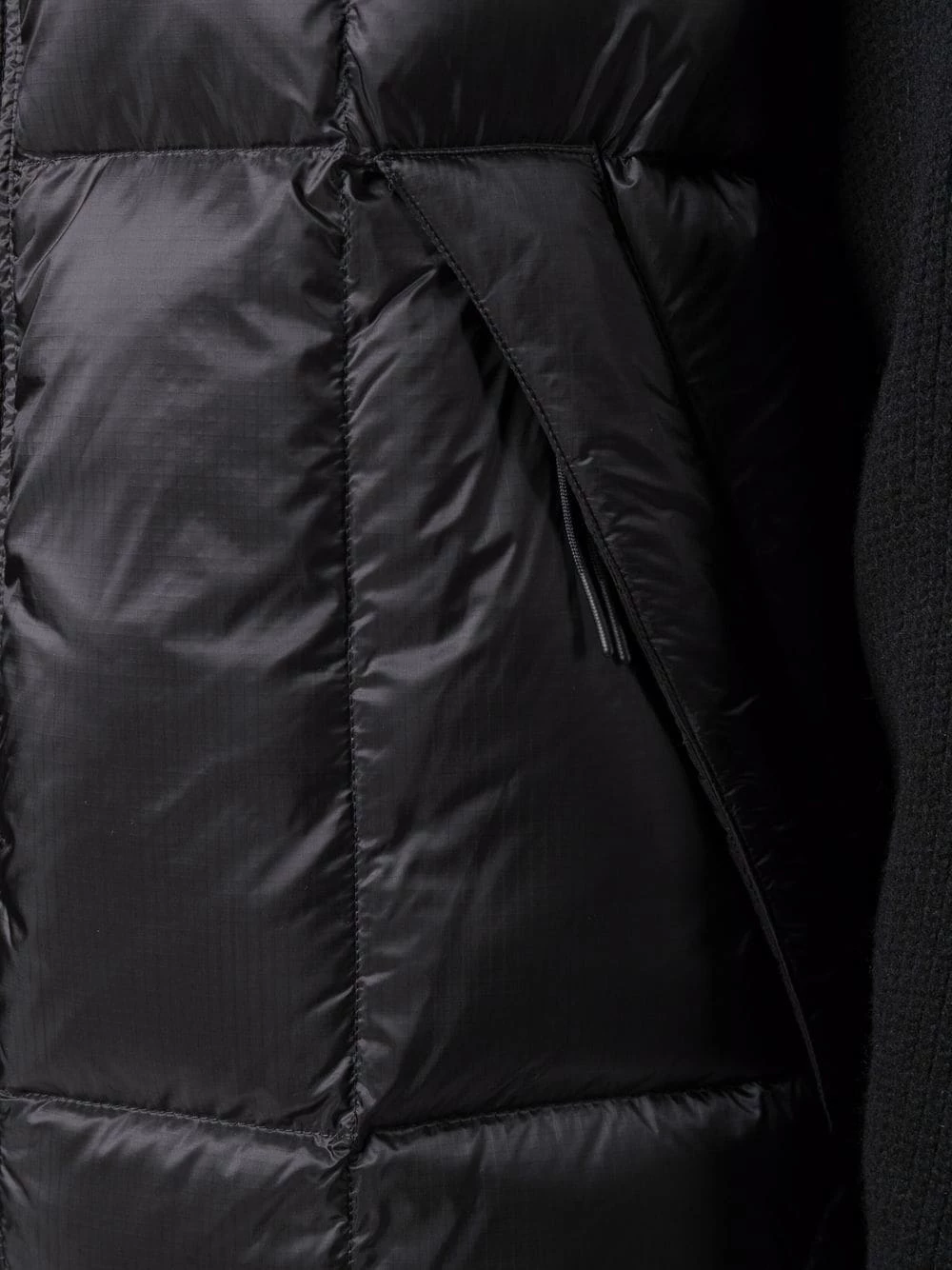Garnissage en duvet, design matelassé, fermeture zippée devant, manches longues. Couleur : noir.