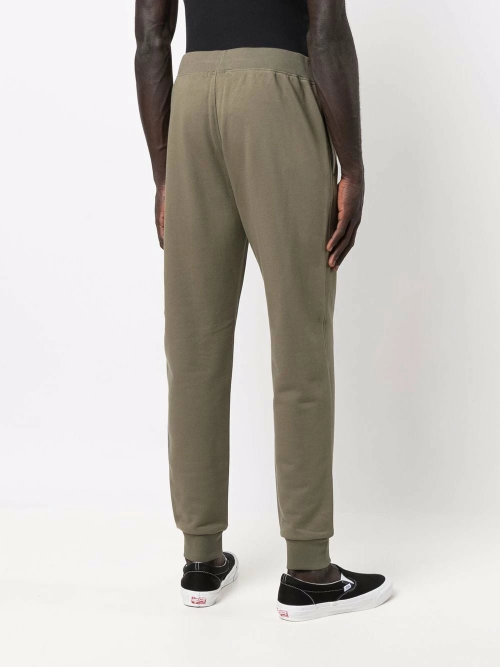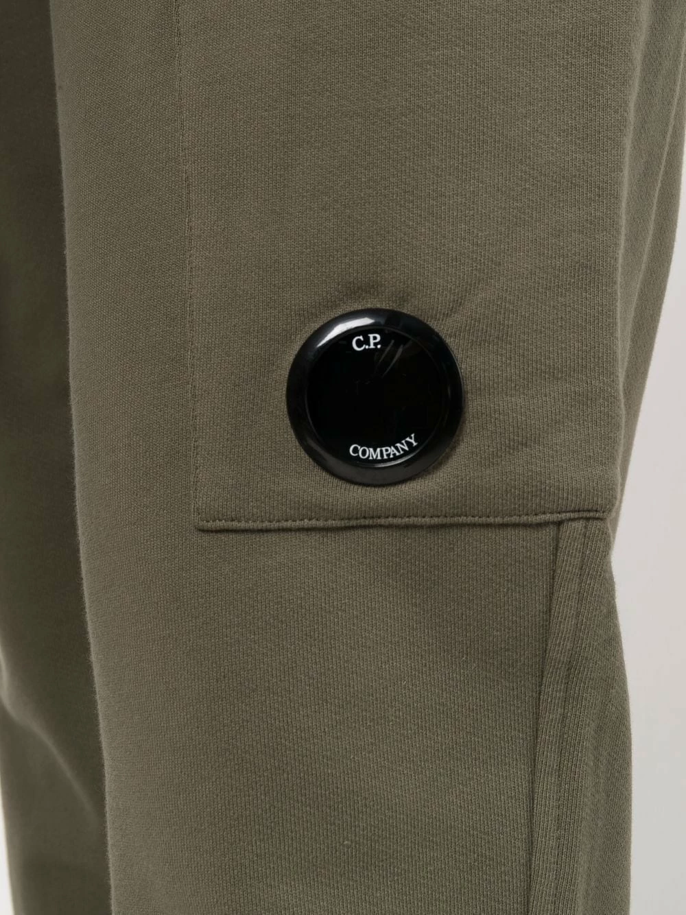 Ceinture élastique, poches latérales fendues, poche latérale cargo, chevilles élastiques, coupe fuselée. Couleur : vert. Matière : coton.