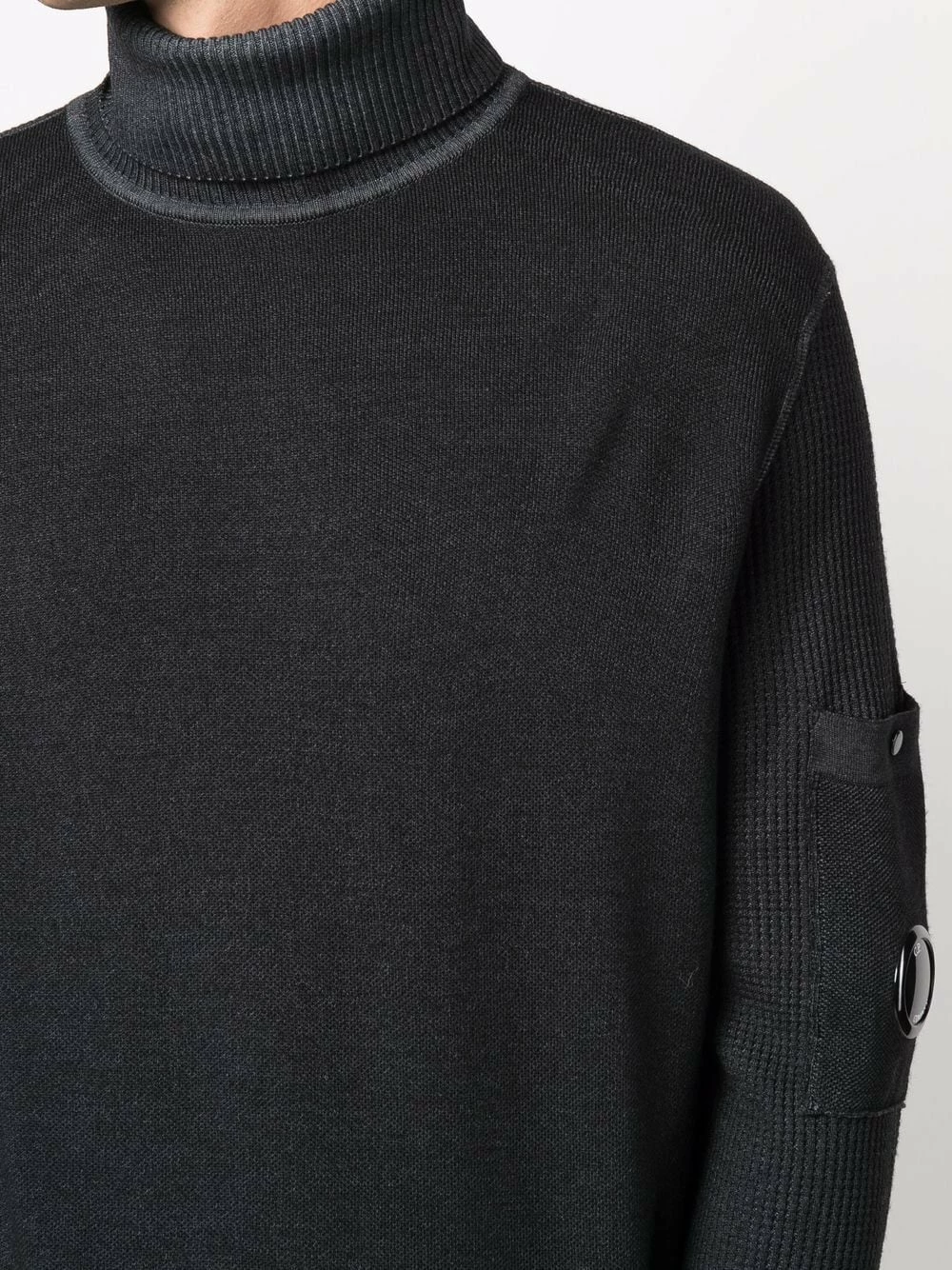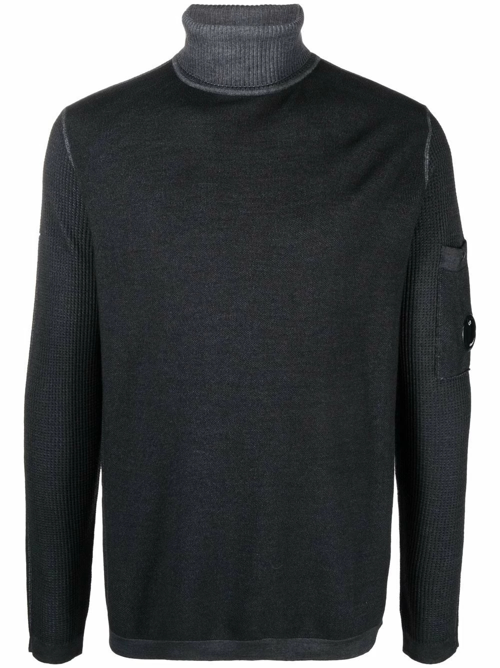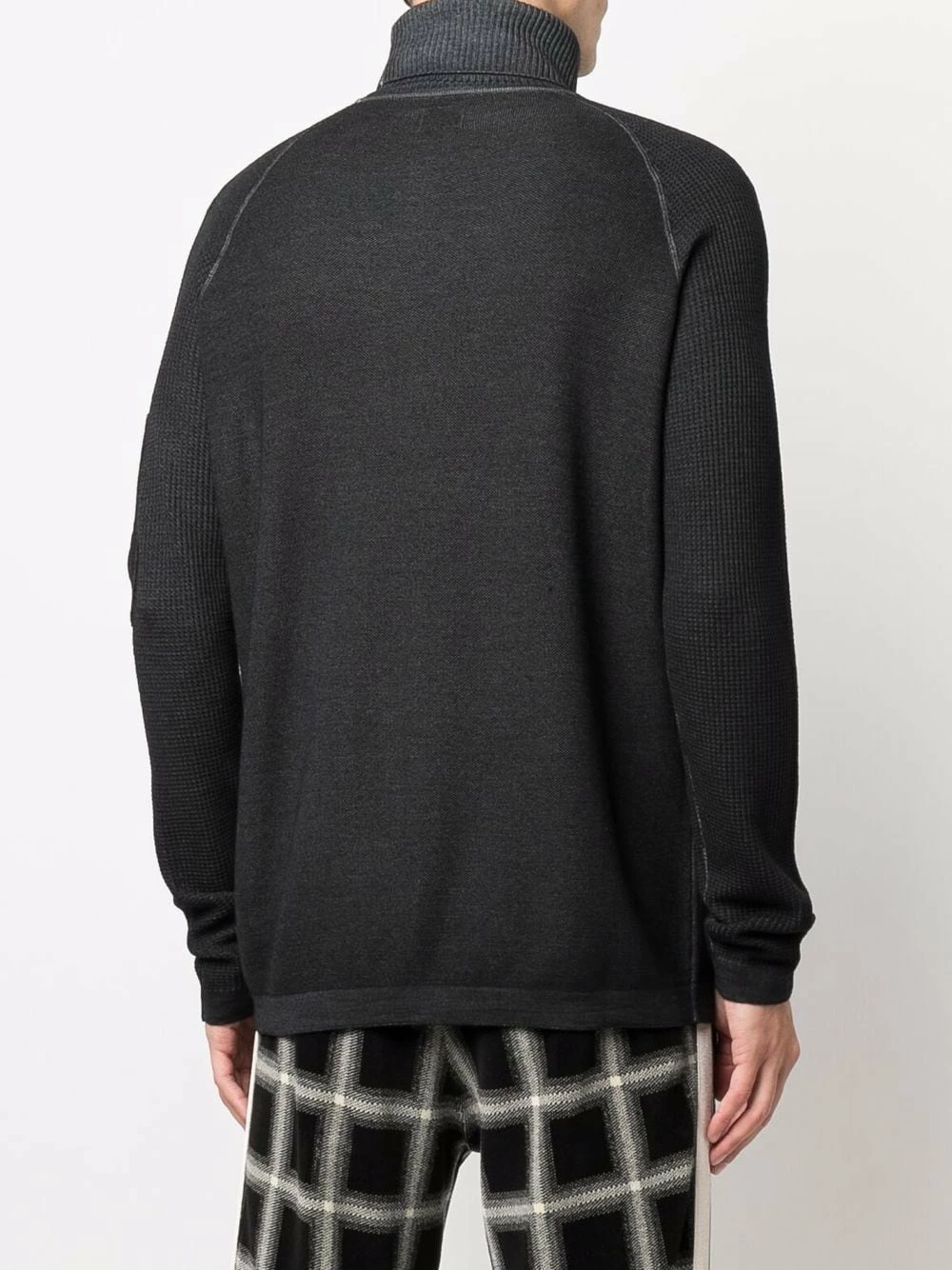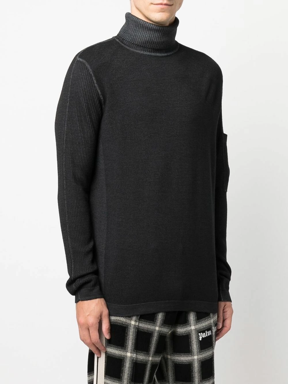 Noir, laine, maille épaisse, col roulé, manches longues, ourlet droit.