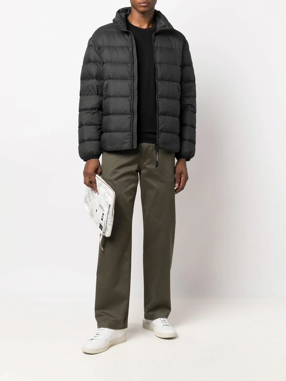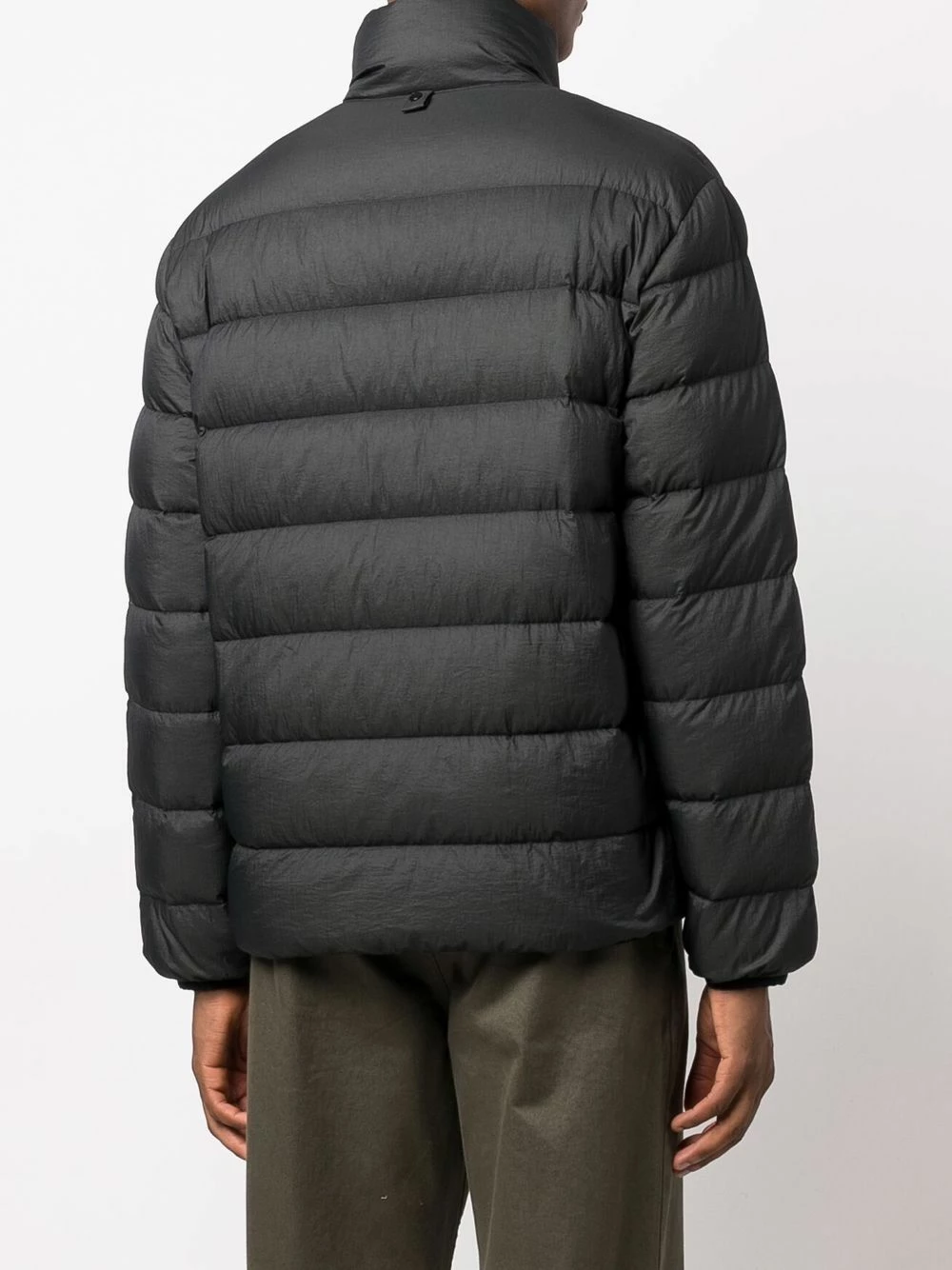 Design matelassé, design matelassé, col montant, fermeture zippée devant, manches longues, poignets élastiqués, poches latérales fendues, ourlet droit. Matière : duvet.