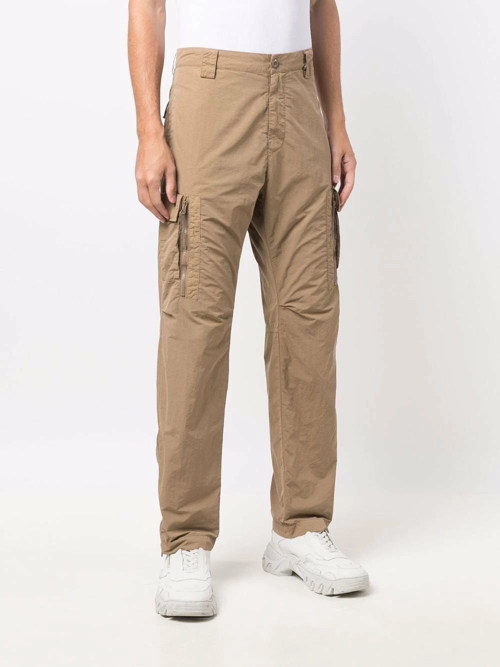 Coupe slim, passants de ceinture, fermeture à zip et boutons sur le devant, poches latérales fendues, poches latérales cargo, poches arrière à rabat.