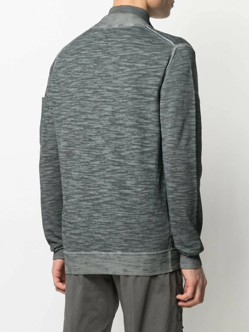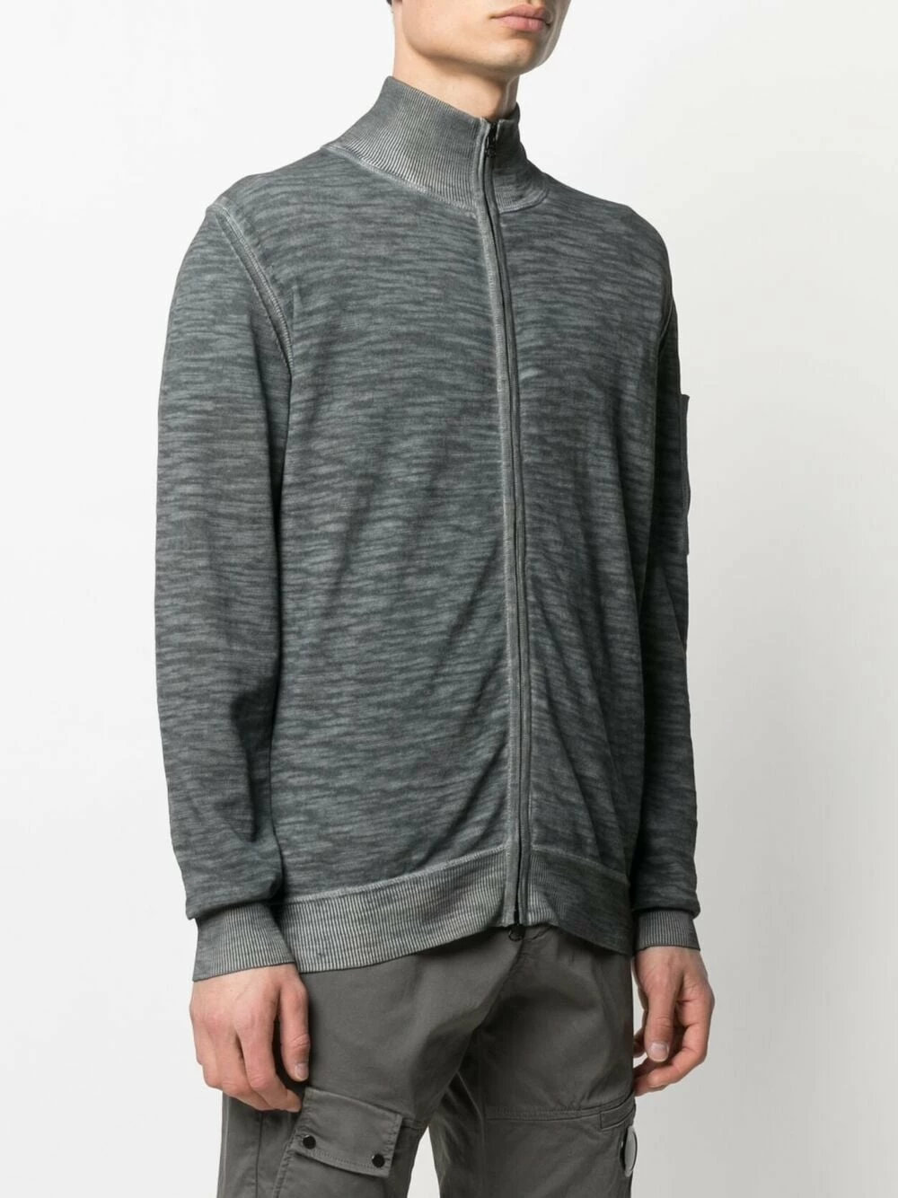 Logo brodé, col roulé, fermeture zippée devant, manches longues.