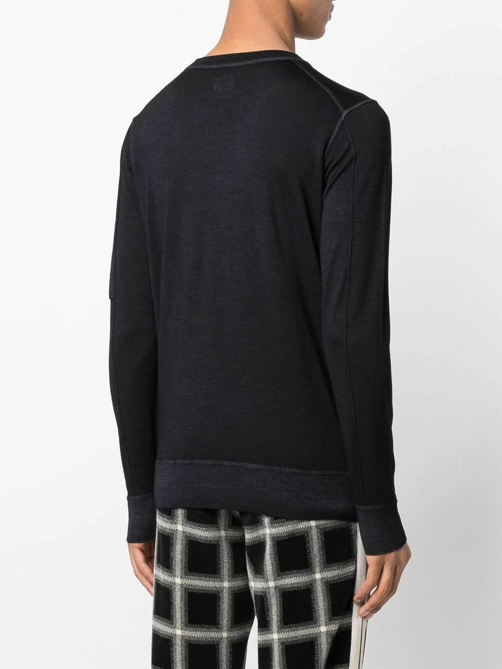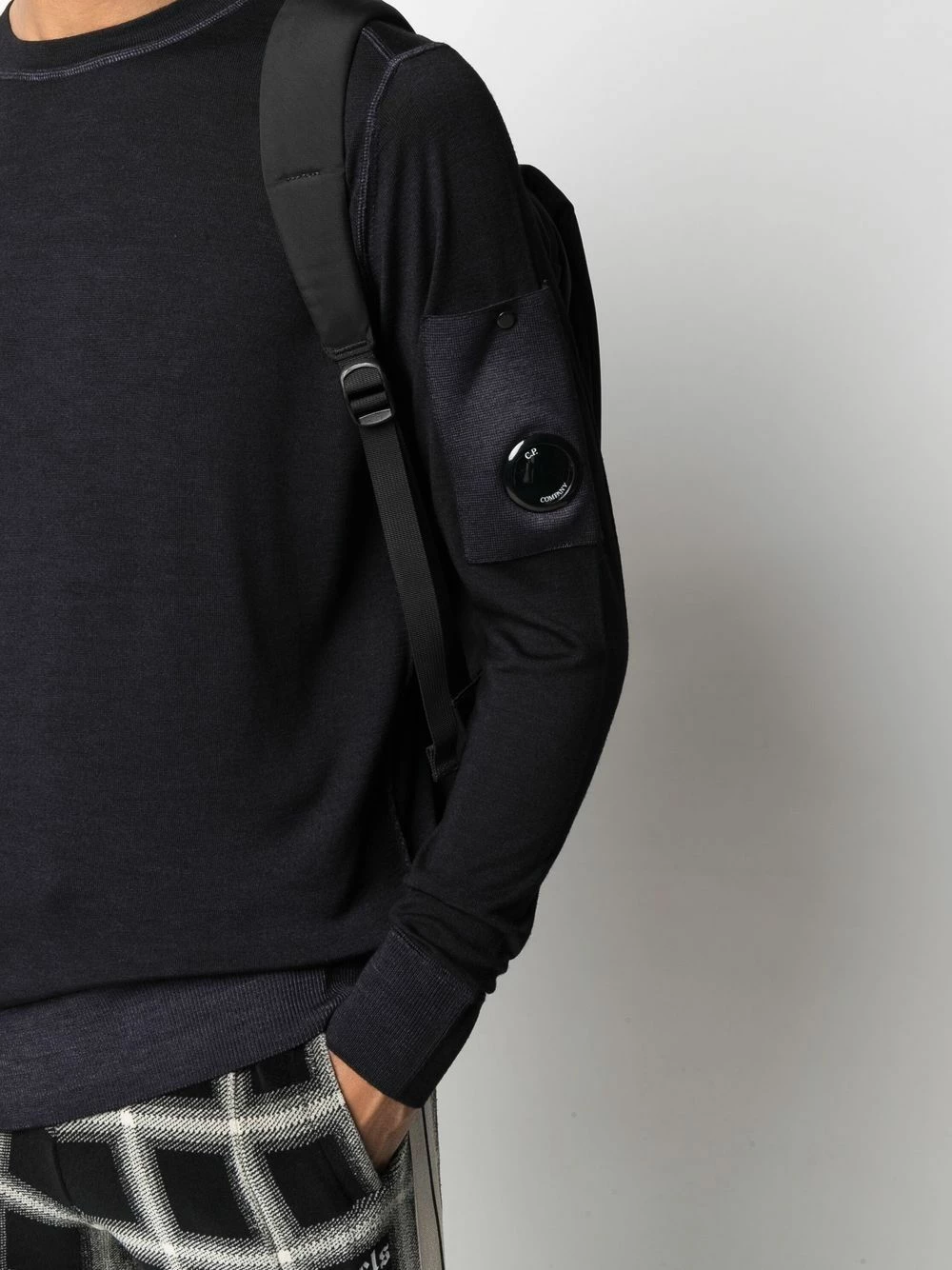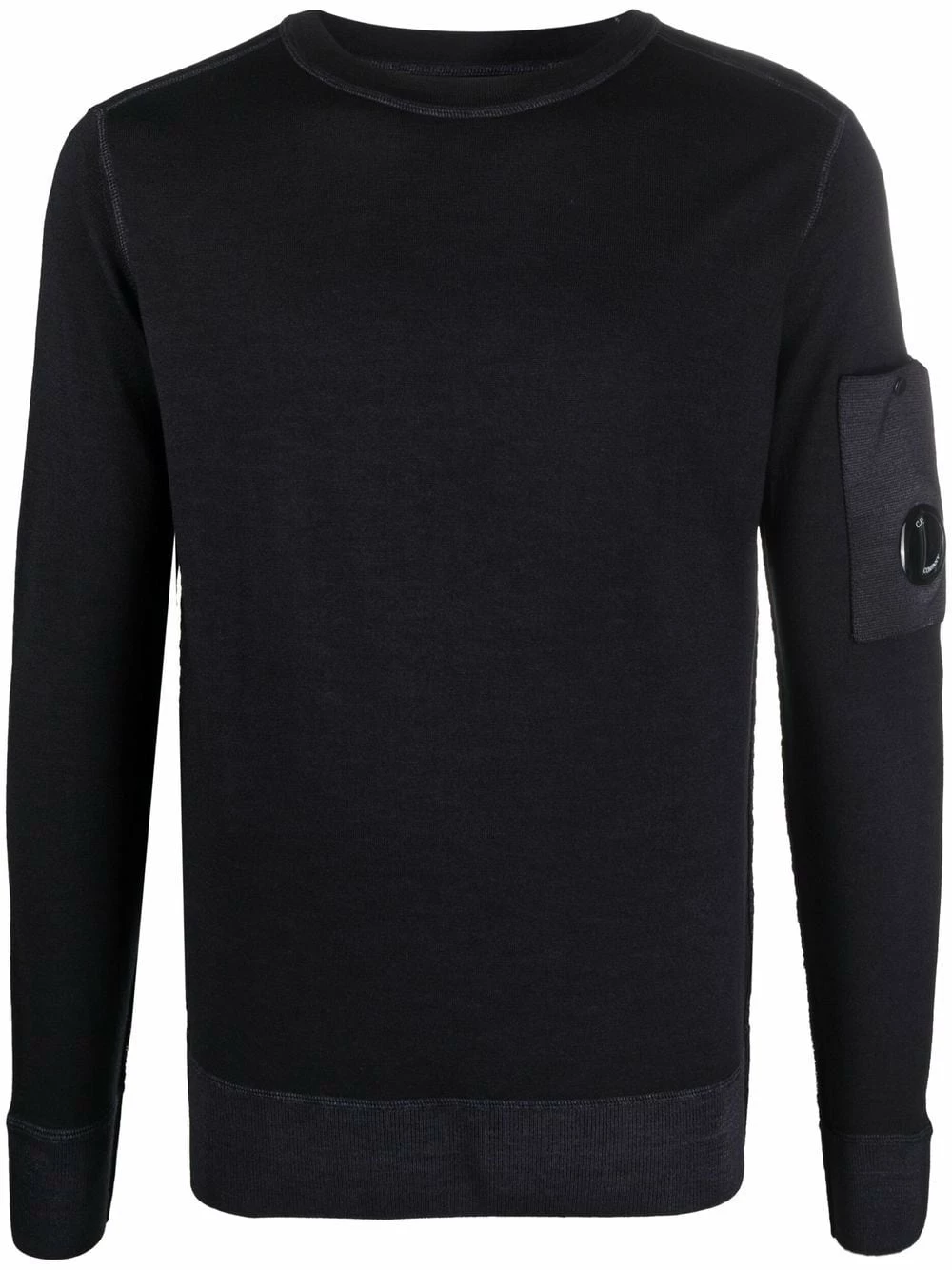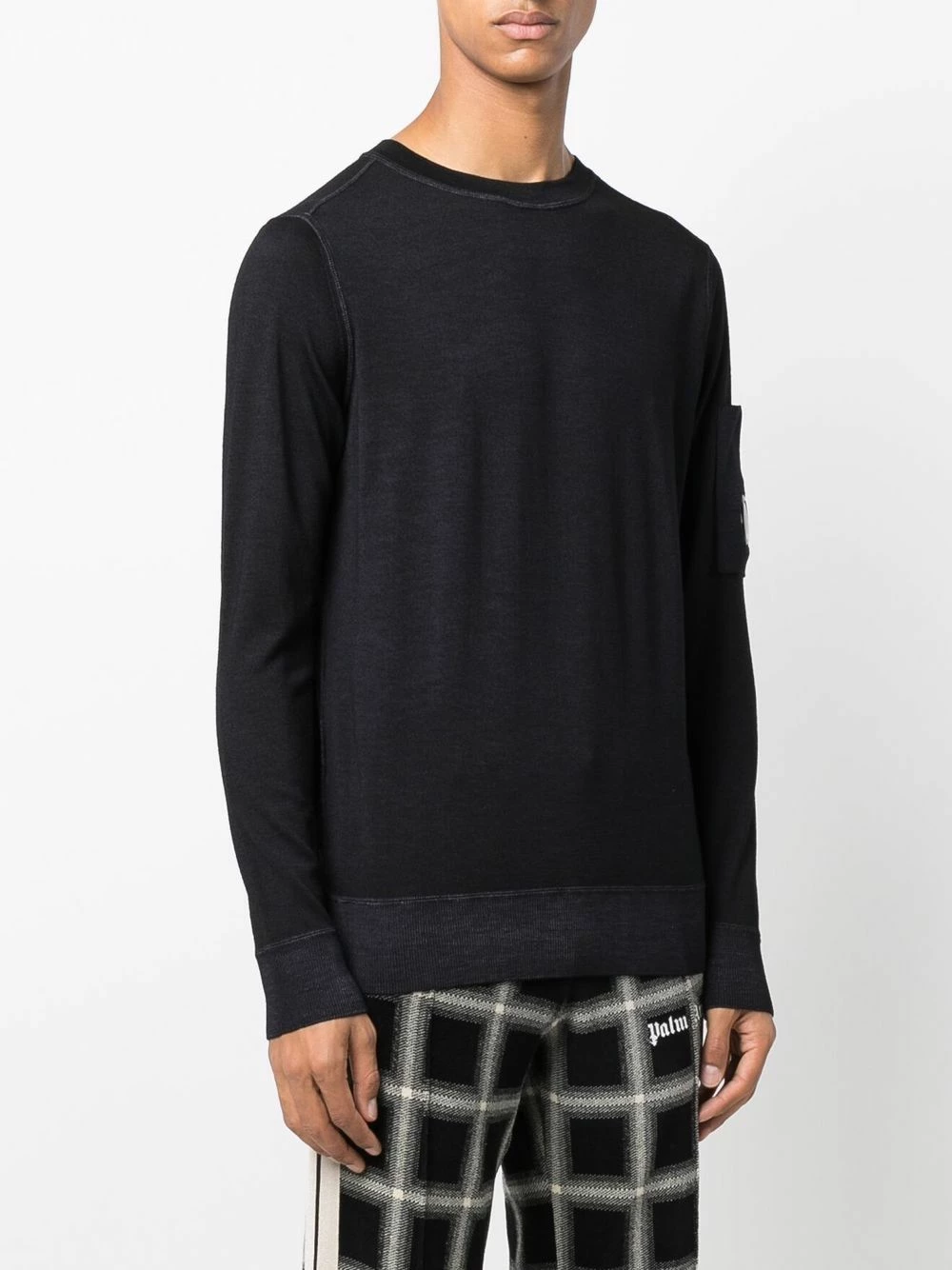 Patch logo sur la manche, encolure ras du cou, manches à poignets resserrés. Matière : laine.