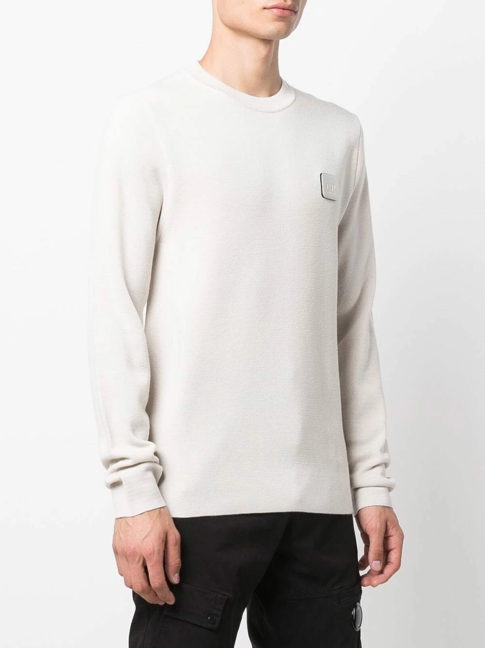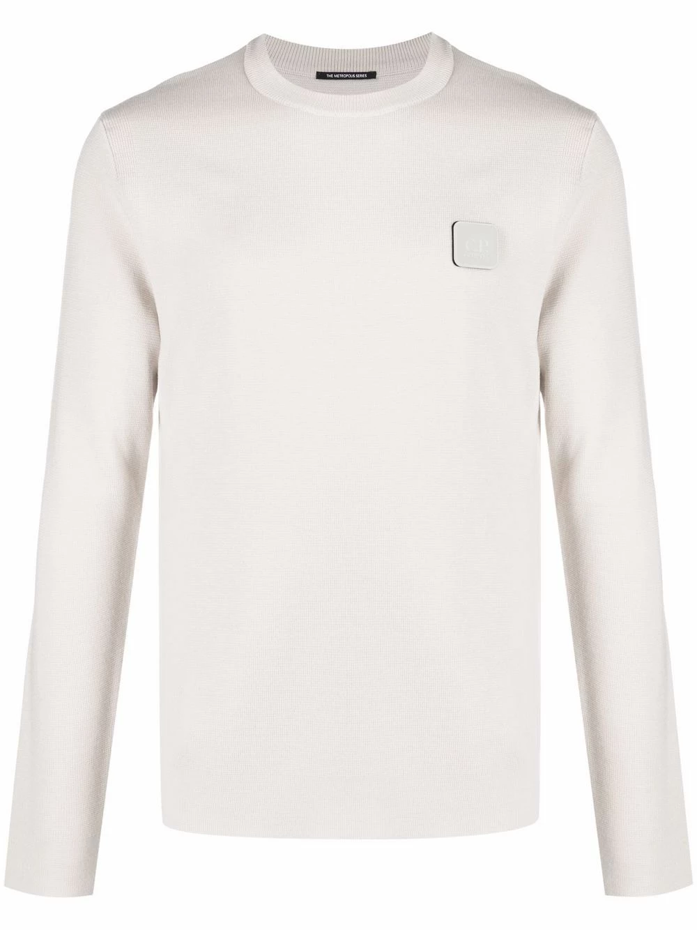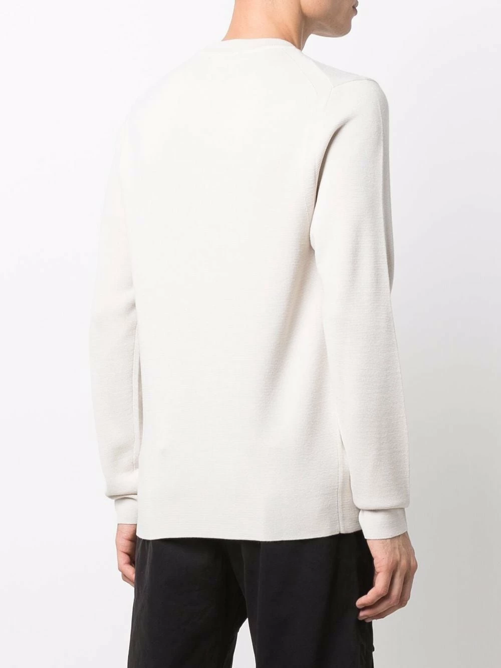 Détail nervuré, patch poitrine à logo, encolure ronde, manches longues. Matière : laine.