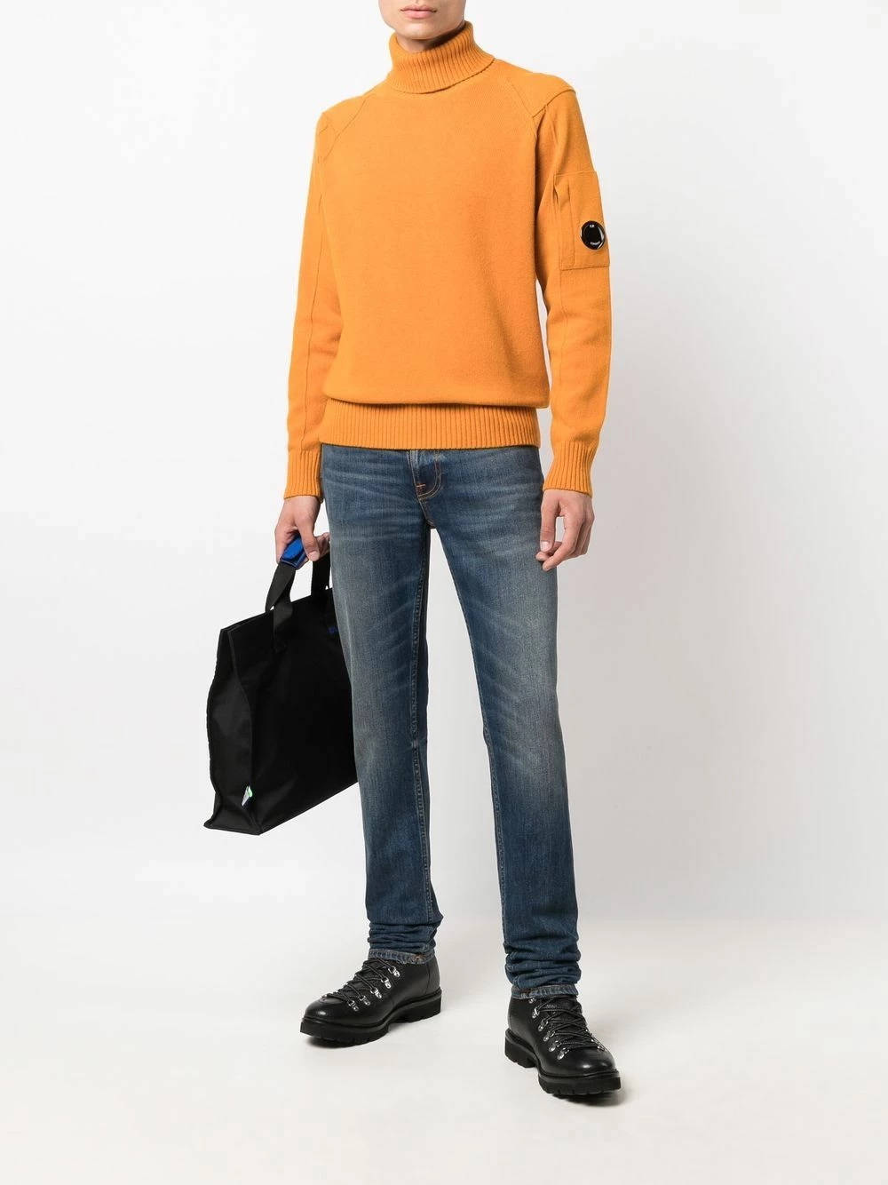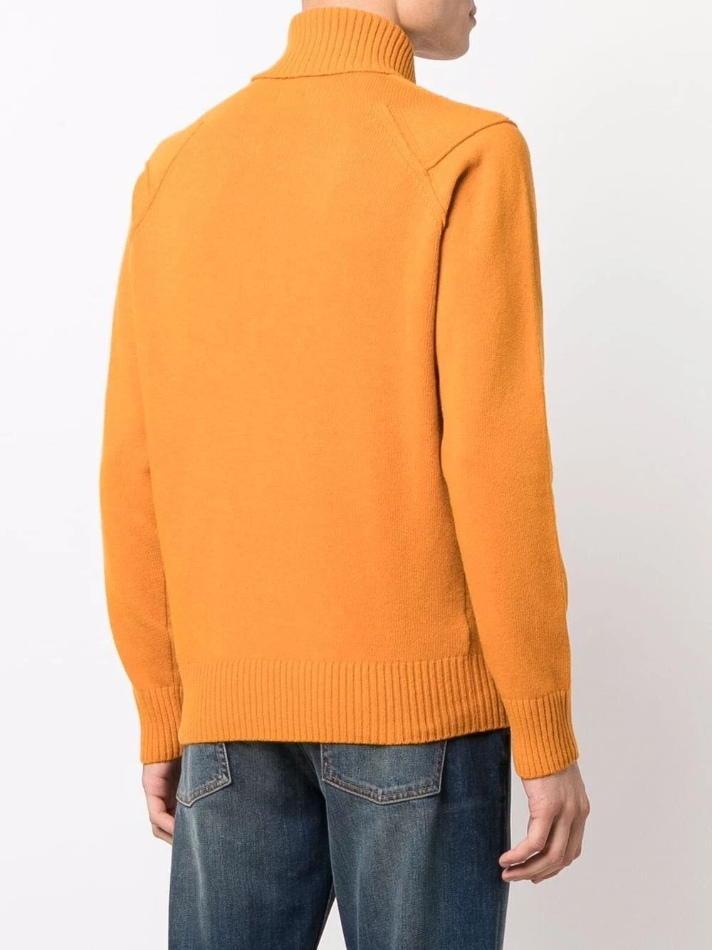 Patch logo sur la manche, poche zippée sur la manche, col roulé, manches longues, ourlet droit. Matière : laine.