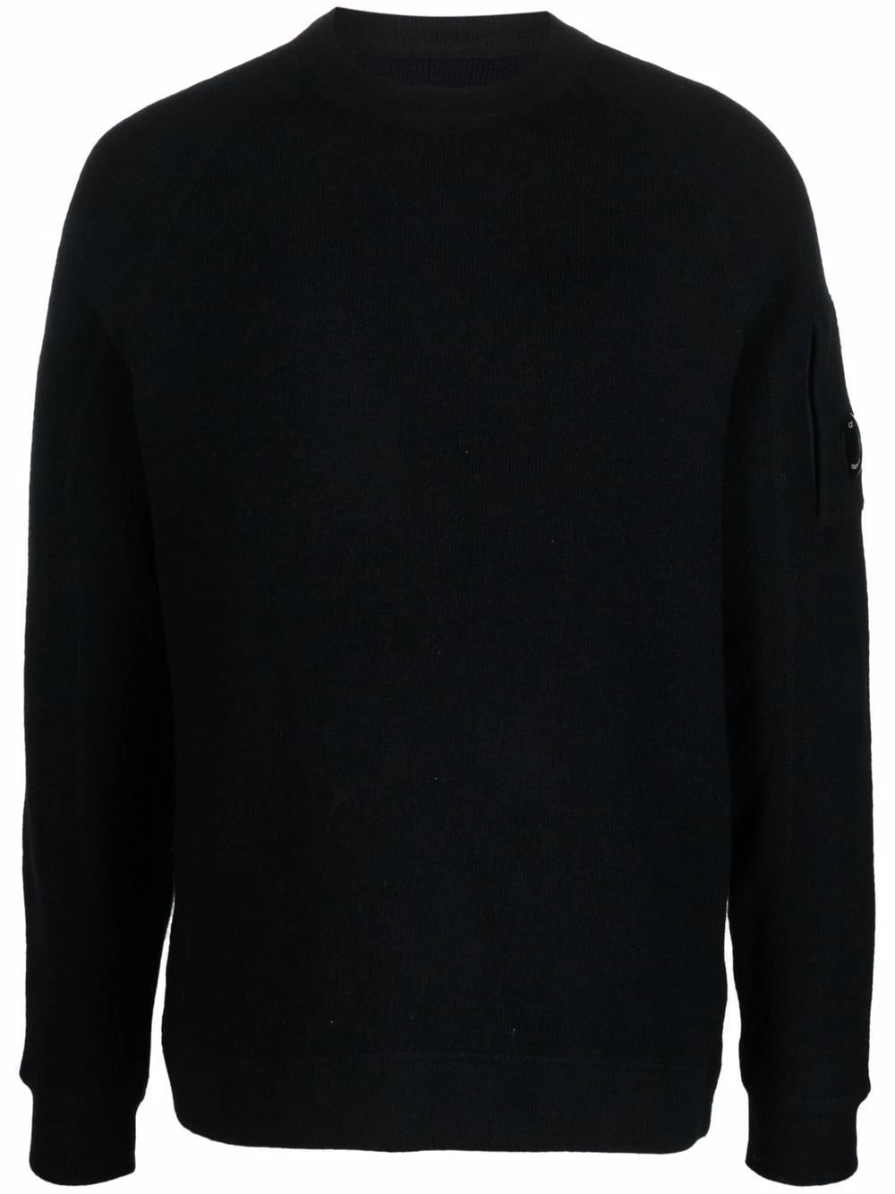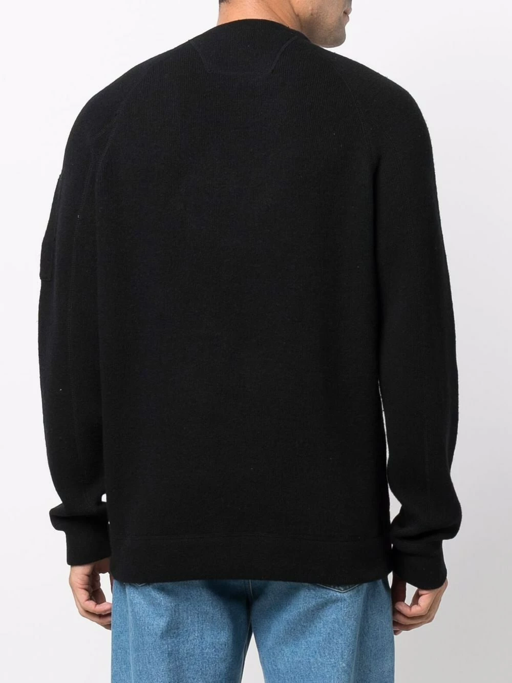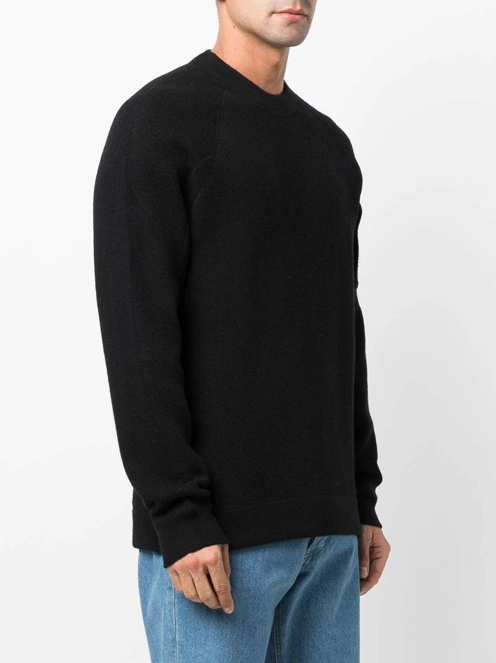 Plaque logo sur la branche, encolure ronde, manches longues, poignets nervurés, ourlet nervuré. Couleur : noir. Matière : coton mélangé.