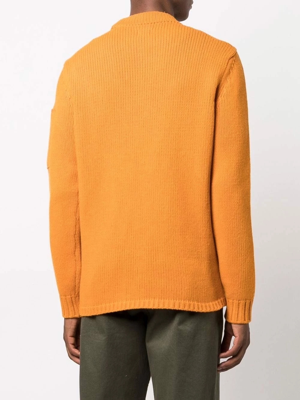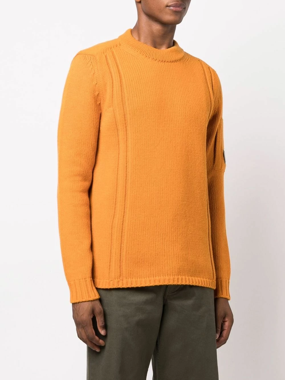 Design ton sur ton, patch logo sur la manche, design tricoté, encolure ras du cou, manches longues, bord en maille côtelée.