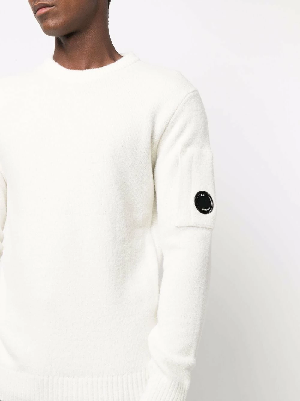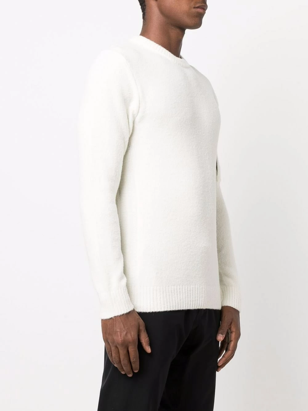Design en maille, finitions nervurées, verre à détail de décalque, manches longues, encolure ras du cou, ourlet droit.