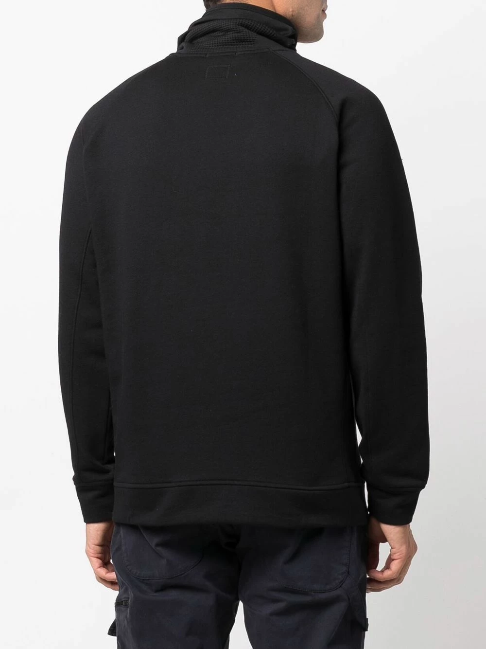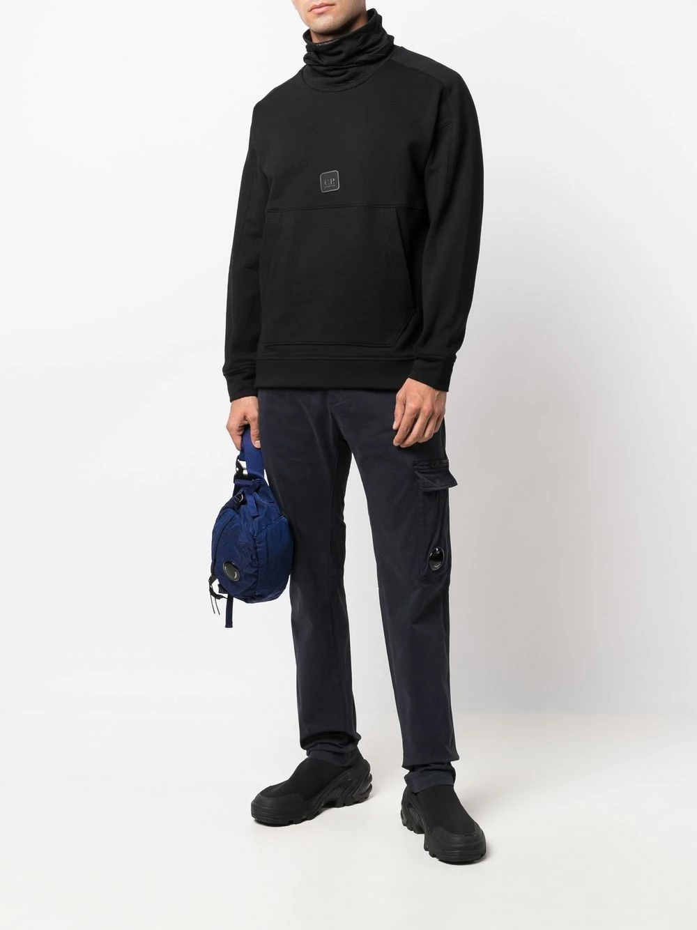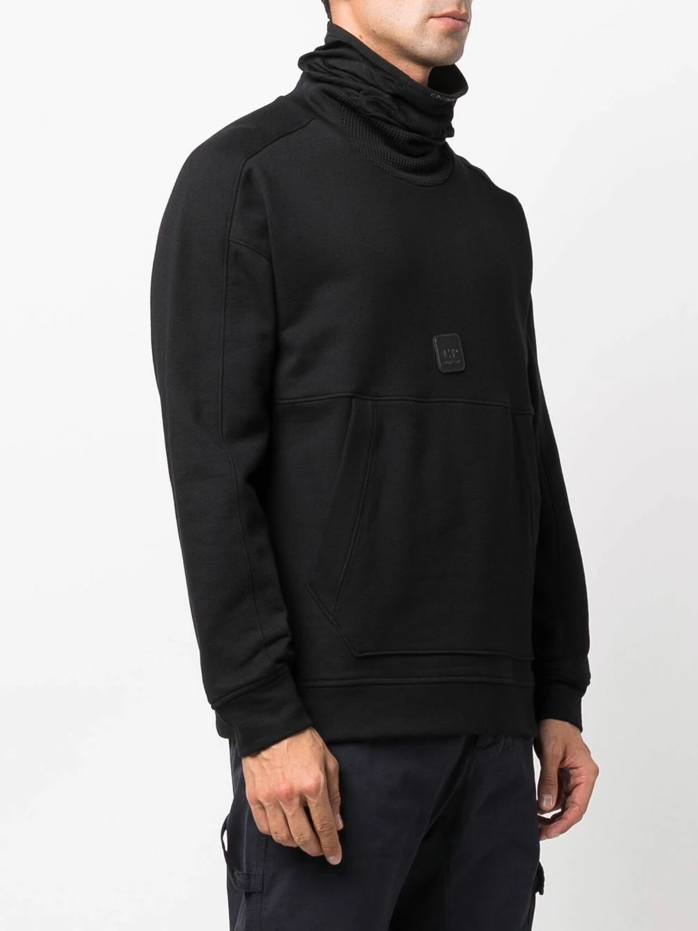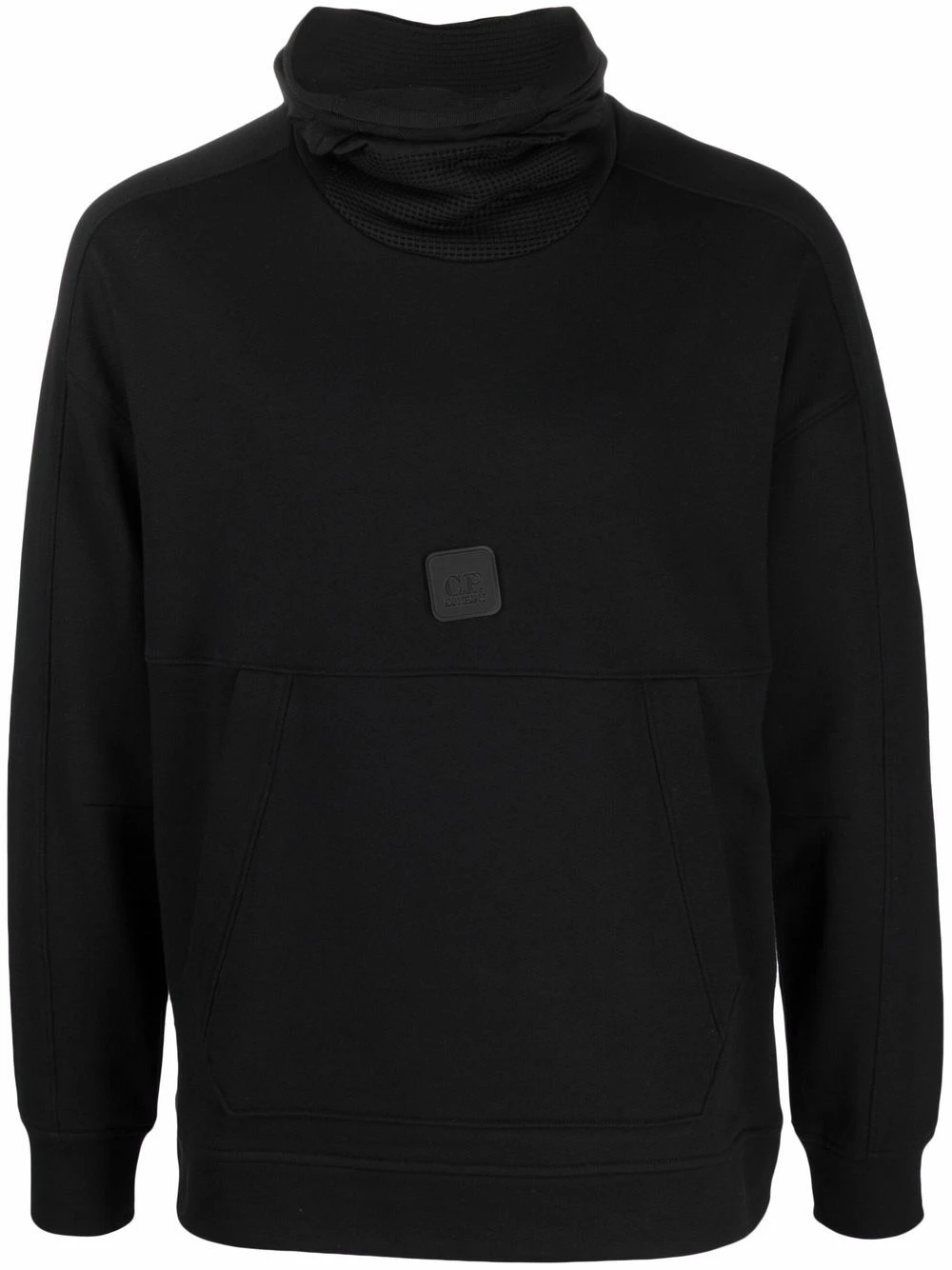 Maille fine, col roulé, patch logo sur le devant, manches longues.