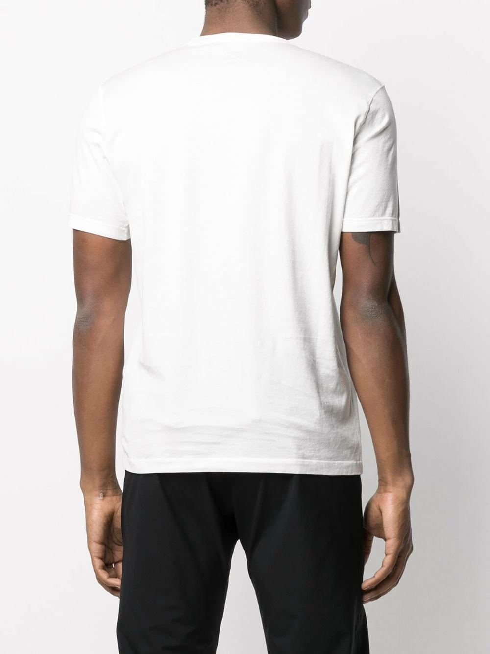Logo imprimé sur le devant, encolure ras du cou, manches courtes, ourlet droit. Couleur : Blanc. Matière : coton.
