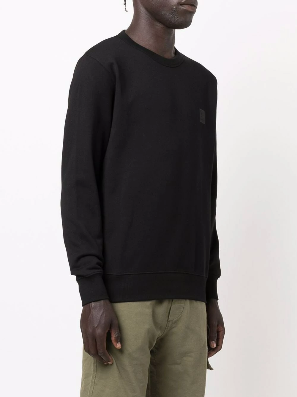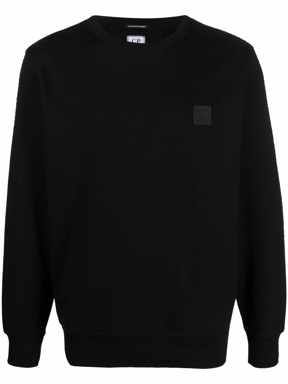Détail verre de lunette signature, capuche classique, poche poitrine zippée, manches longues, fermeture semi-zippée sur le devant. Couleur : noir. Matière : coton.