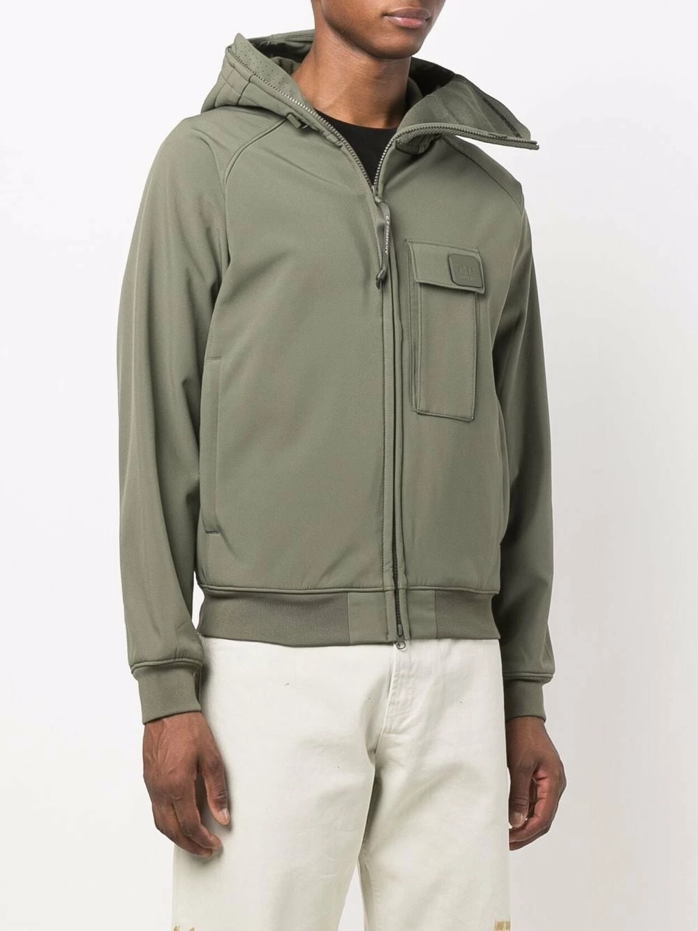Patch poitrine à logo, capuche classique, fermeture zippée devant, manches longues, poignets nervurés, deux poches latérales fendues, ourlet nervuré. Matière : coton.