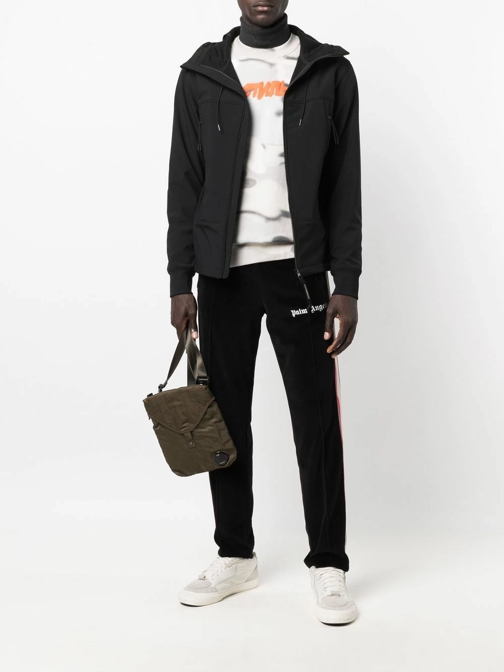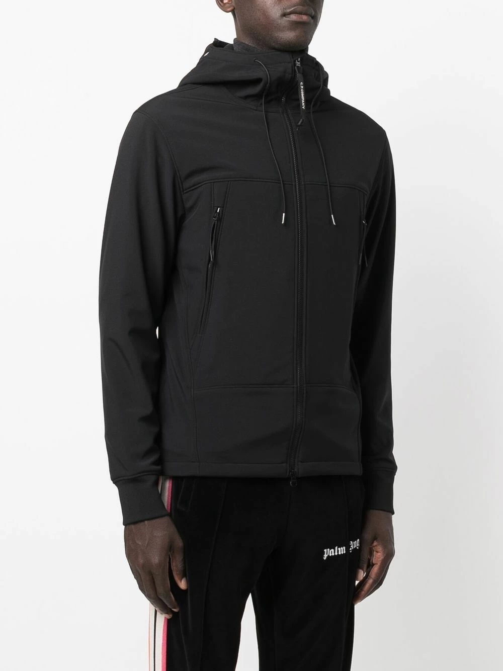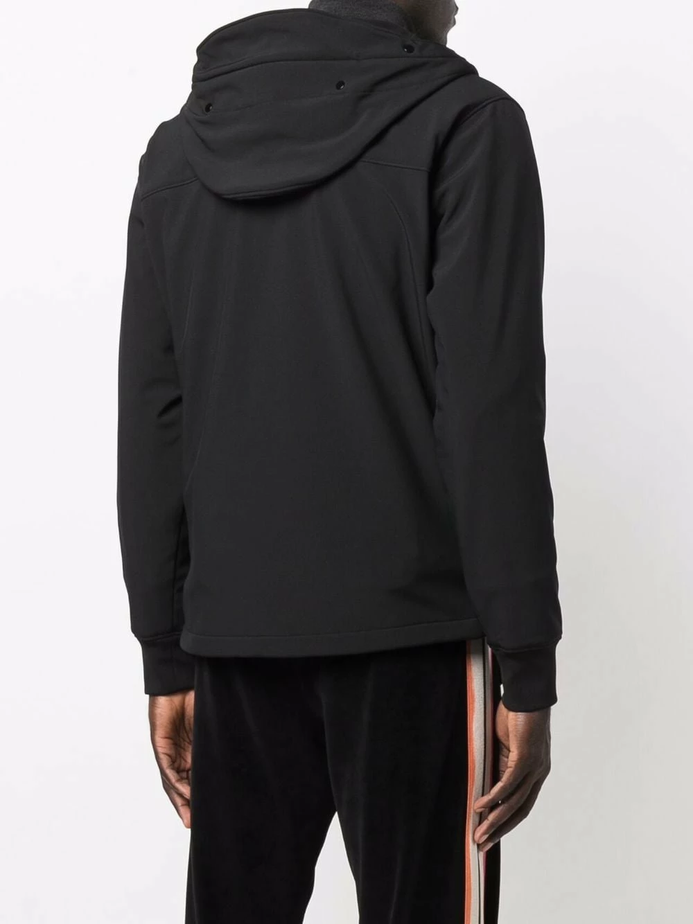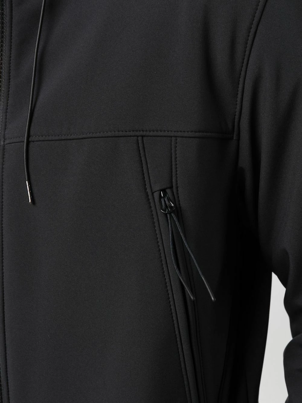 Structure légère, manches longues, deux poches latérales zippées, capuche à lien de resserrage. Couleur : noir. Matière : coton.