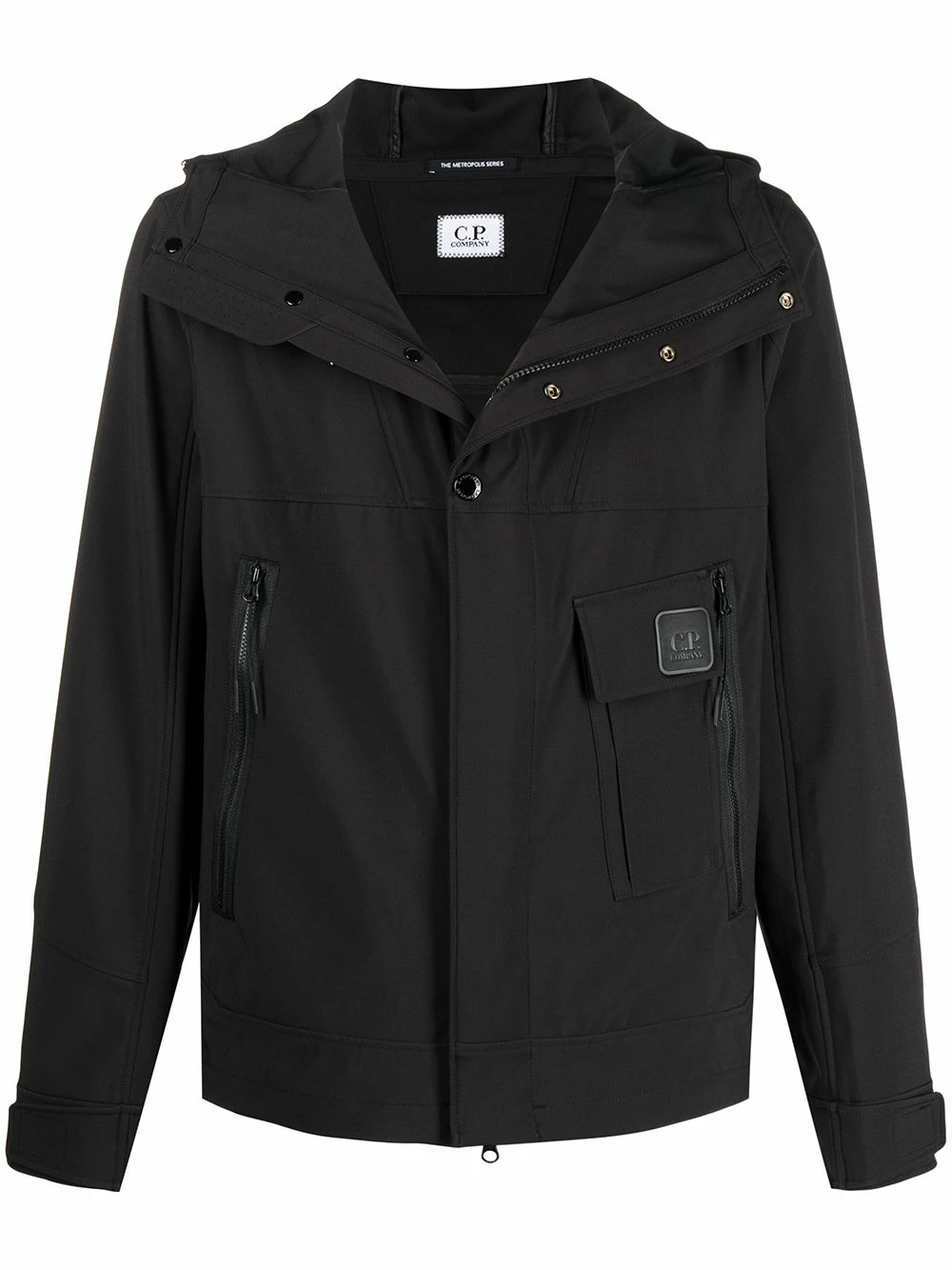 Capuche à lien de resserrage, fermeture à zip et boutons sur le devant, manches longues, poche poitrine plaquée, patch logo sur le devant, poche poitrine zippée. Couleur : Noir.