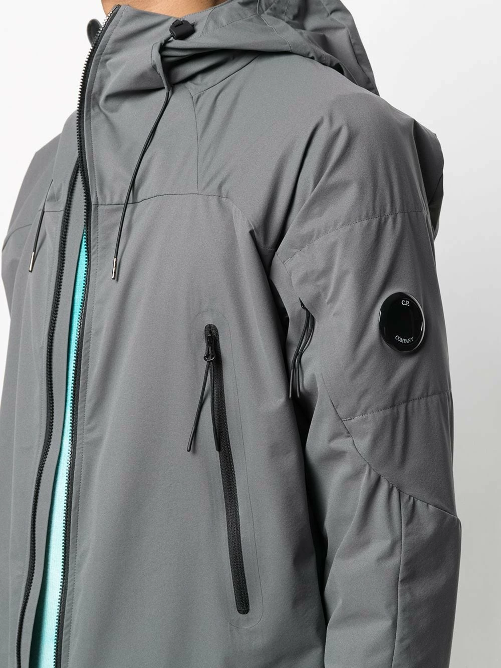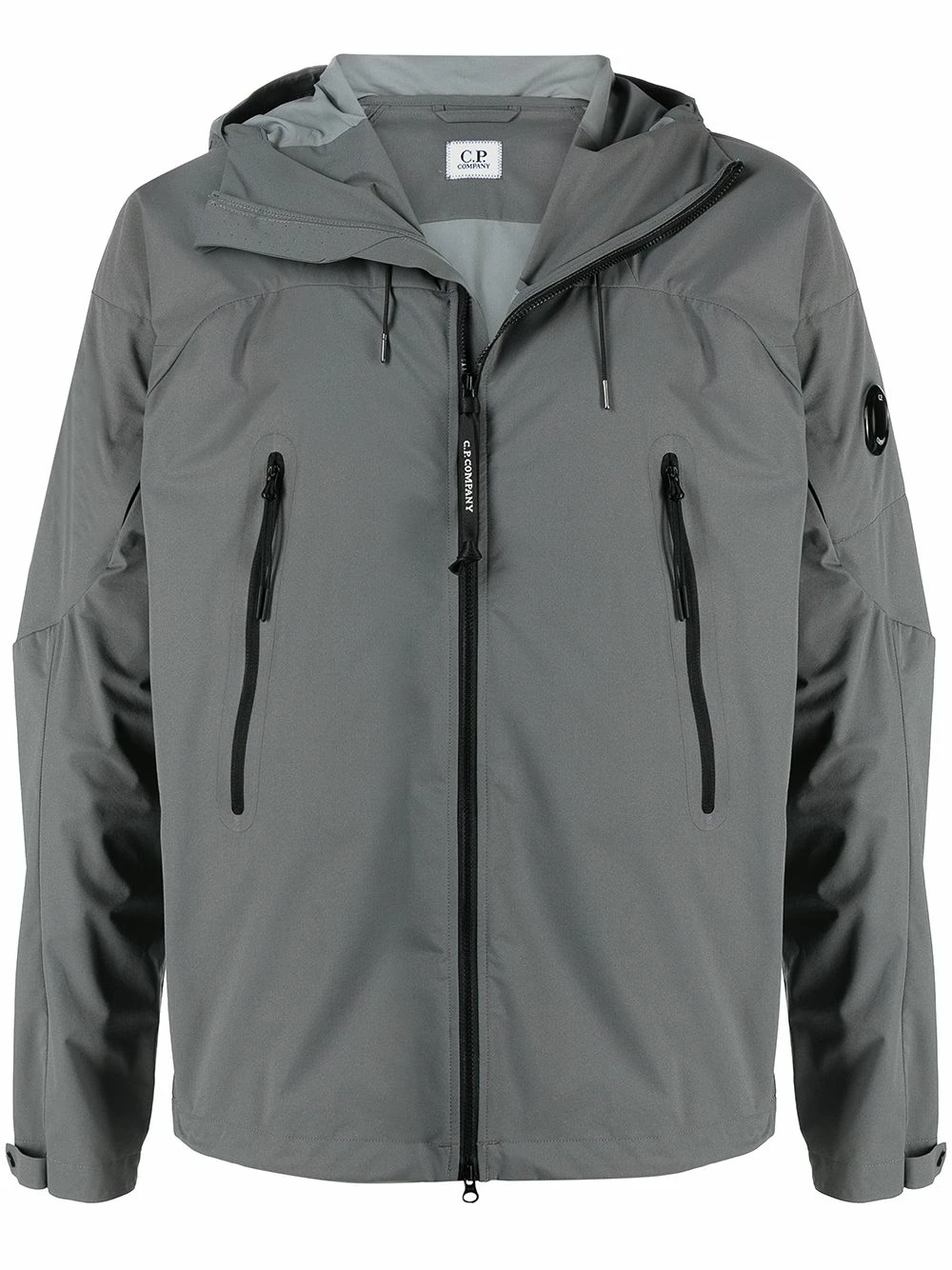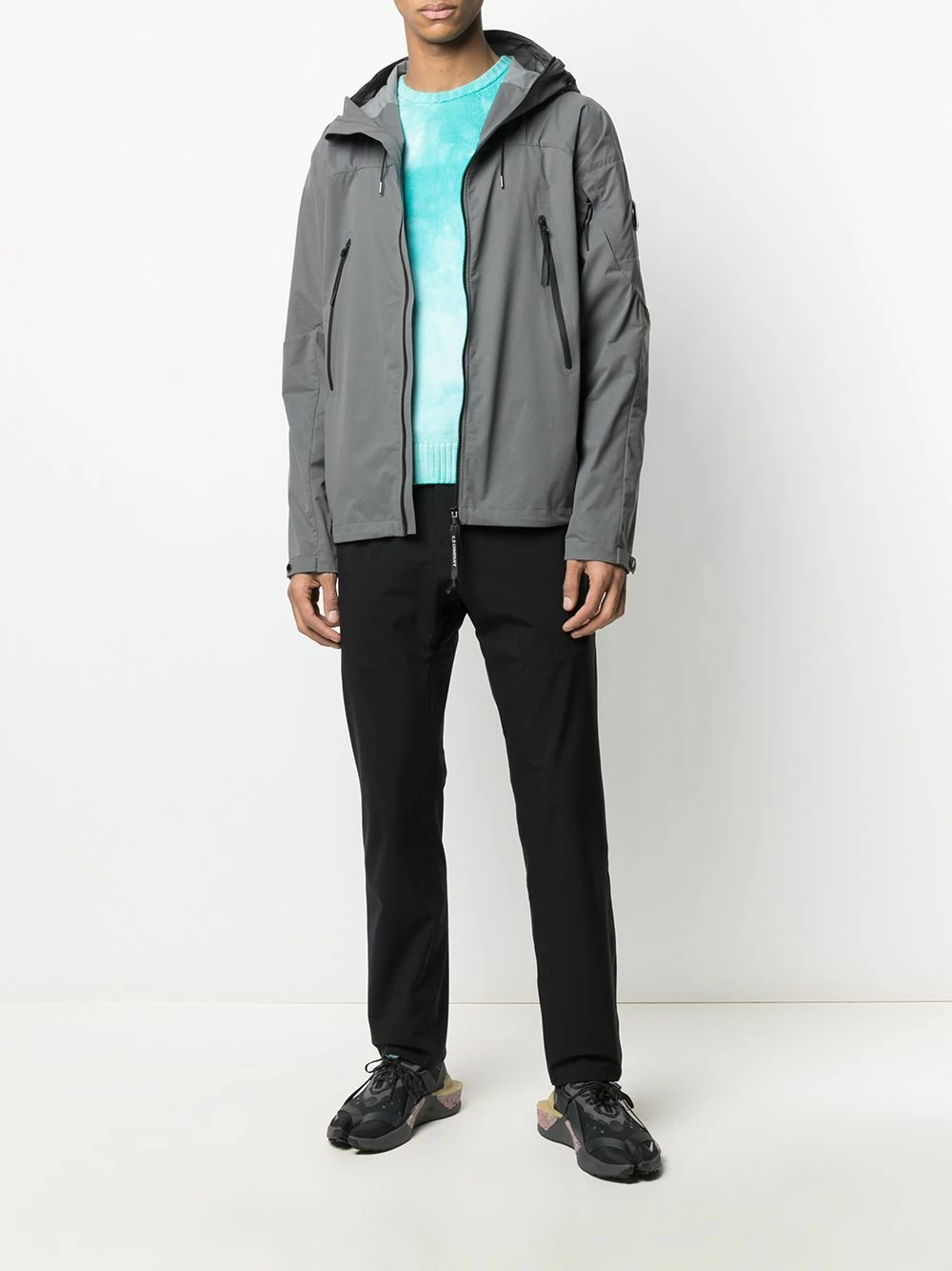Poches à fermeture zippée devant, poche zippée sur la manche, patch logo sur la manche, capuche classique, manches longues, fermeture zippée devant.