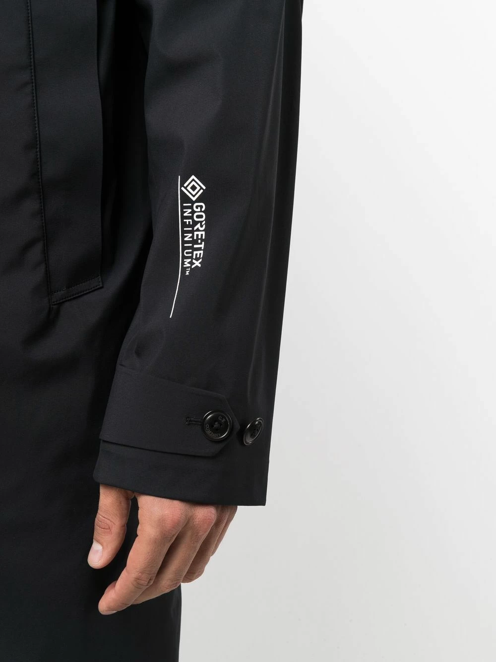 Design en GORE-TEX étanche, boutons décoratifs, col classique, fermeture dissimulée sur le devant, patch logo sur la manche, manches longues, poignets boutonnés, fente à l’arrière, doublure à carreaux. Couleur : noir.