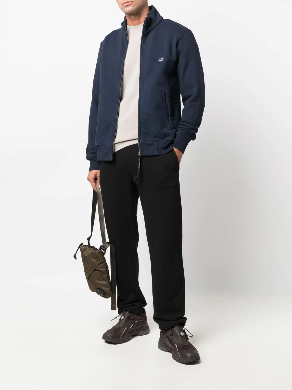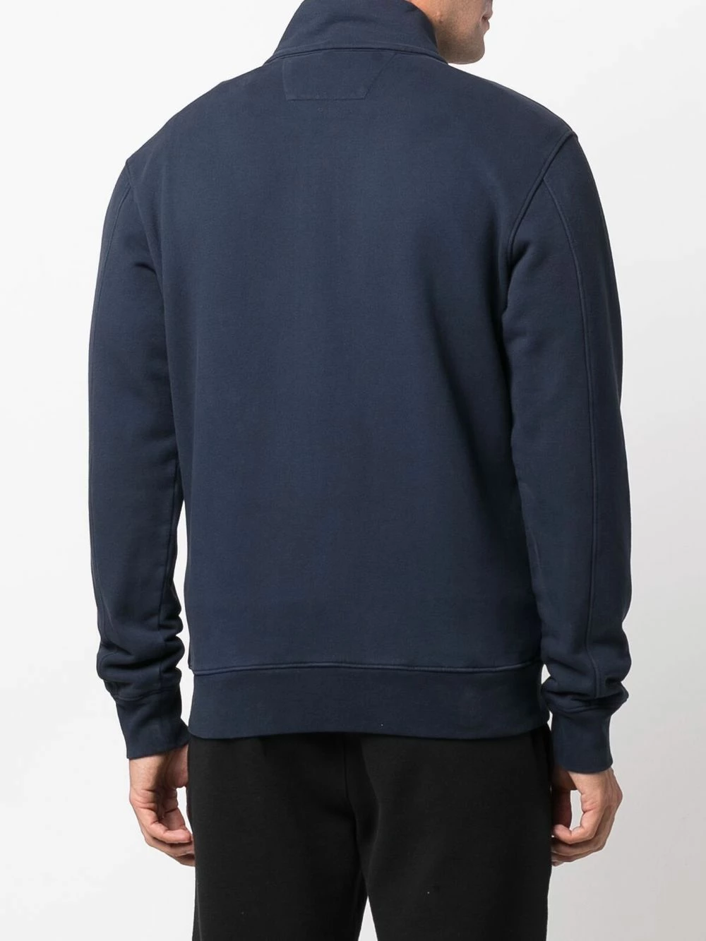 Patch poitrine à logo, col montant, fermeture zippée devant, manches longues, deux poches latérales fendues, poignets élastiqués, ourlet élastiqué. Matière : coton.