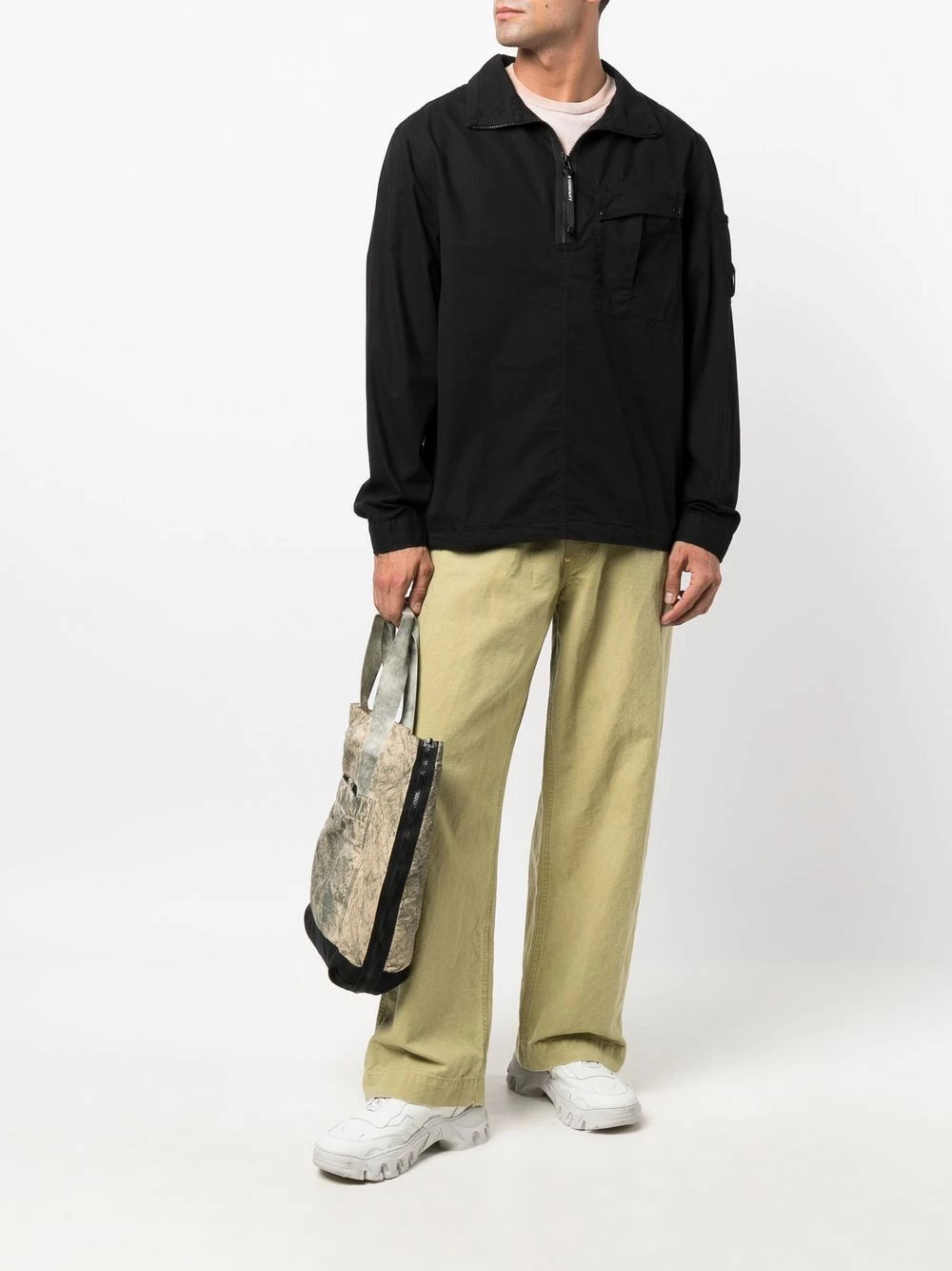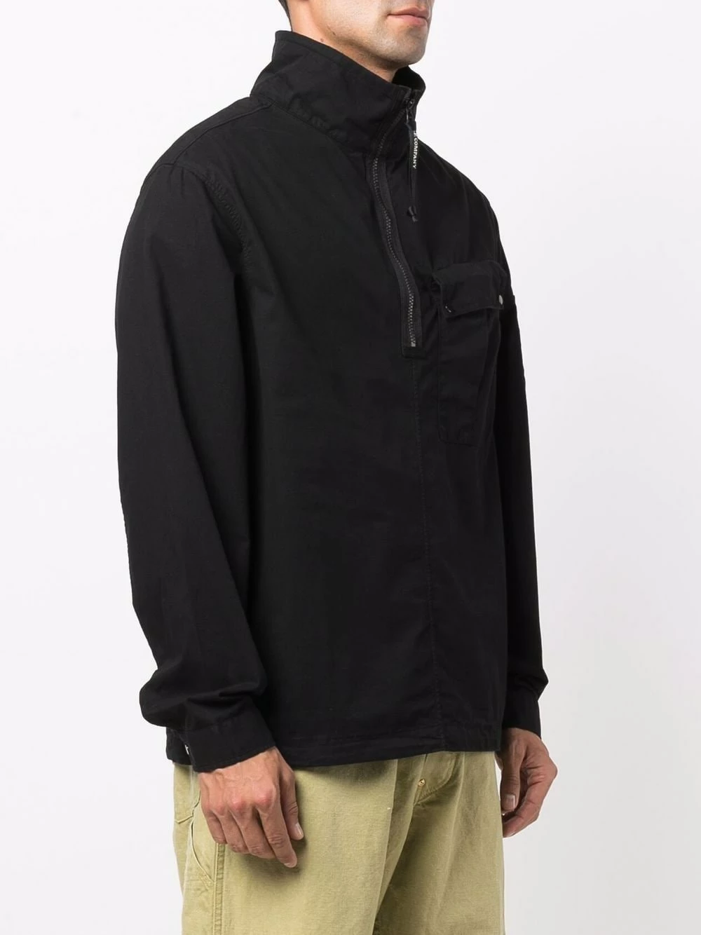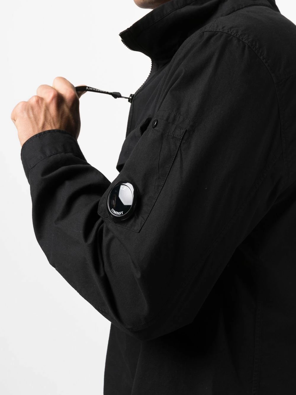 Armure gabardine, patch logo sur la manche, col montant, fermeture zippée devant, poche poitrine boutonnée, manches longues, poche à rabat sur la manche. Couleur : noir. Matière : coton.