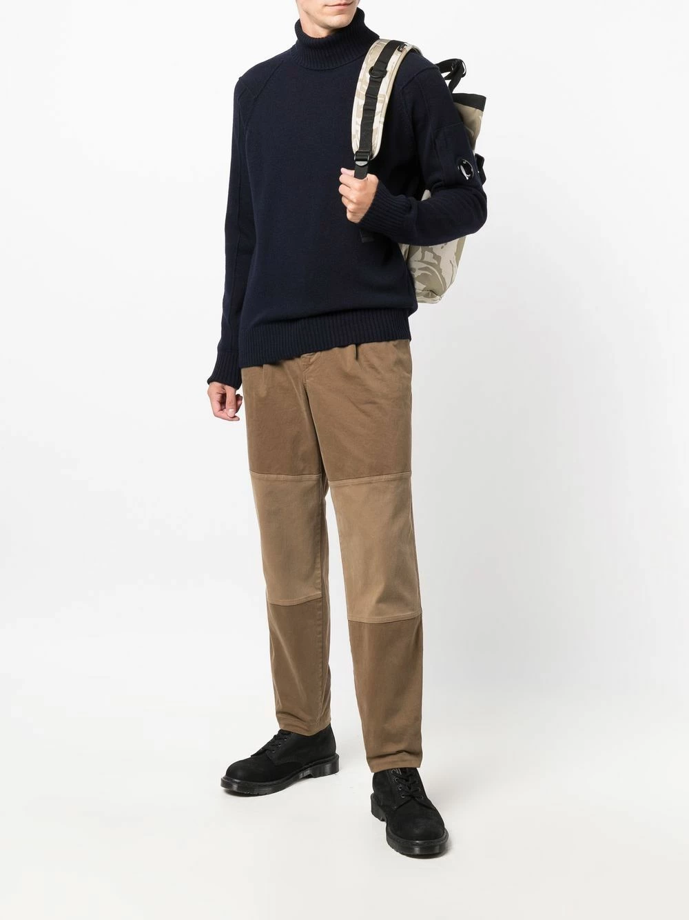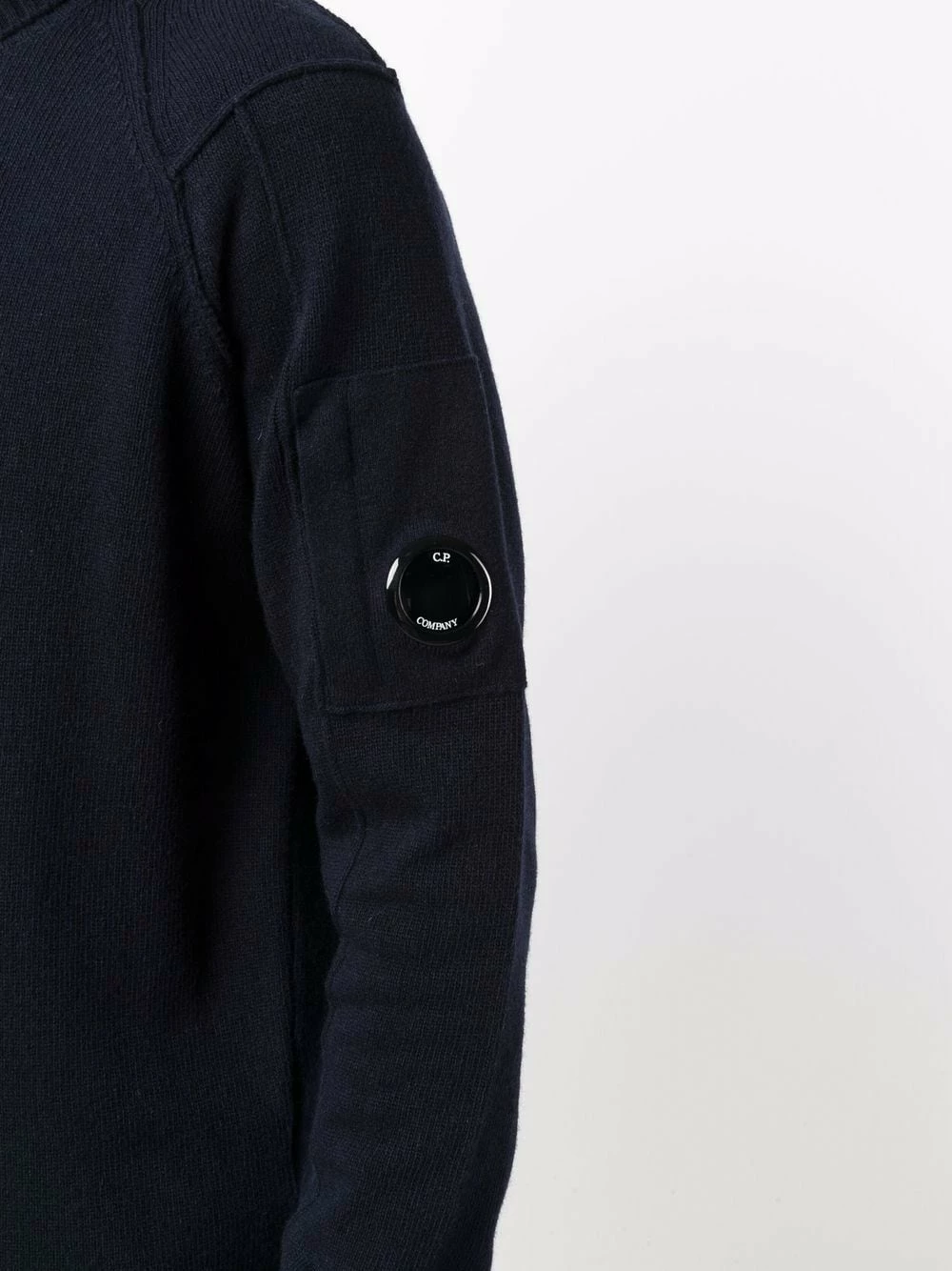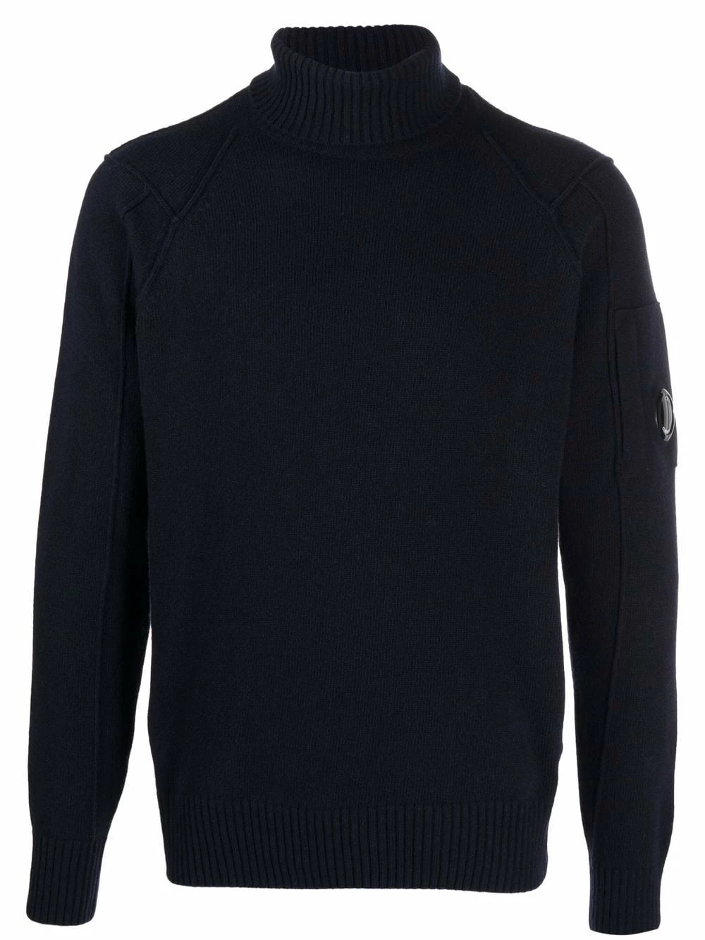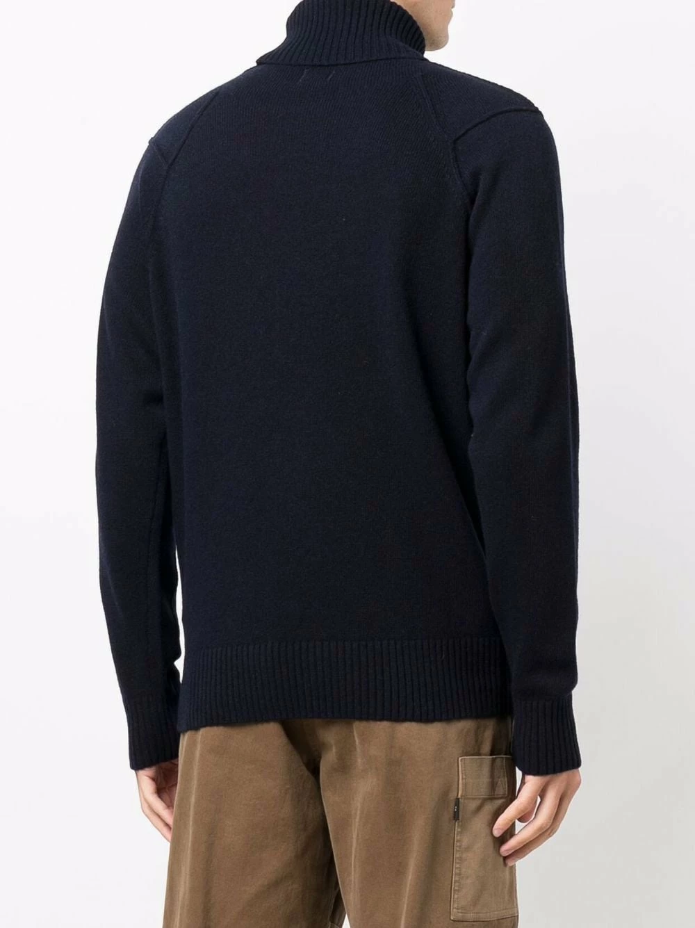 Détail nervuré, patch logo sur la manche, col roulé, manches longues, ourlet droit.