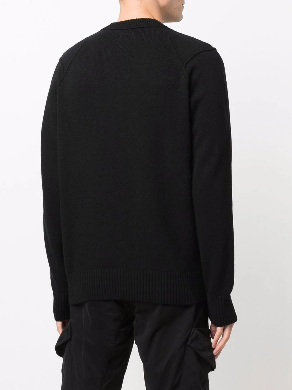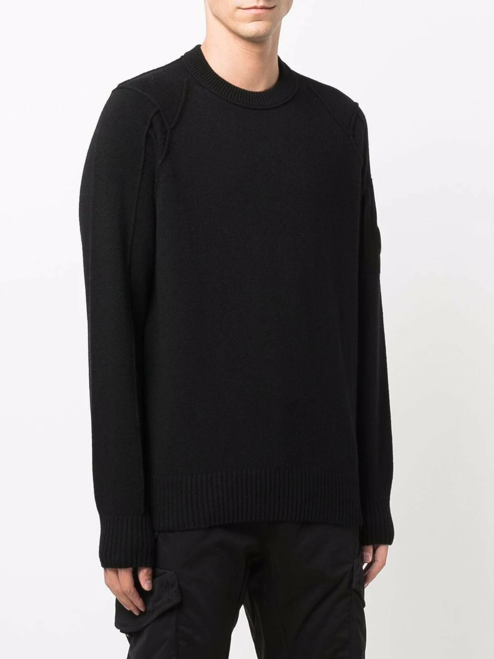 Design tricoté, encolure ras du cou, manches longues, ourlet nervuré. Couleur : noir.