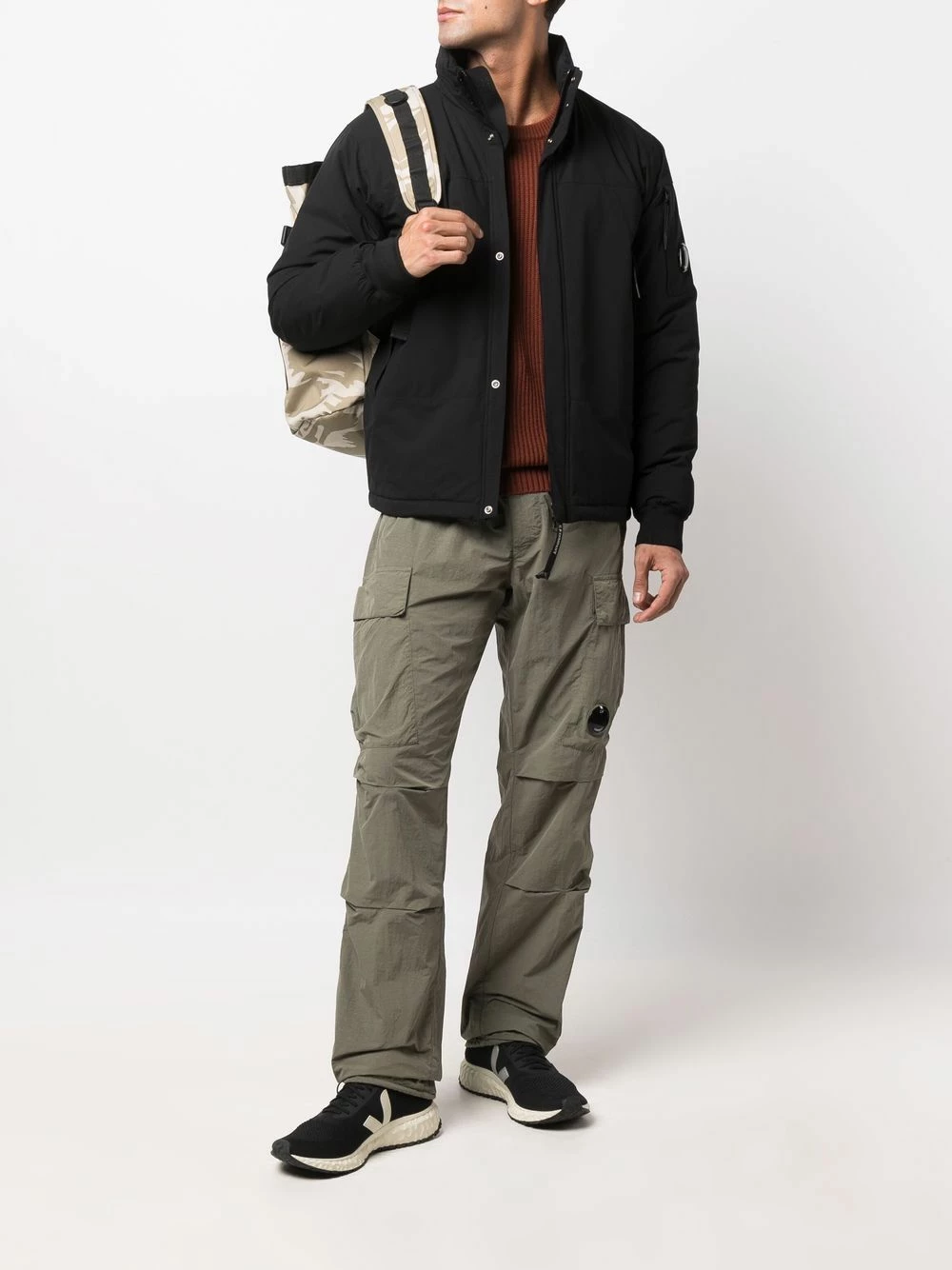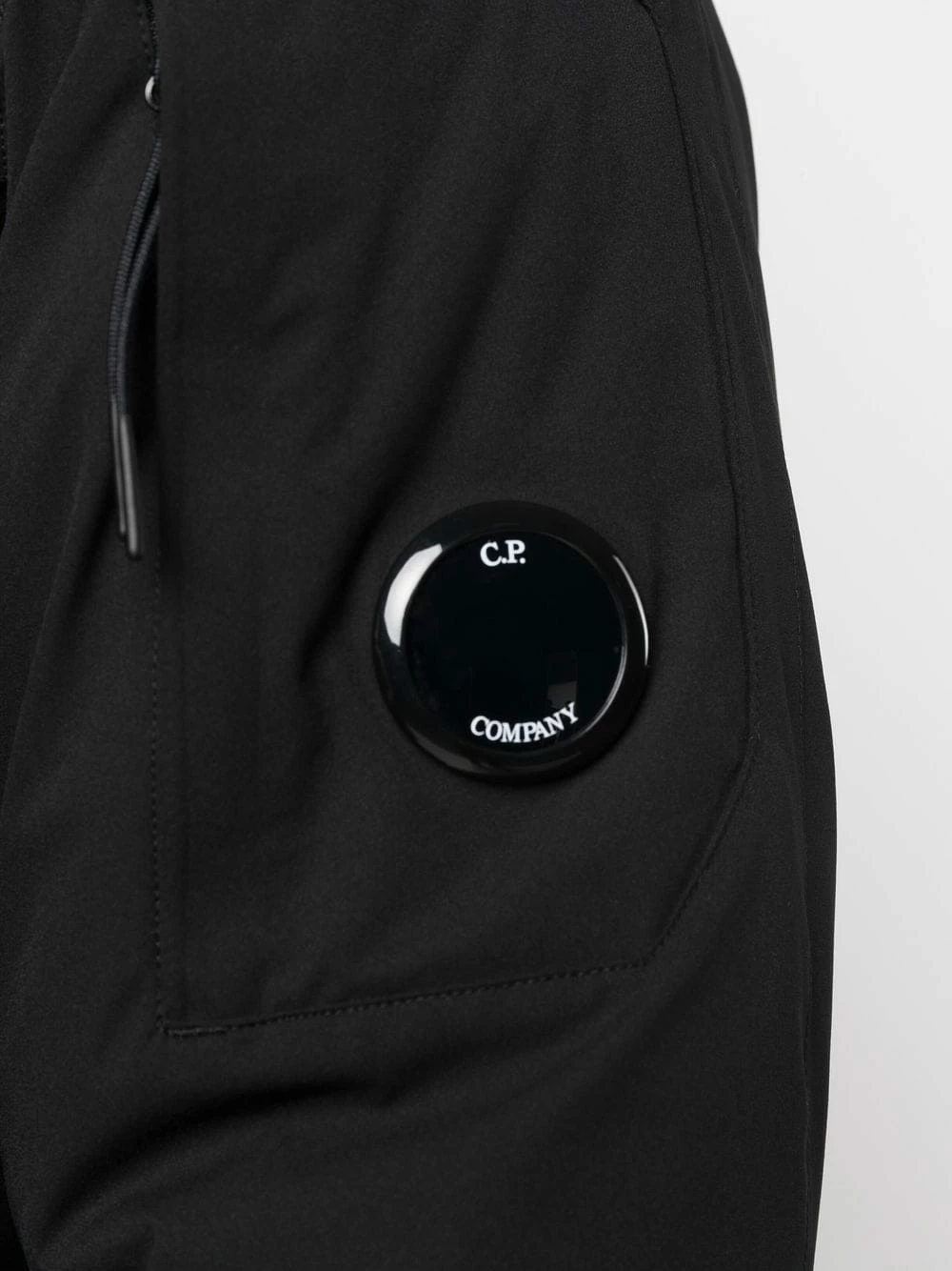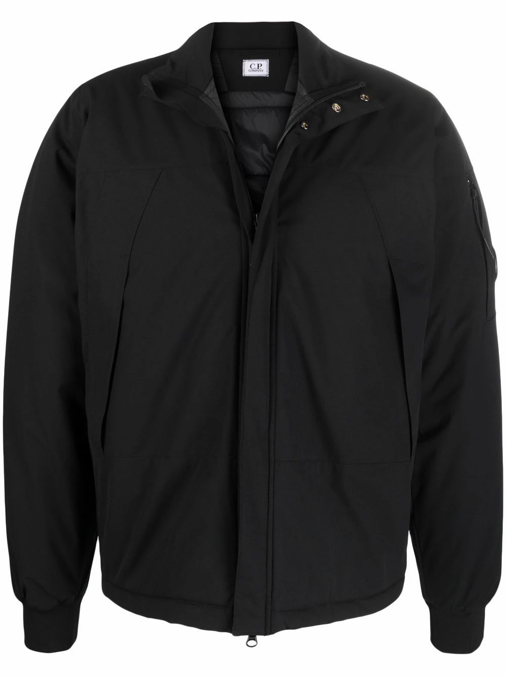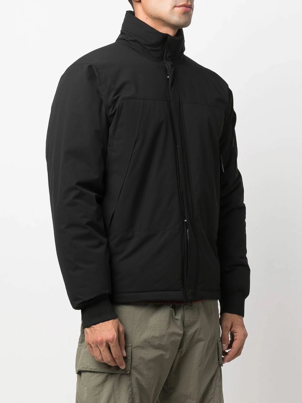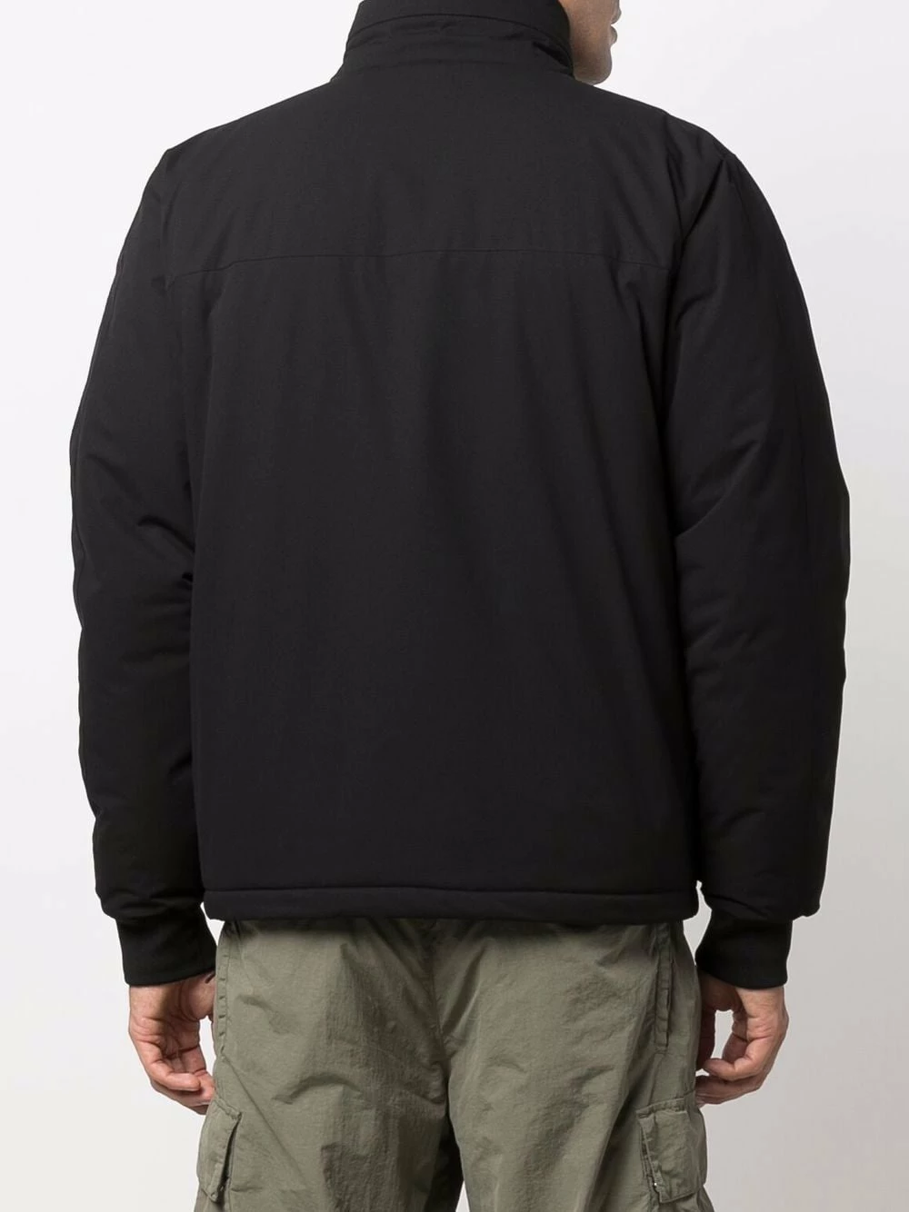 Patch logo sur la manche, poche zippée sur la manche, poches latérales fendues, fermeture dissimulée sur le devant, manches longues, poignets élastiqués, ourlet droit. Couleur : noir.