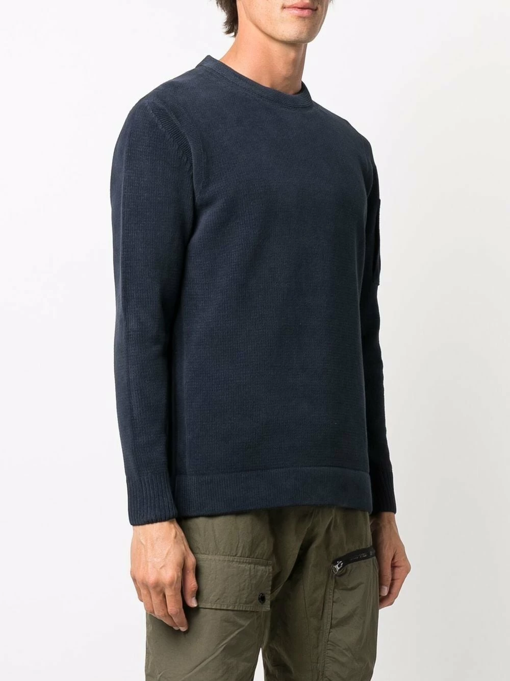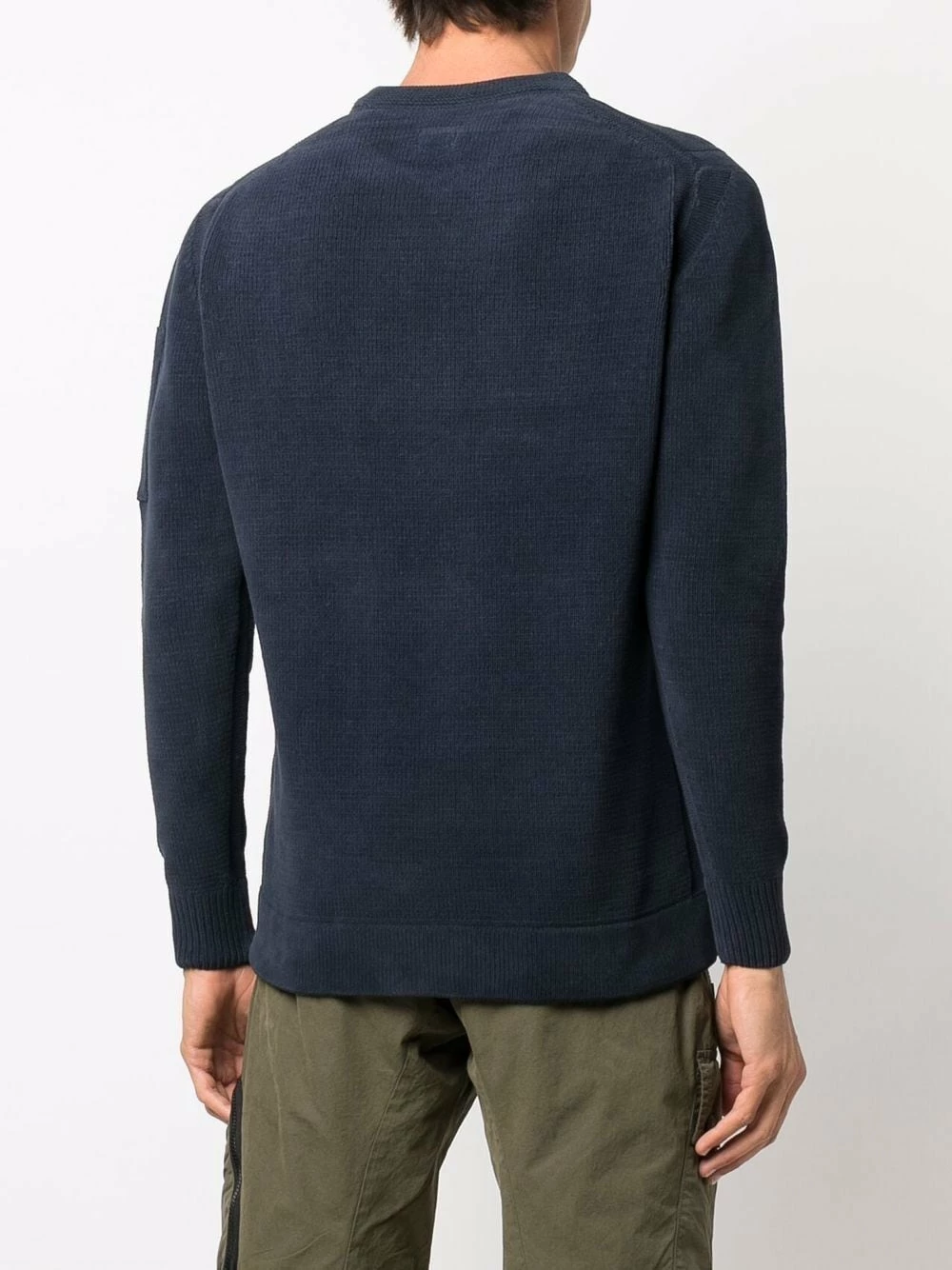 Patch logo sur la manche, encolure ronde, manches longues, poignets nervurés. Couleur : bleu. Matière : coton.