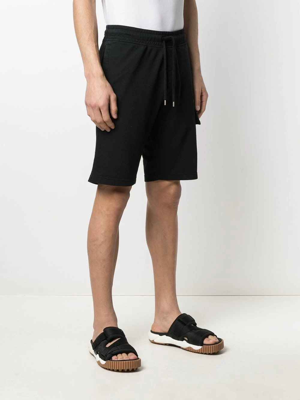 Poches latérales fendues, poche latérale cargo, ceinture élastique, lien de resserrage à la taille. Couleur : noir. Matière : coton.