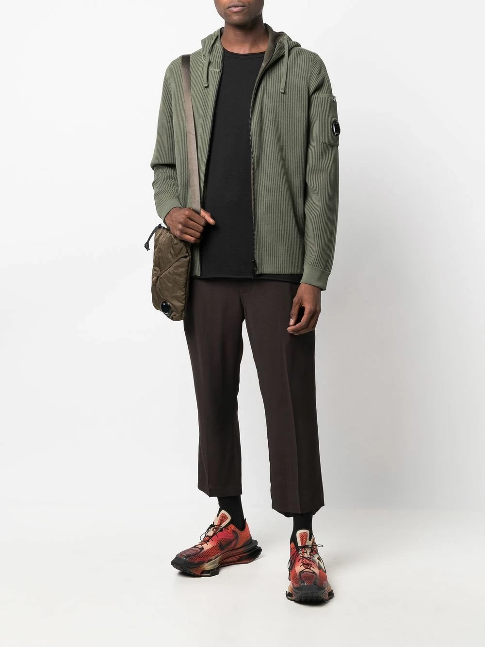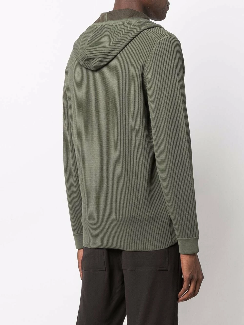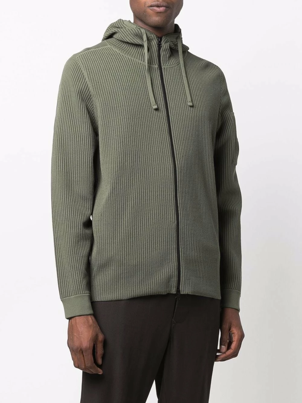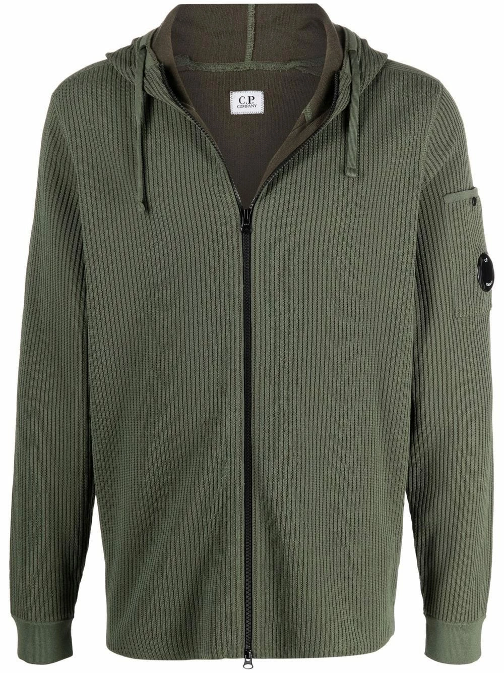 Patch logo sur la manche, détail nervuré, capuche à lien de resserrage, manches longues, fermeture zippée devant. Matière : coton mélangé.