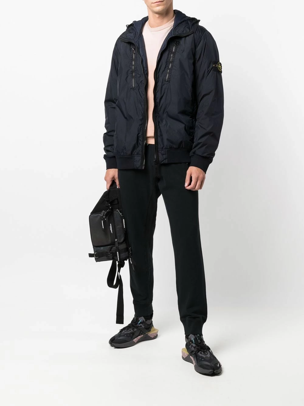 Patch logo sur le côté, lien de resserrage à la taille, deux poches latérales fendues. Couleur : noir. Matière : coton.