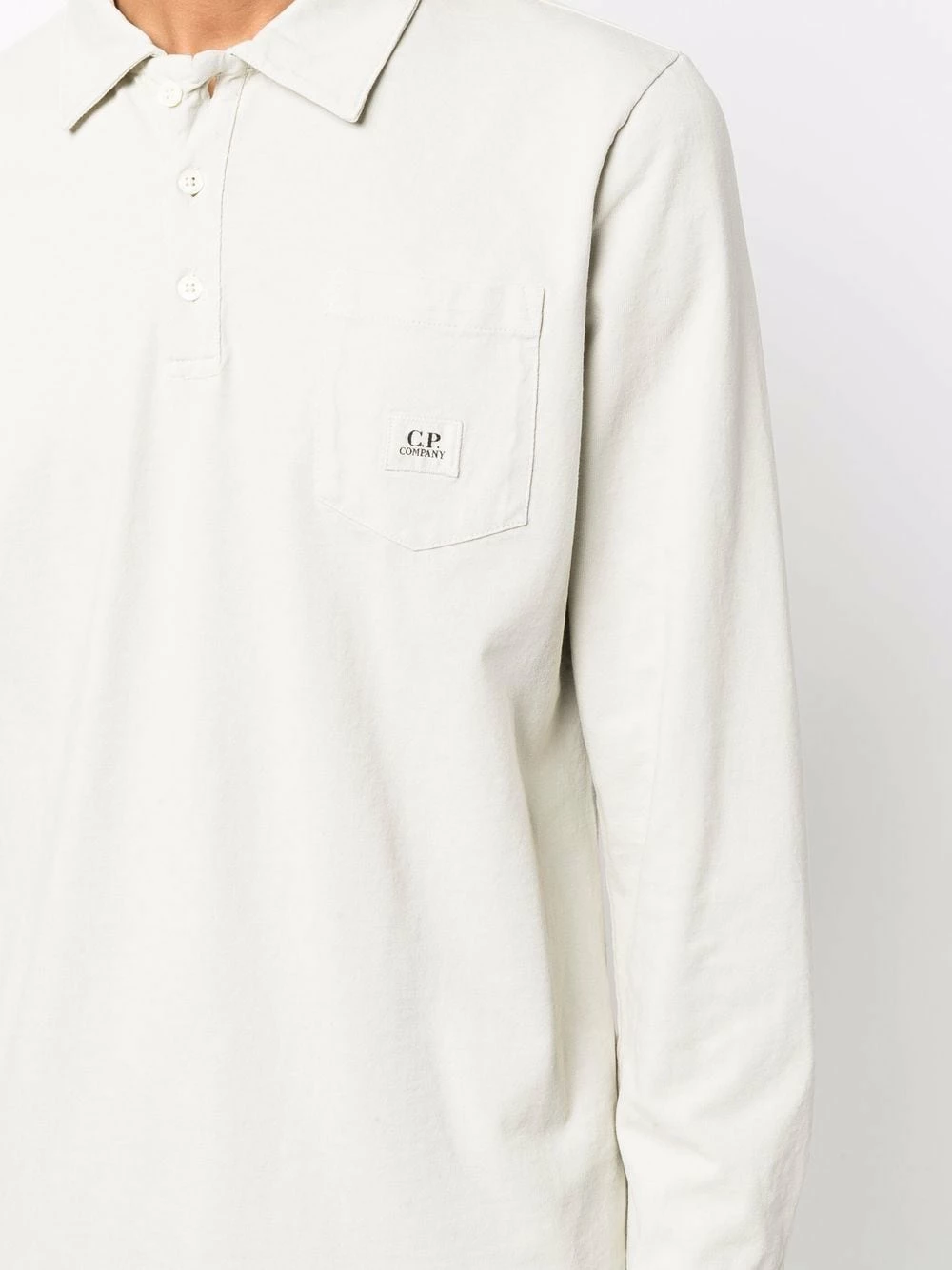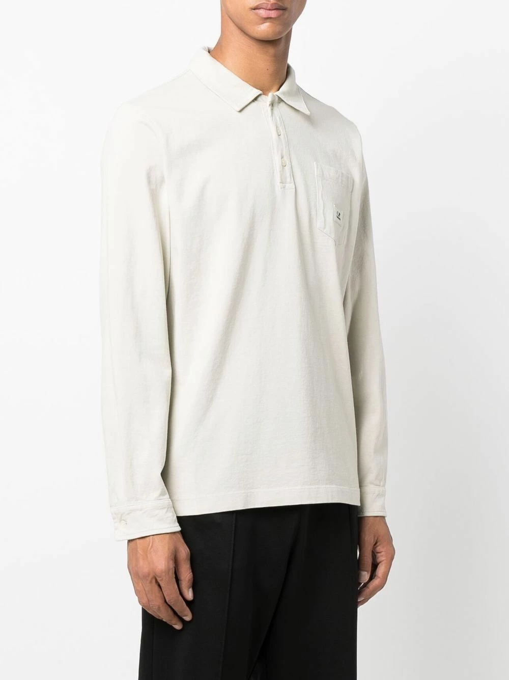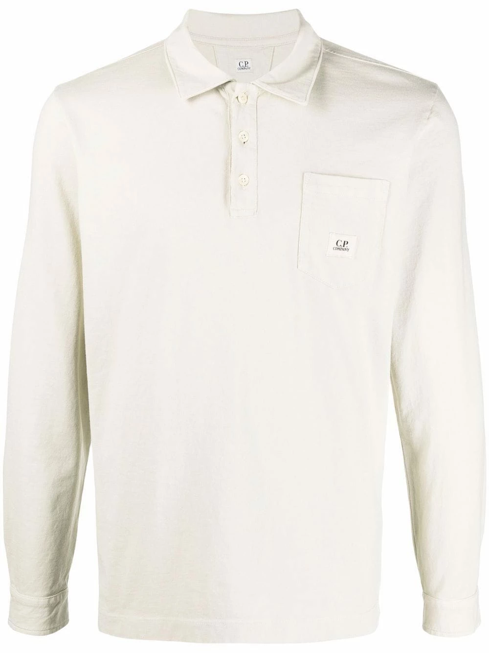 Poche poitrine plaquée, patch poitrine à logo, col polo, manches longues, ourlet droit. Matière : coton.