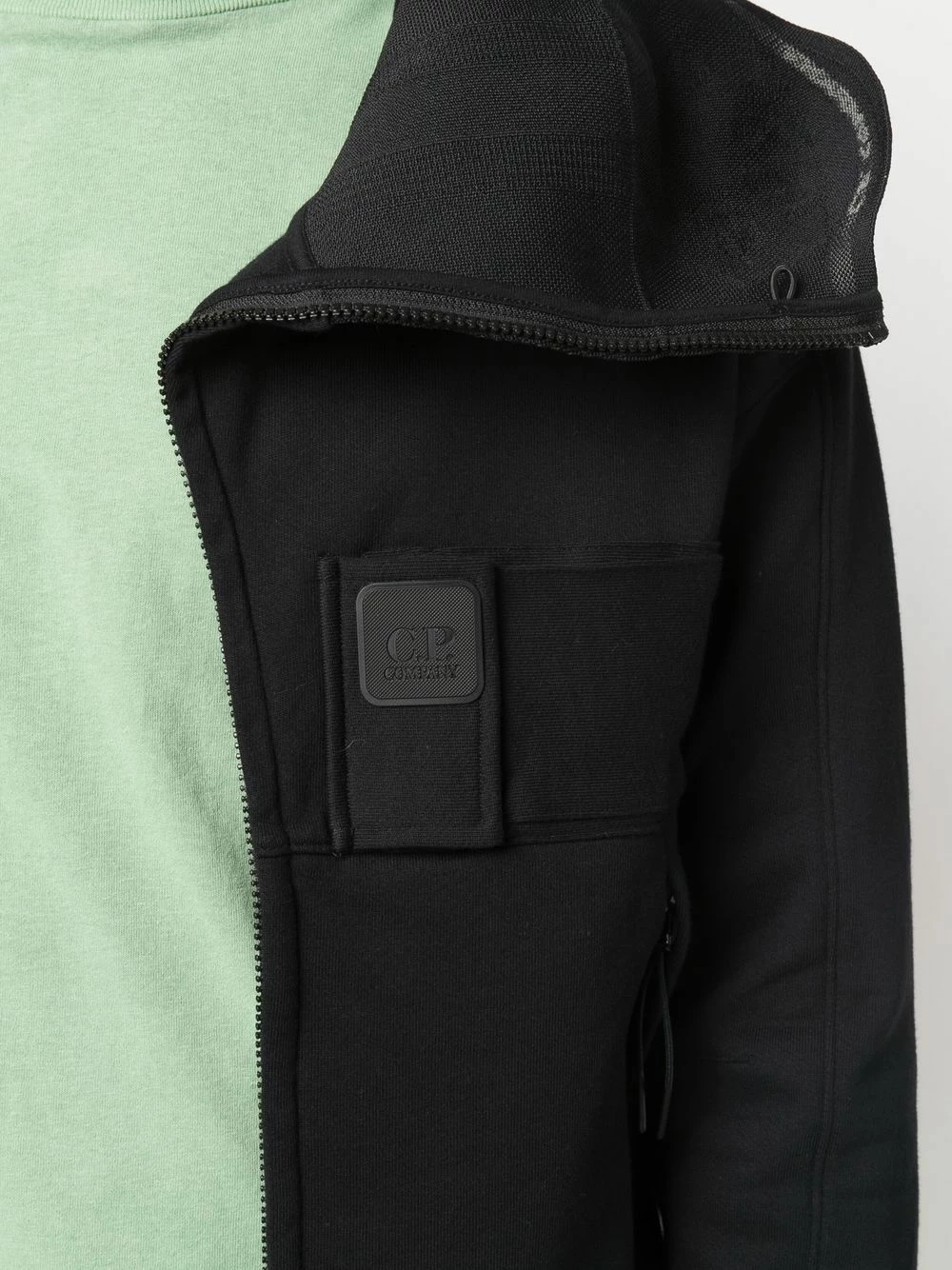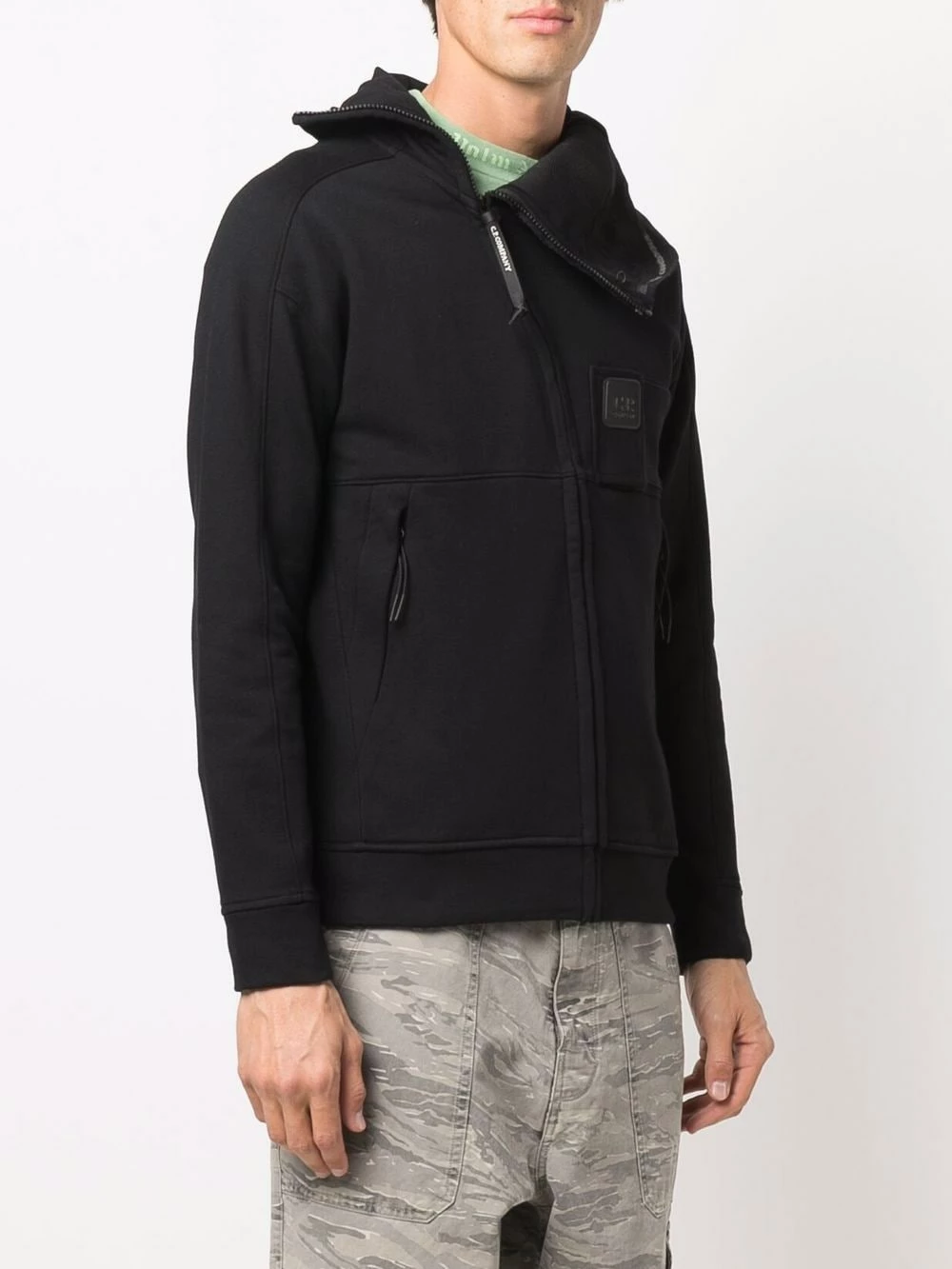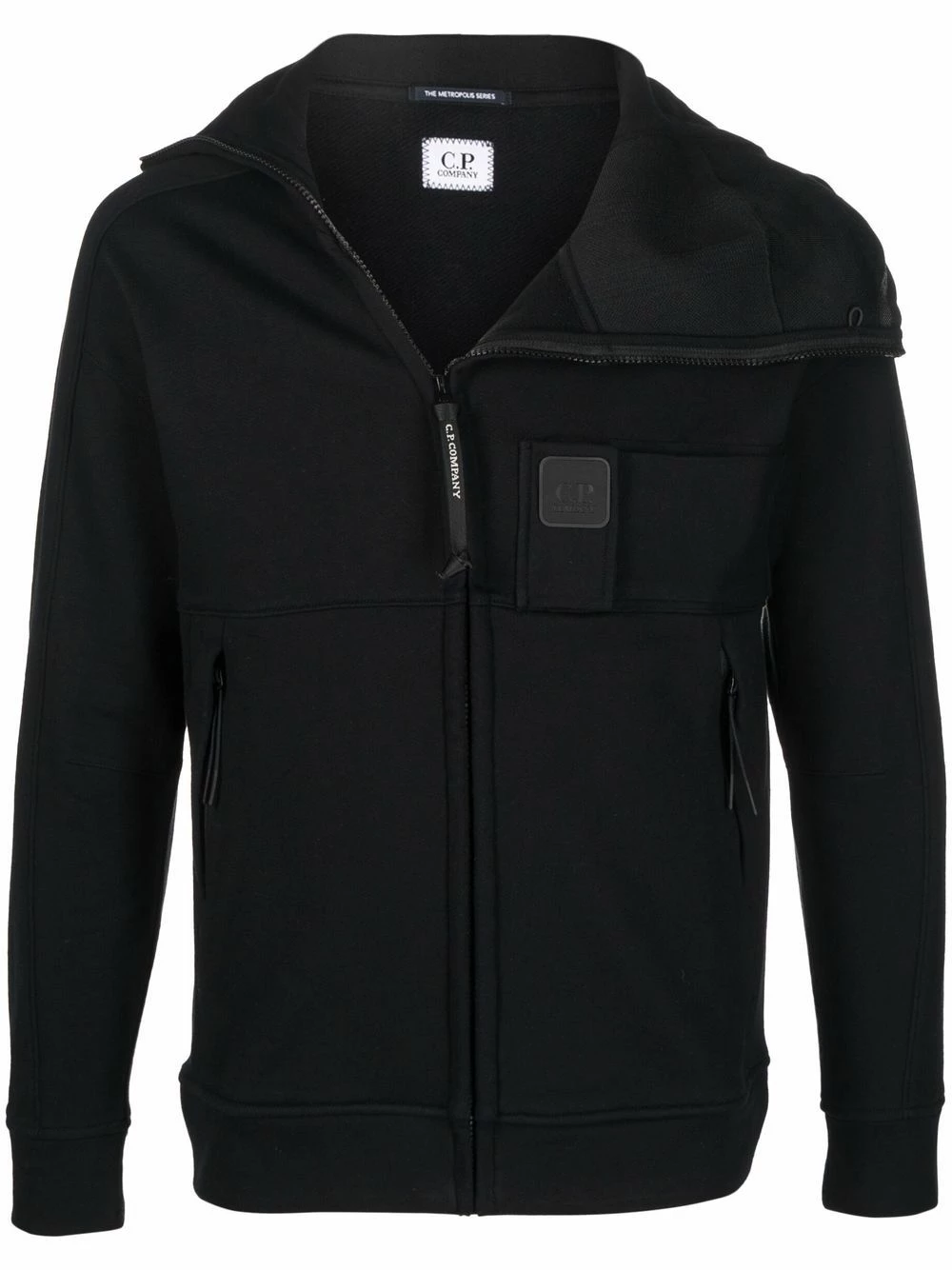 Patch poitrine à logo, fermeture zippée en biais, manches longues. Couleur : noir. Matière : coton.