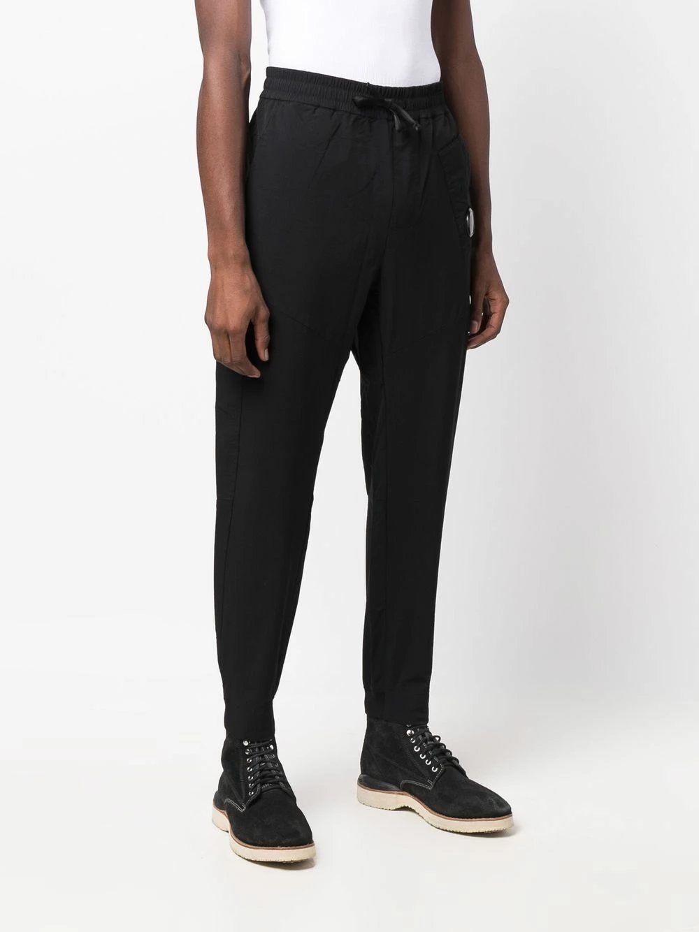Design ton sur ton, détail verre de lunette signature, lien de resserrage à la taille, deux poches latérales fendues. Couleur : noir.